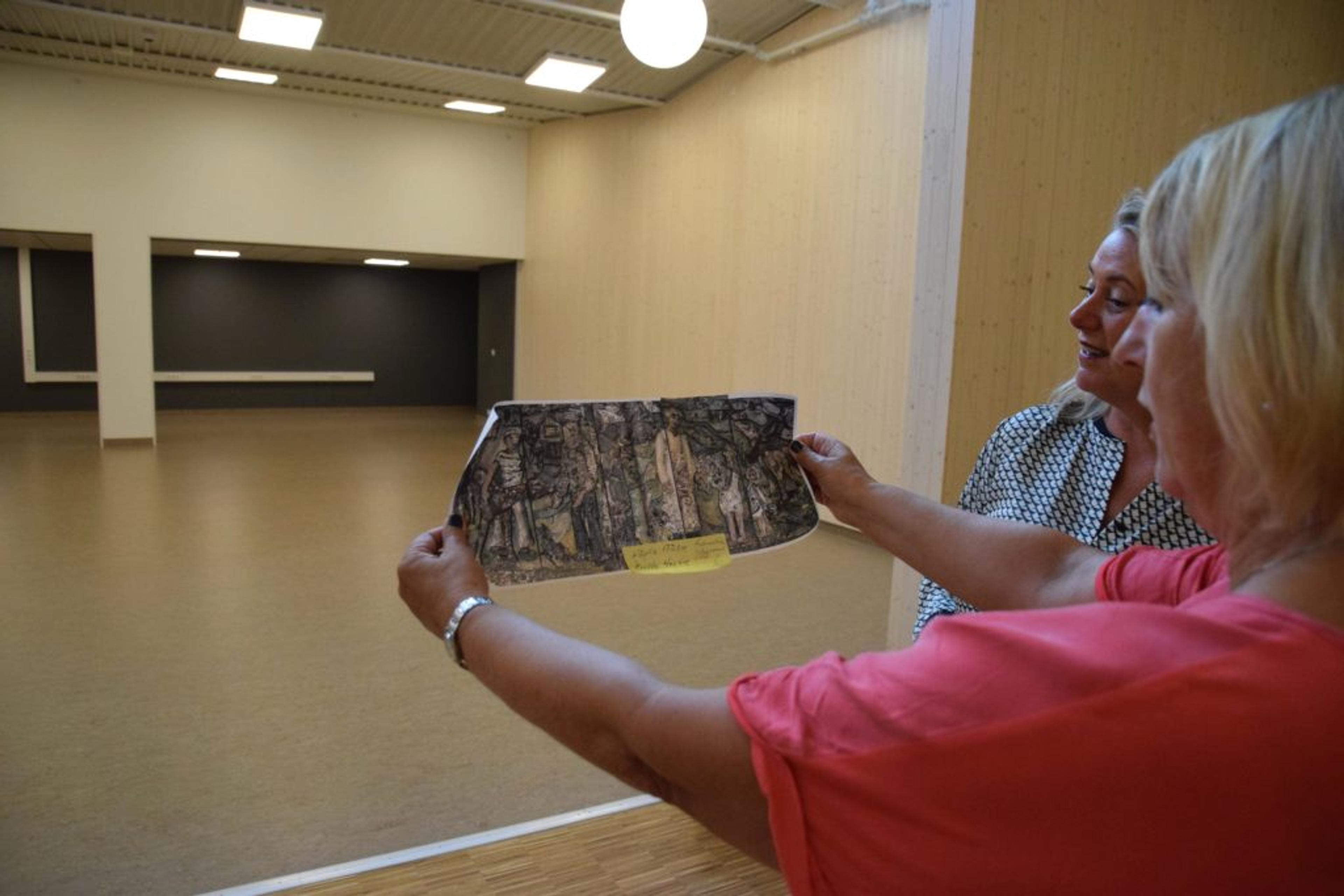 UTSMYKKING: Utsmykking som er tatt vare på fra den gamle skolebygningen og det gamle sjukehjemmet i Våle skal opp på veggene i det nye bygget. Foto: Stian Ormestad.