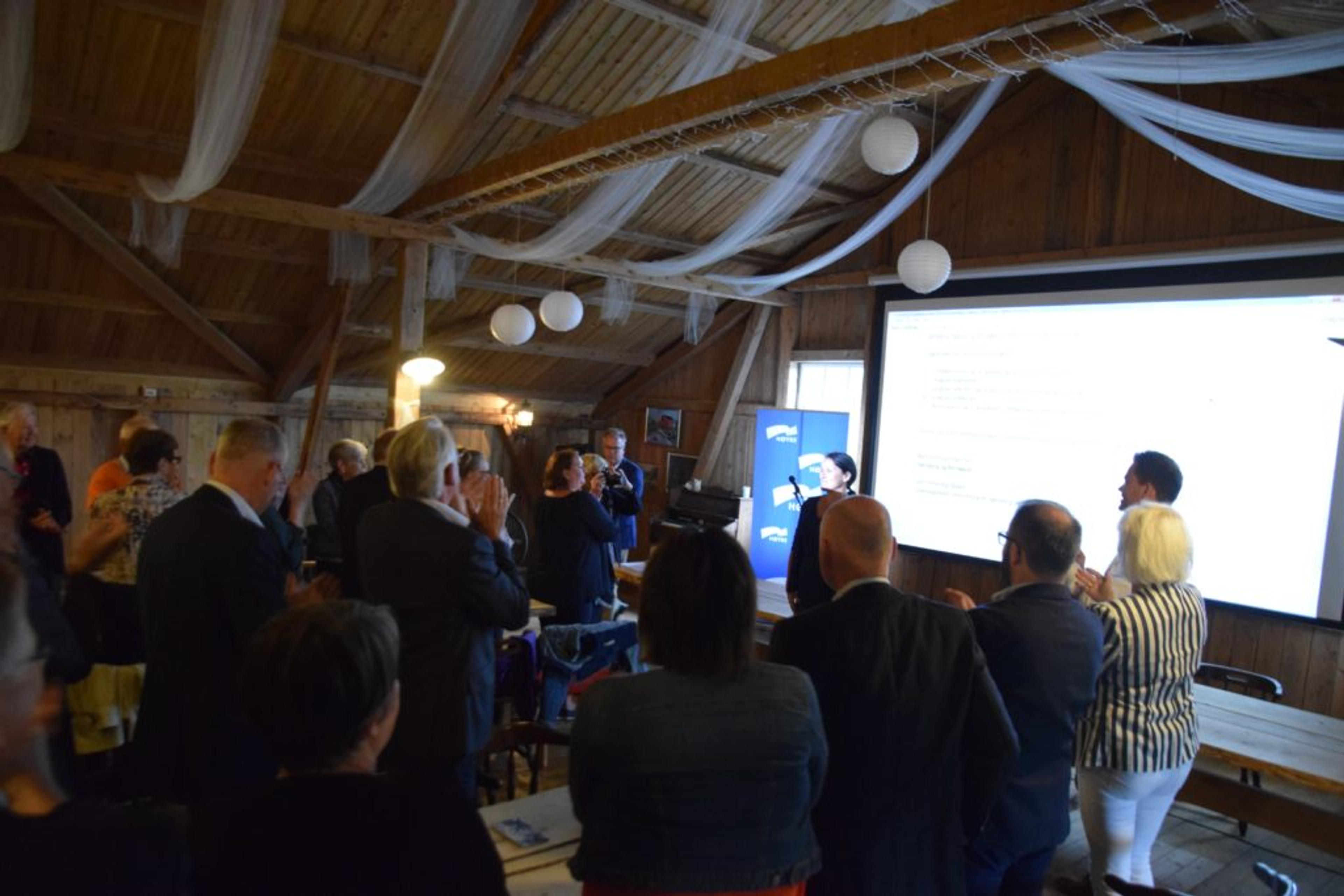 STÅENDE APPLAUS: Her har akkurat avgjørelsen falt: Lise Lorentzen Mandal (47) er nye Tønsberg Høyres ordførerkandidat. Foto: Stian Ormestad.