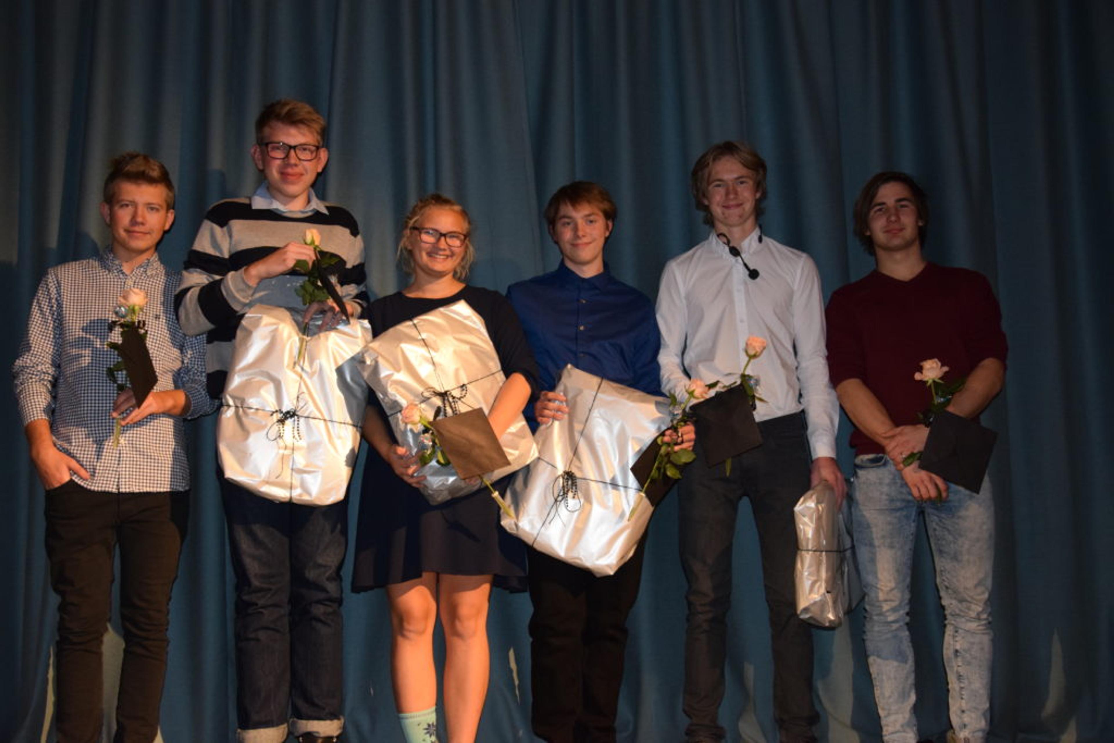 PLAKETVINNERE: 4H-klubbene har hatt Høstfest, og her ser vi Andreas Bergstrøm, Håvard Kjeldsen Bjerke, Eilen Wolden, Kim Remi Opsahl Nielsen, Sondre Dahl og Sakarias Kjær Steig få sine plaketter under Rapp 4Hs Høstfest på Våle samfunnshus. Foto: Håkon Westby.