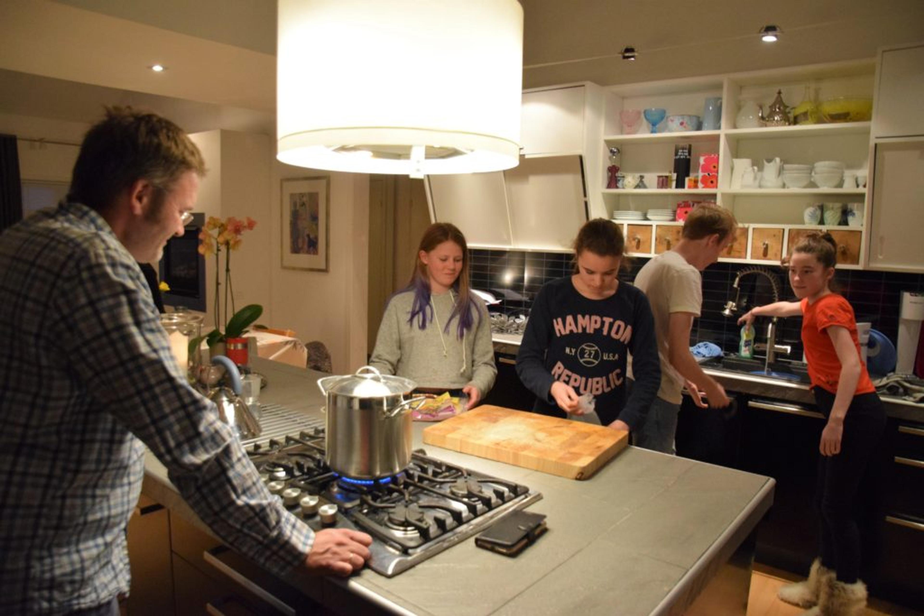 Hjemme hos velforeningslederen og hans familie er det taco-fredag, med huset fullt av både egne og nabo-barn.