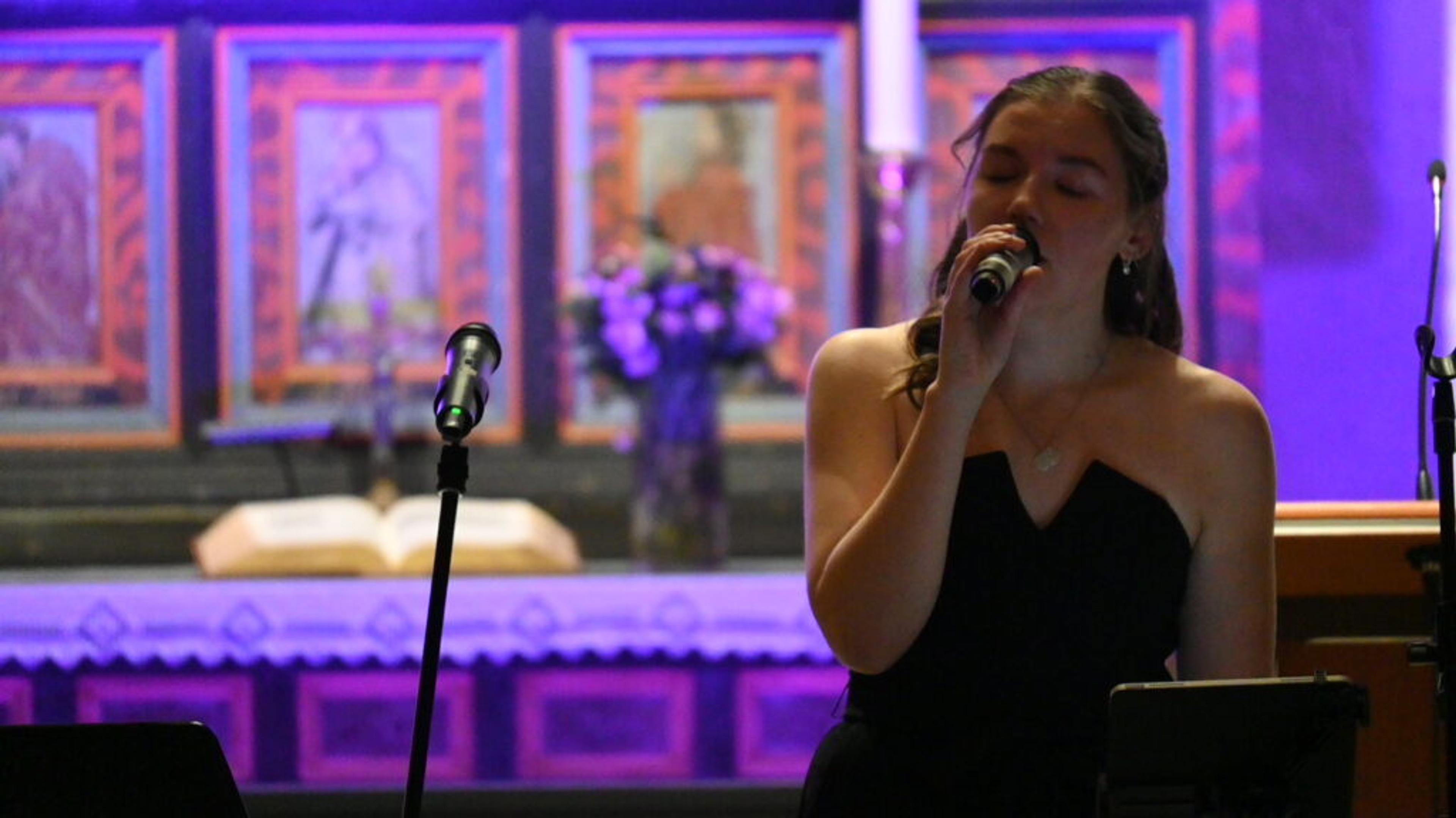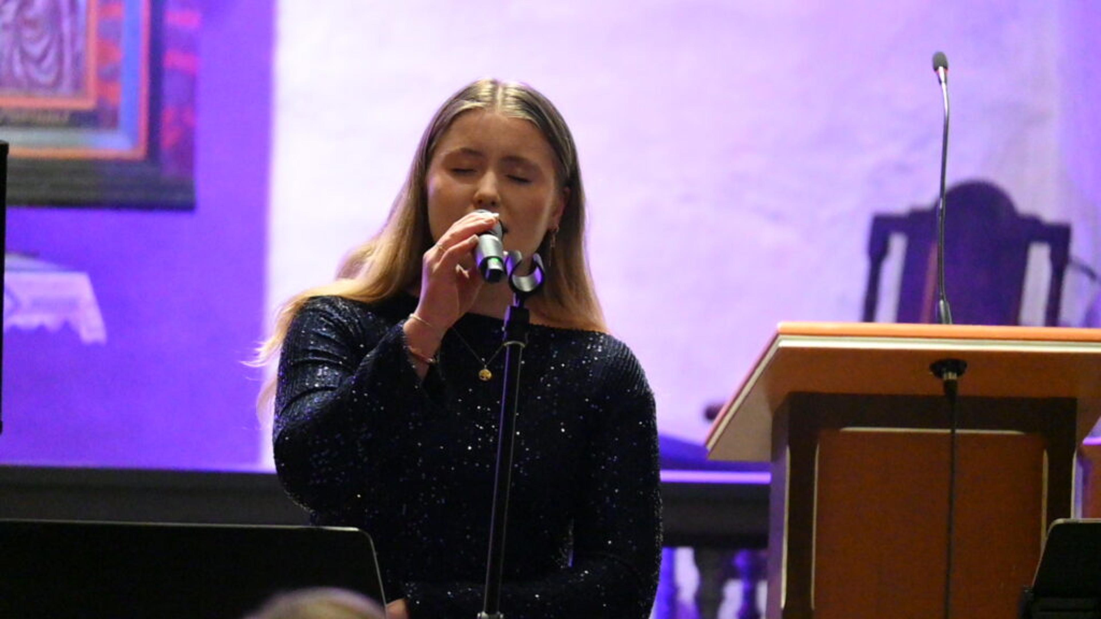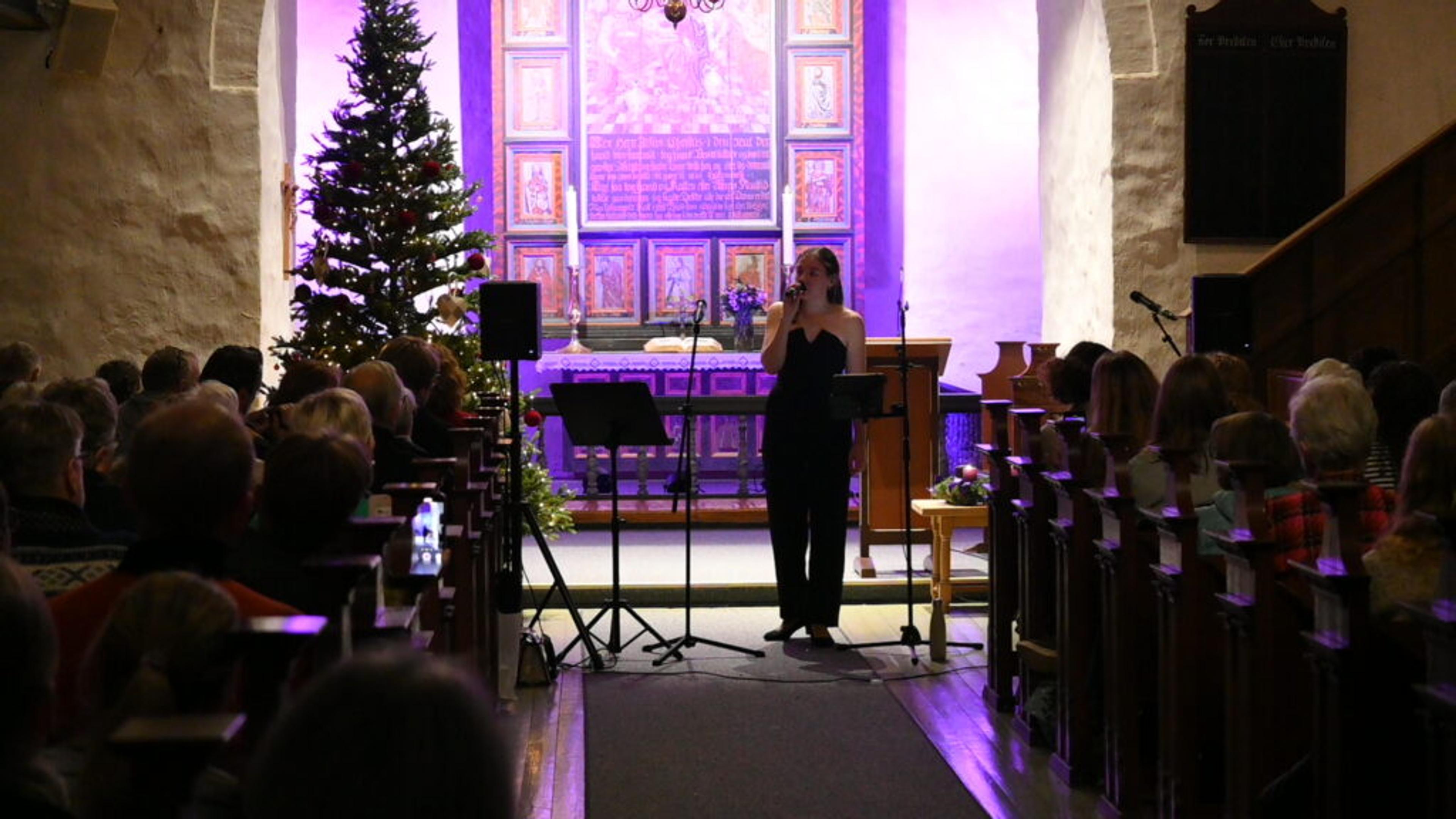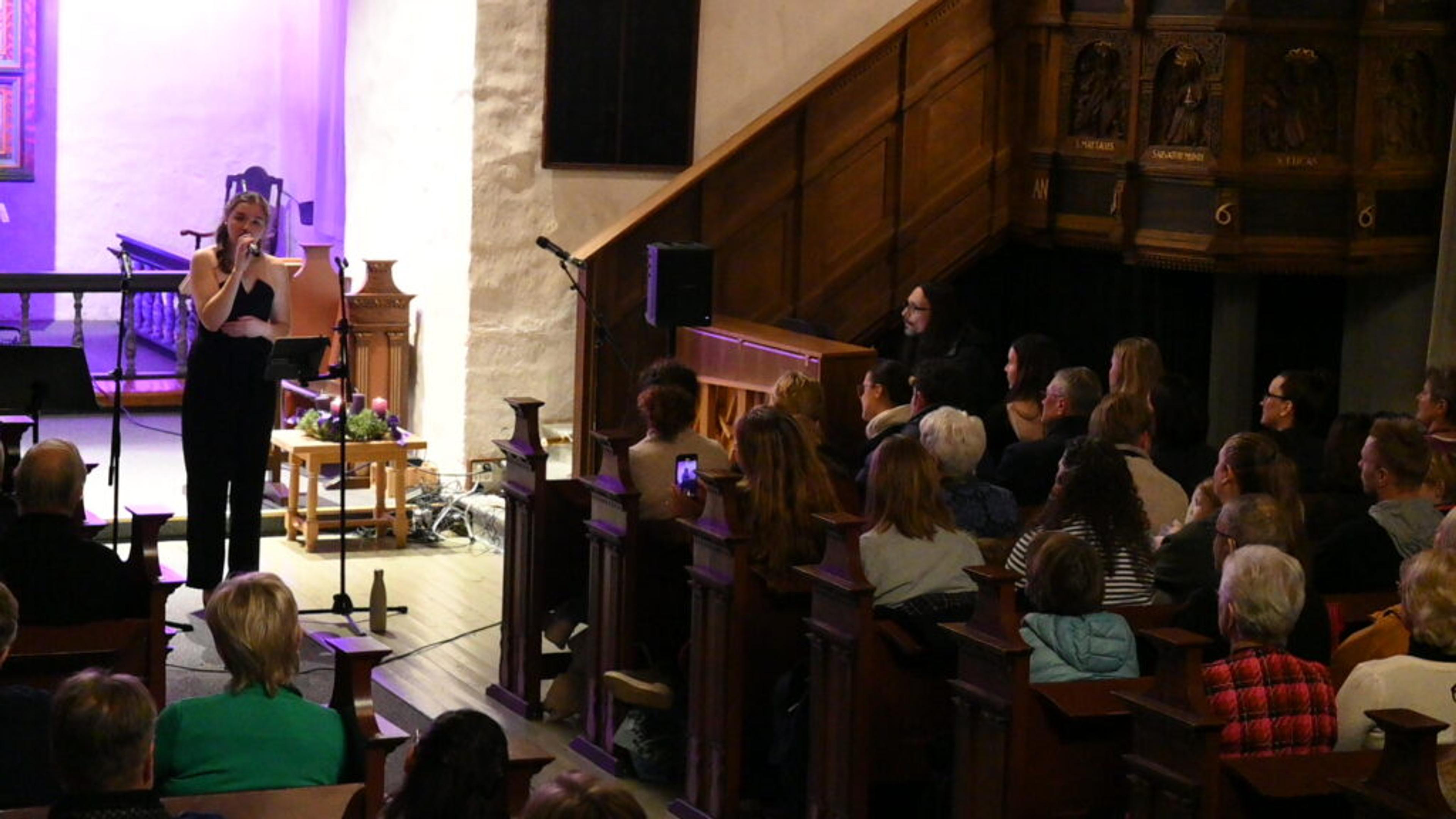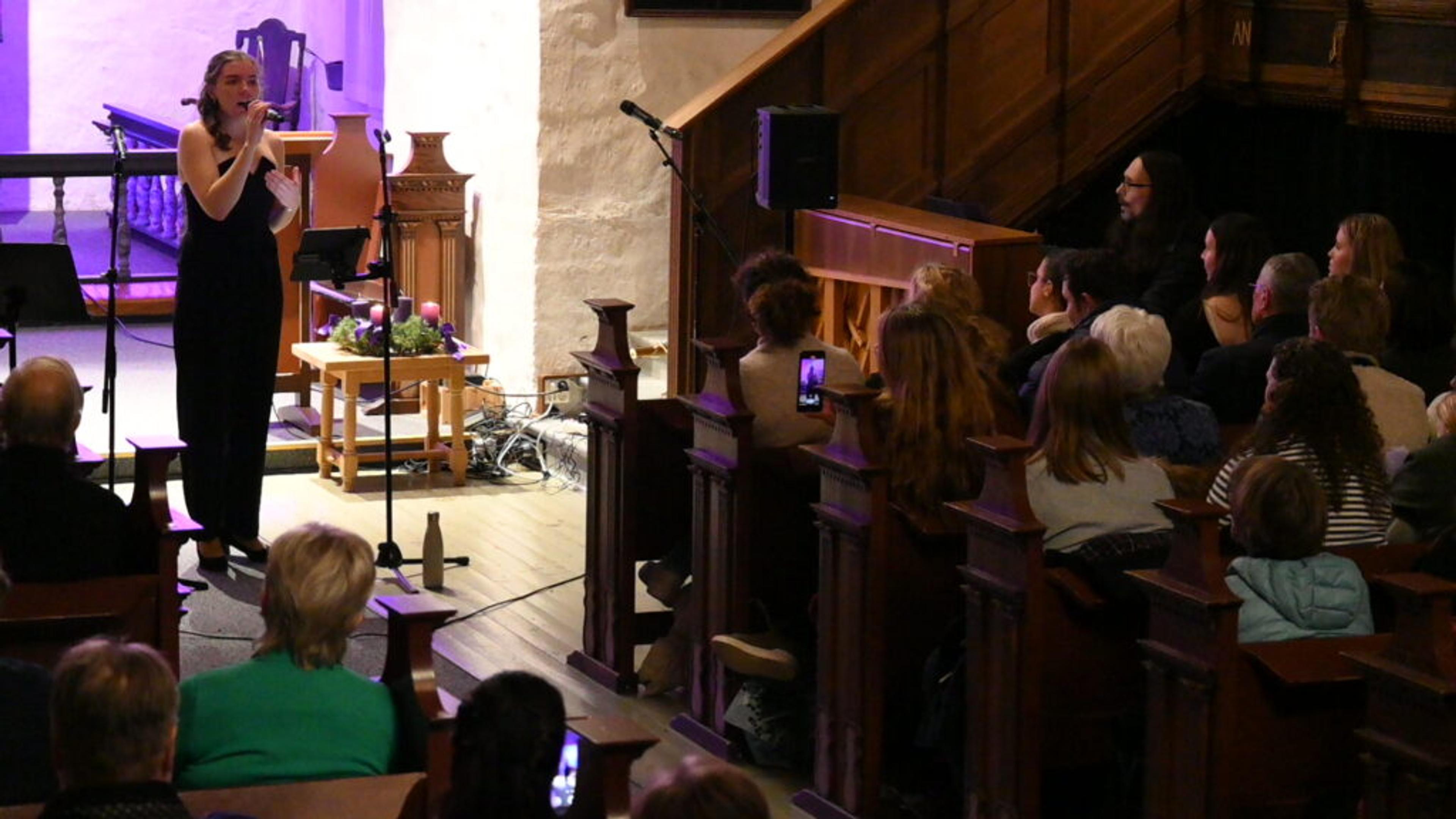 VAKKERT: Julekonsert i Ramnes kirke med Oda Jonetta Brenna Joberg (23) og gjesteartister torsdag kveld 12. desember 2024. Foto: Stian Ormestad, ReAvisa.