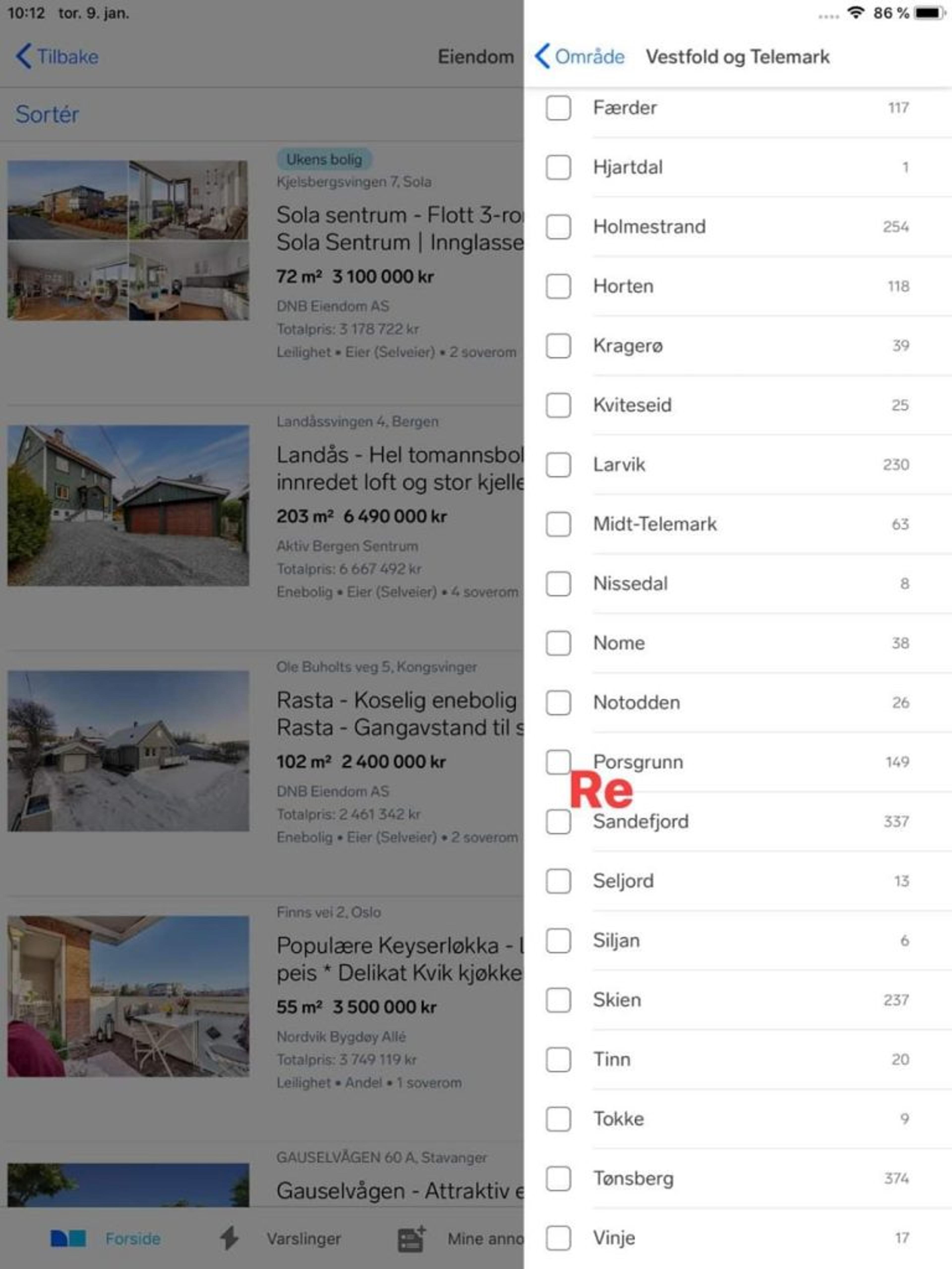 – Kanskje en sak for ReAvisa? «Hvordan finne bolig i gamle Re?» Nå er Re som søkeområde slettet. Plutselige blei det vanskeligere å finne boligene som var til salgs i går.