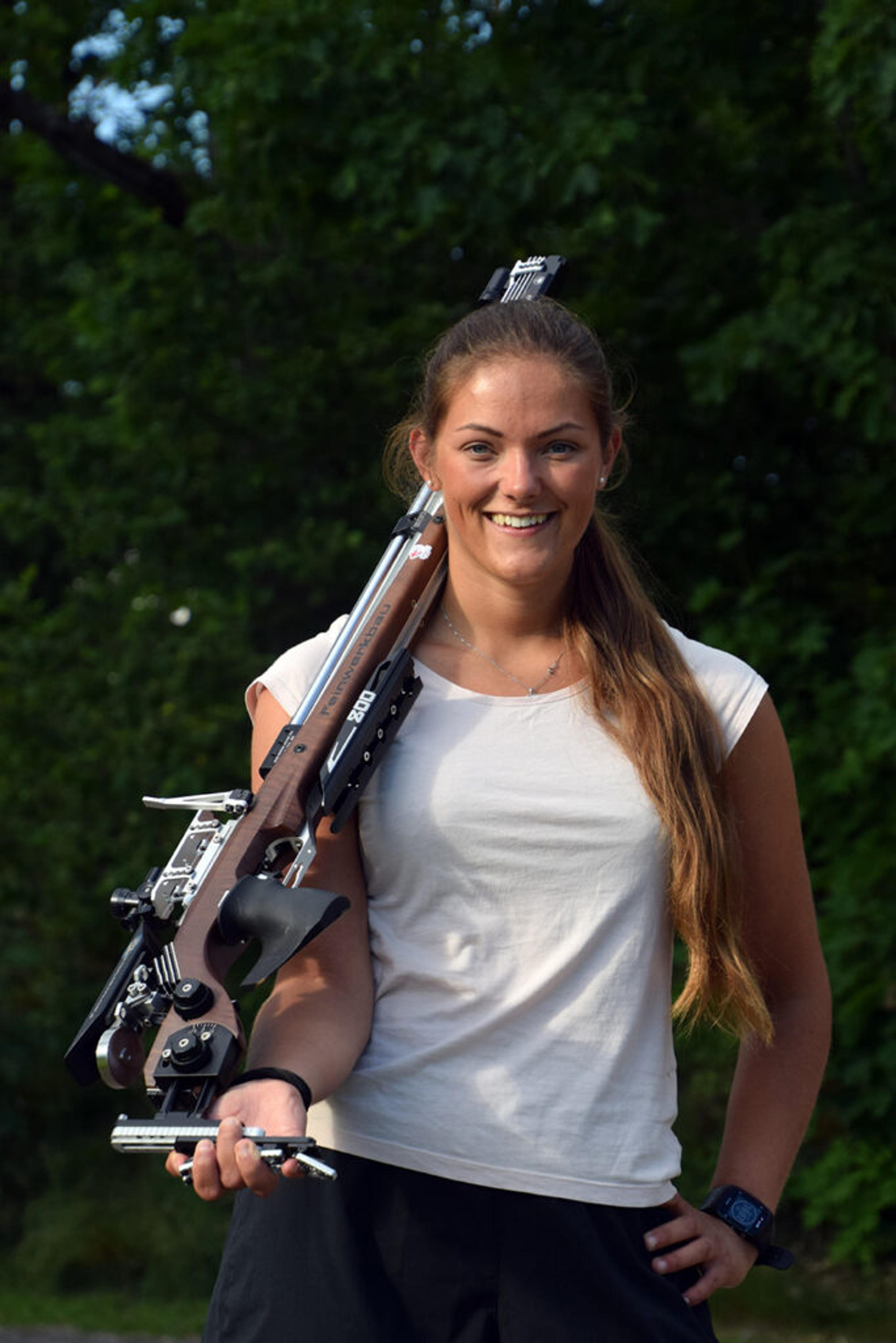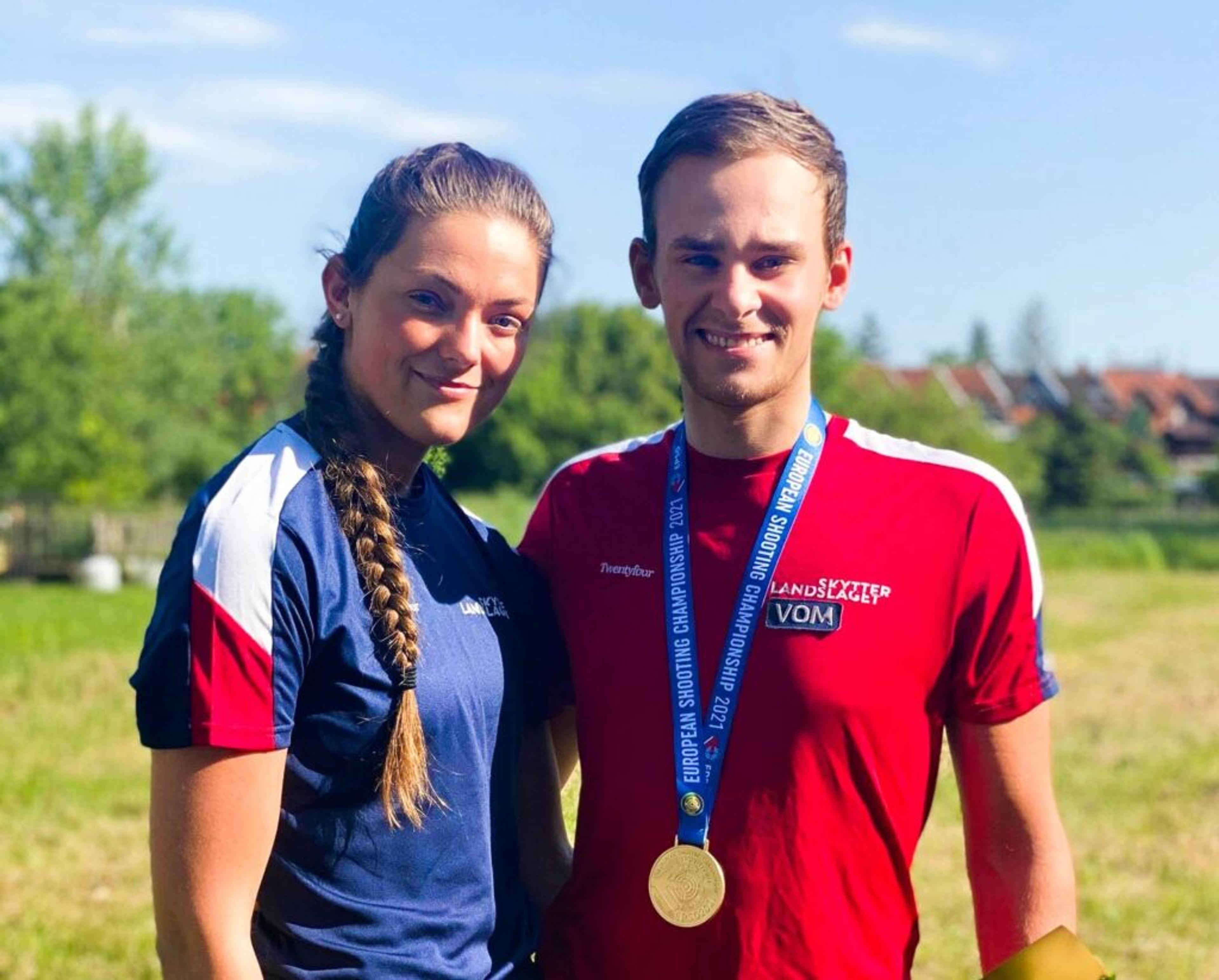 OL-KLARE: Jeanette Hegg Duestad (22) og kjæresten Henrik Larsen (23) utgjør en av to norske duoer i den neste skyteøvelsen i Tokyo-OL. Foto: Norges Skytterforbund.