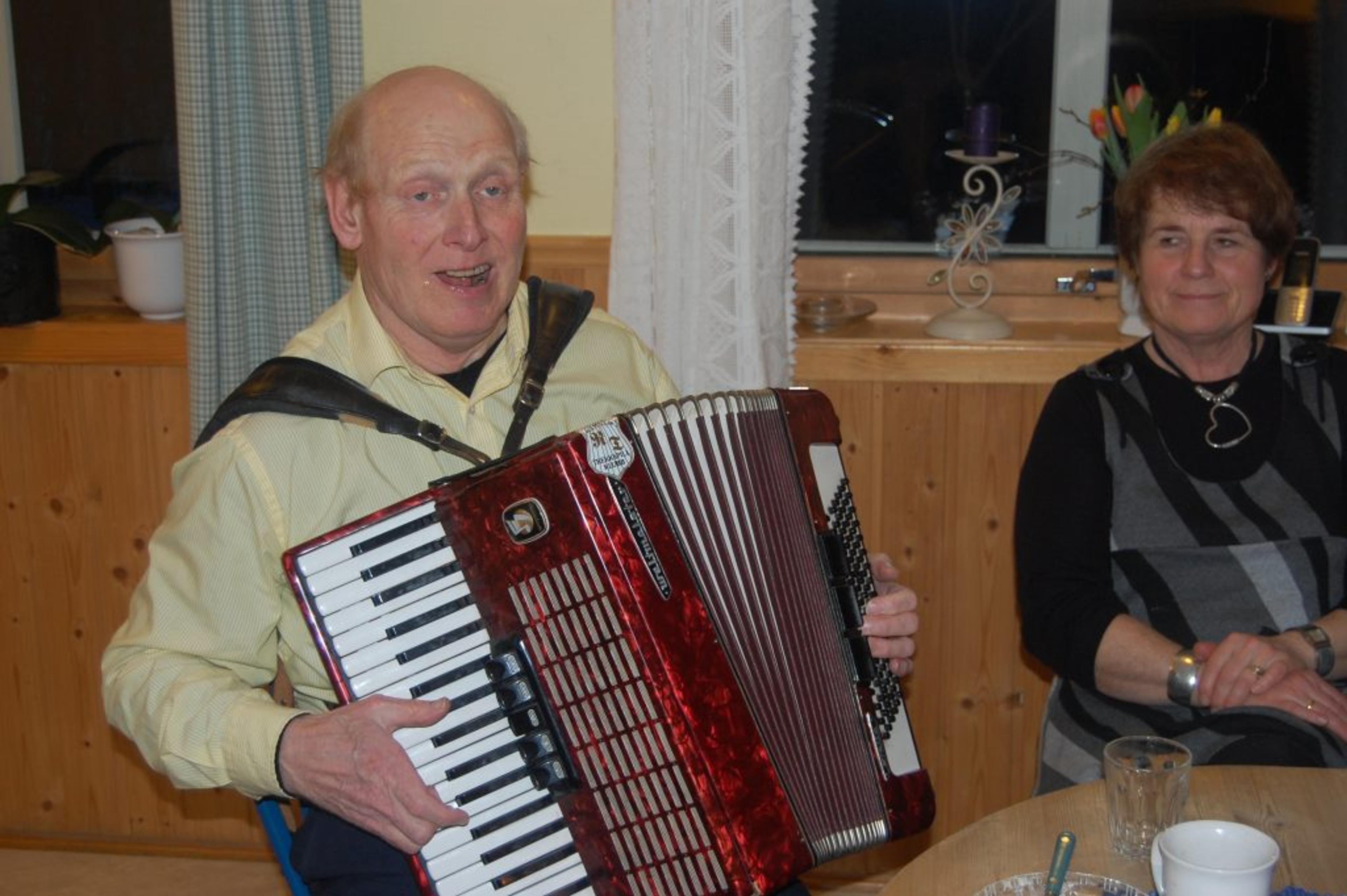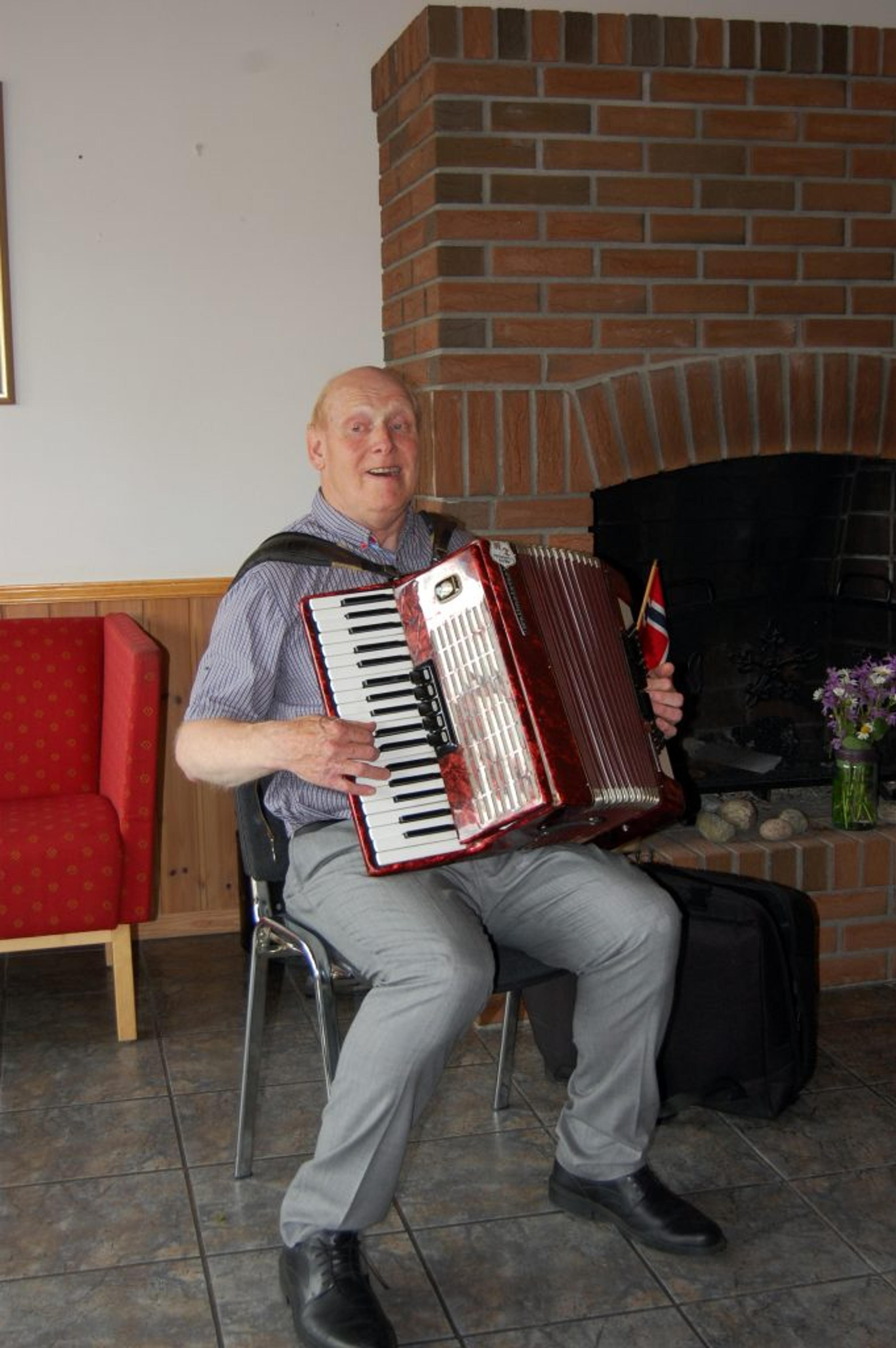 MUSIKKGLEDE: Ole Kristian spilte trekkspill i hyggelige lag. Foto: Håkon Westby.