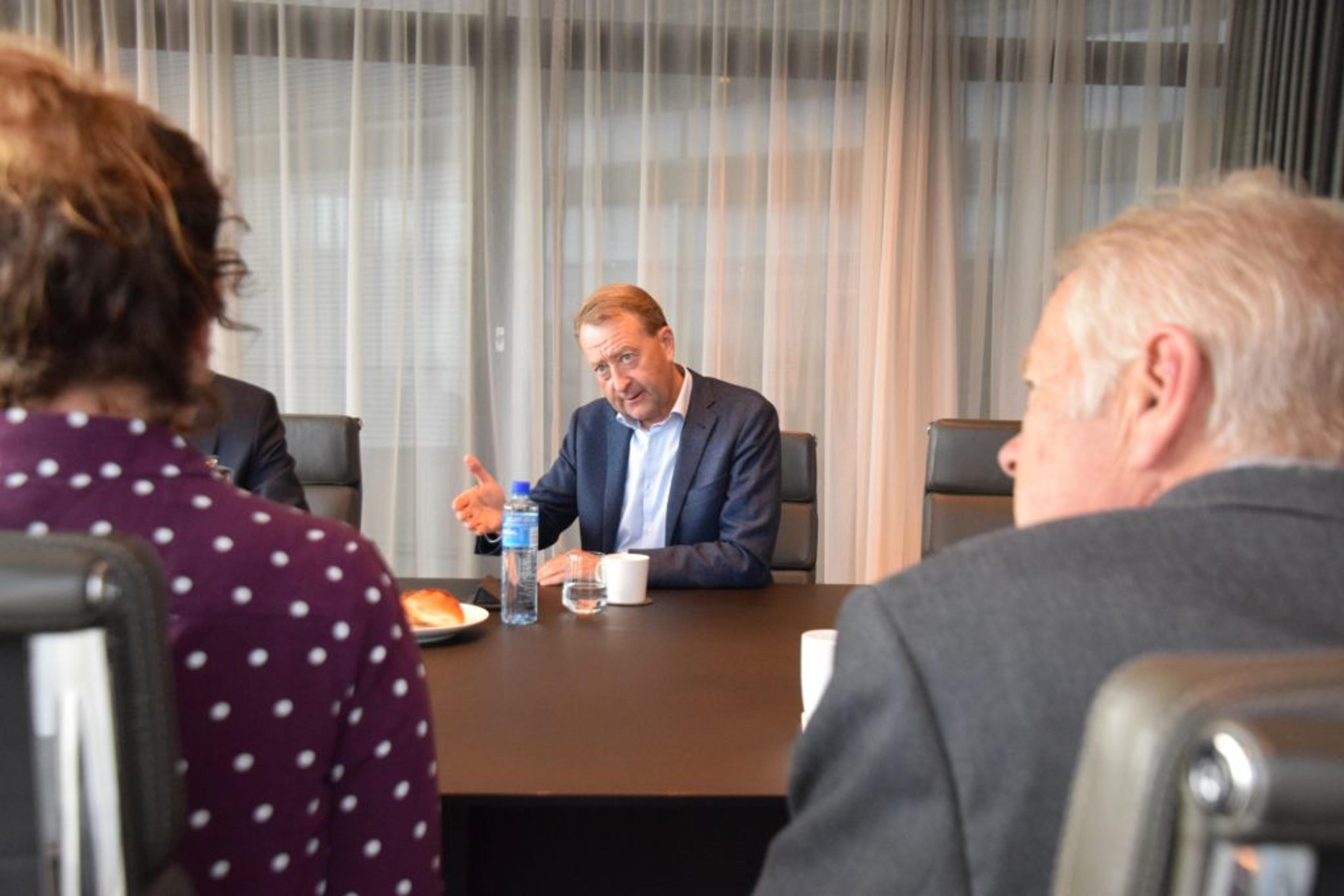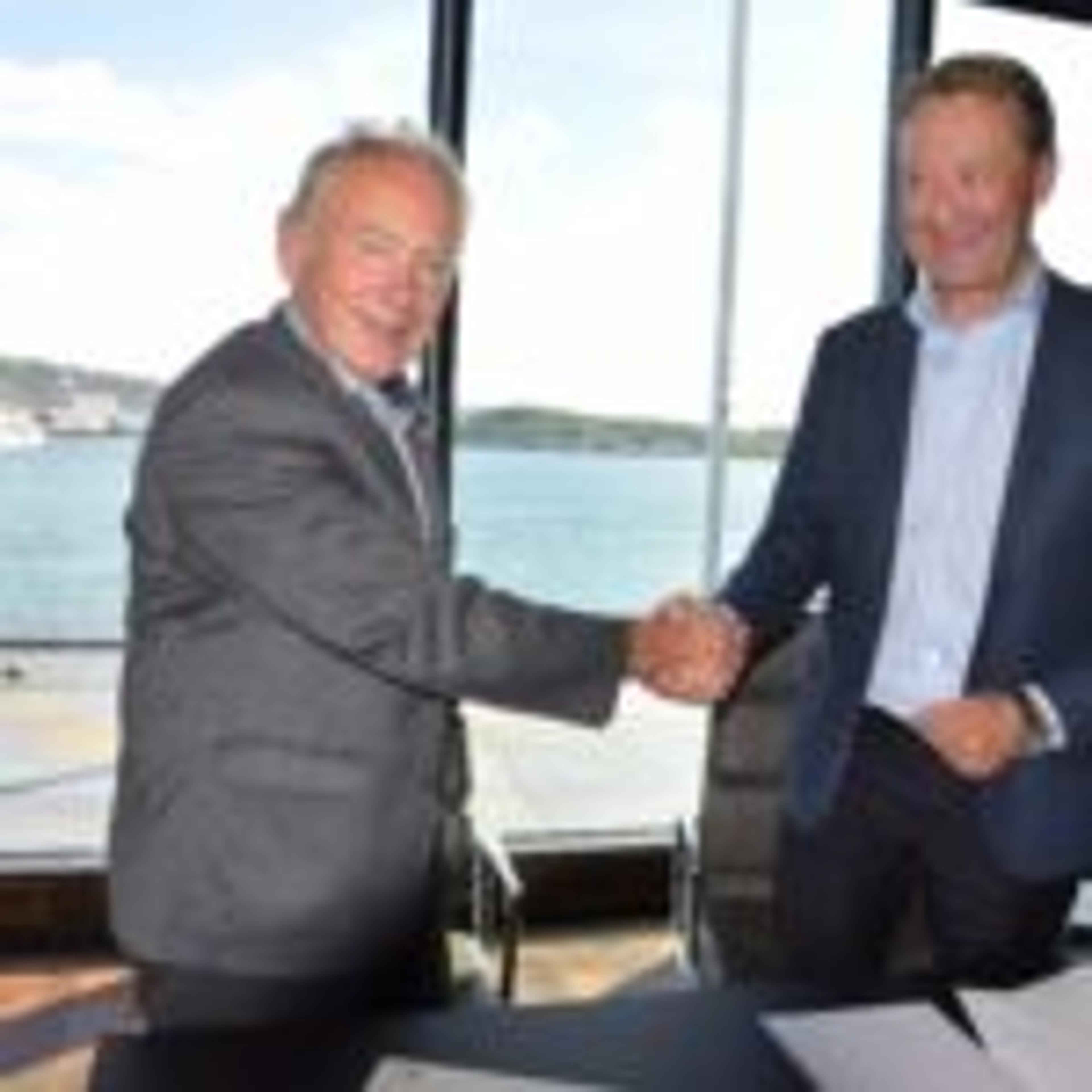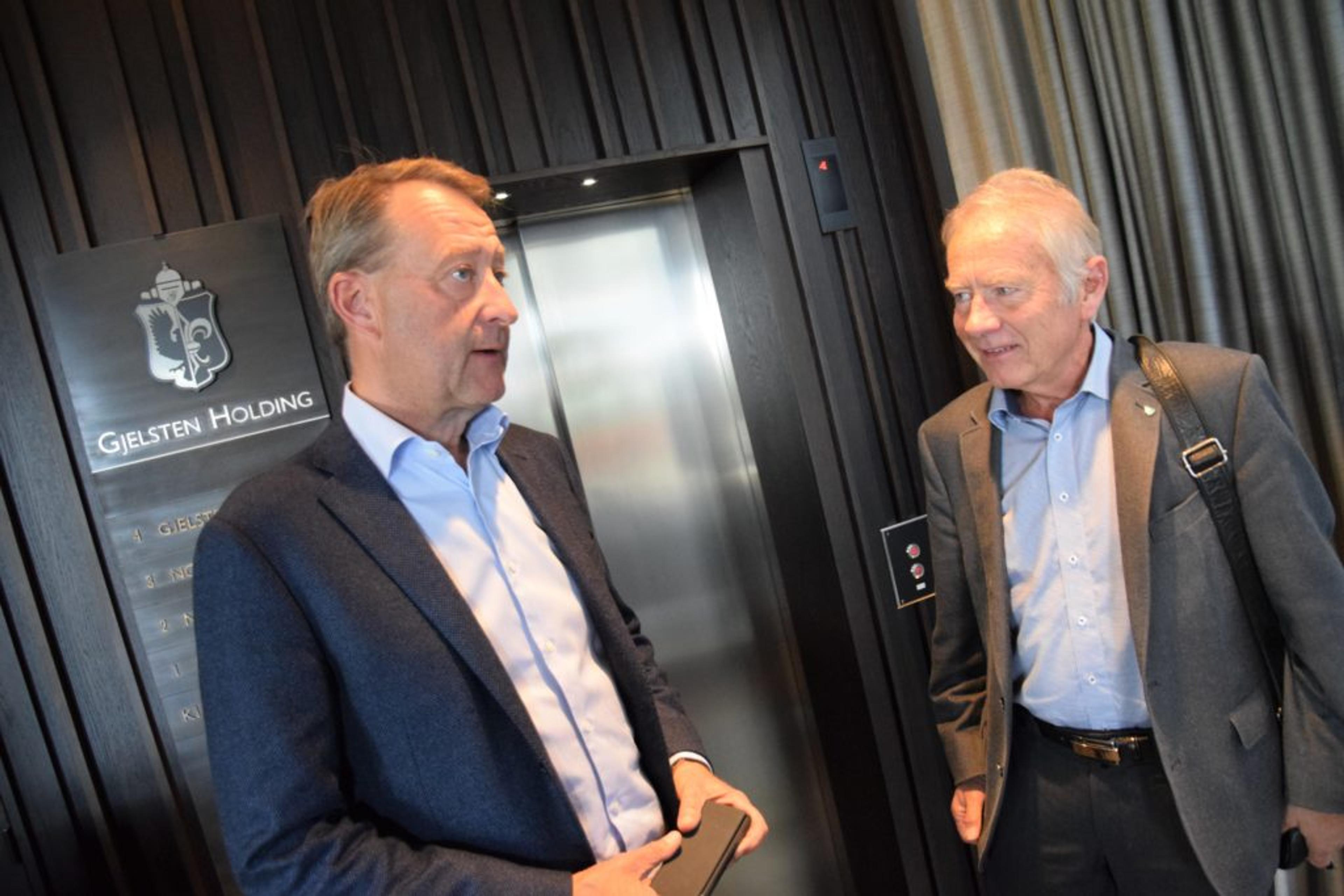 GODT SAMARBEID: – Gjelsten og NOAH er flinke til å informere om hva de driver med på Langøya. Noe staten ikke var da de dreiv der ute, sier Re-ordfører Thorvald Hillestad. Her i møte med Gjelsten på Aker brygge tidligere i høst. Foto: Stian Ormestad.