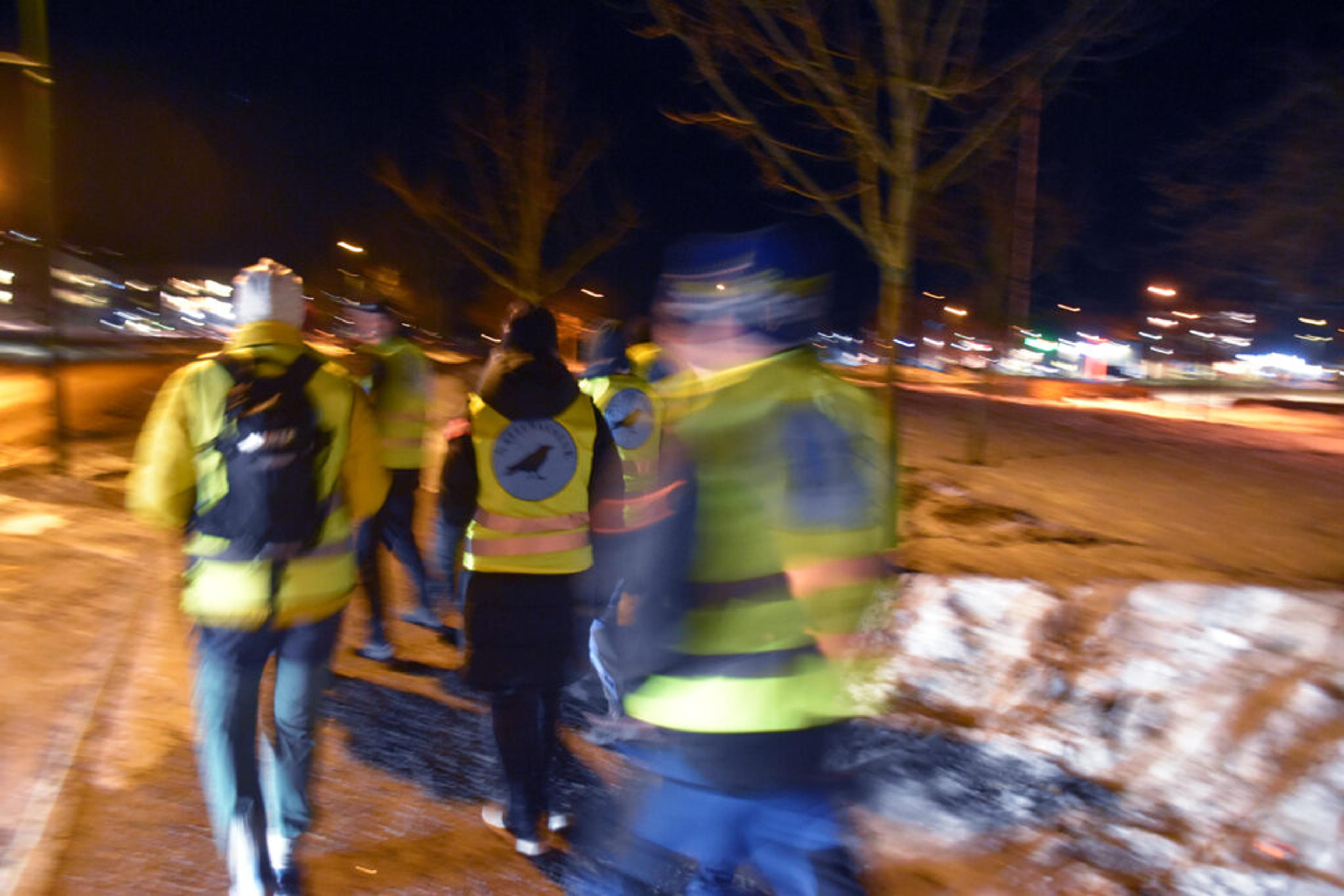 PRIORITERT OMRÅDET: Hærverk, brann og flere uønska hendelser i området rundt Bibo idrettsanlegg og Kirkevoll skole gjør at dette vil bli ruta for Natteravnene i Re. Bildet er fra den første turen for to år siden, som starta med en runde rundt Revetal. Foto: Stian Ormestad, ReAvisa.