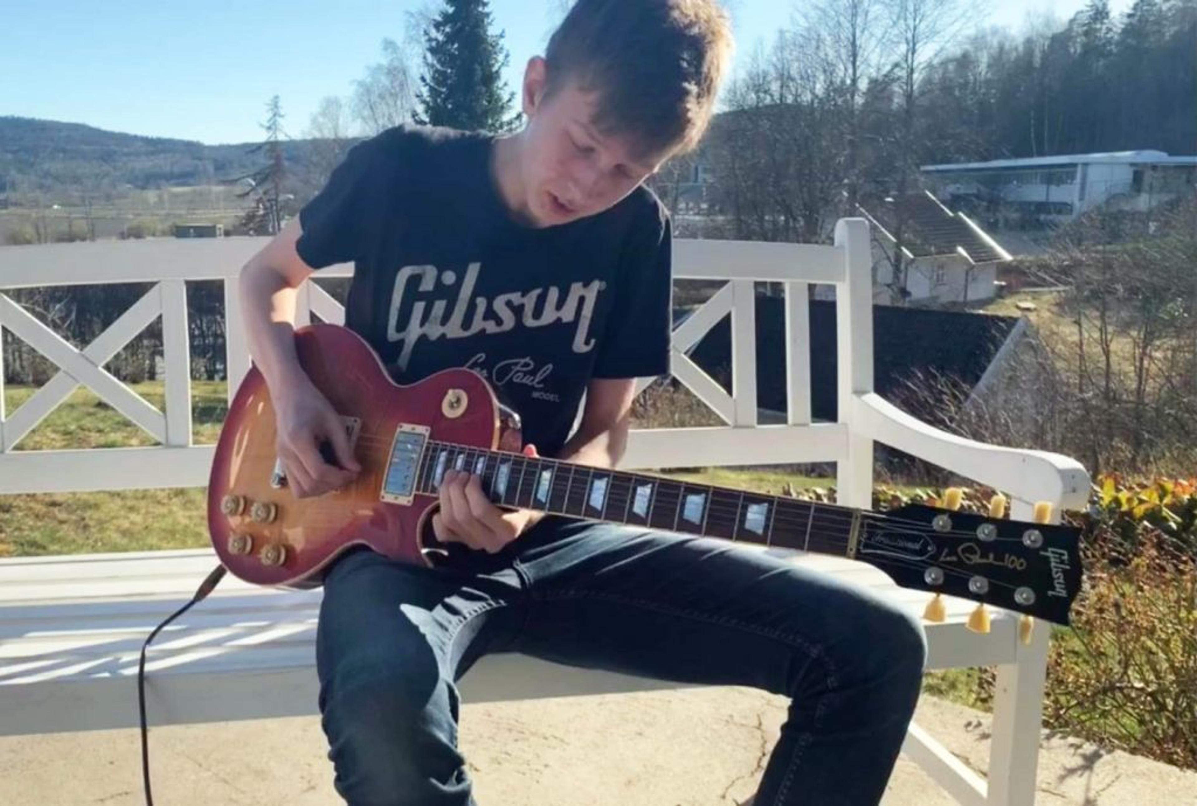Hadde det vært normale dager og ikkekorona-krisei verden, hadde Otto Lagarhus junior (14) fra Ramnes farta verden rundt og spilt gitar. Som da hanjamma med Little Stevens på Notodden Bluesfestival, for eksempel.