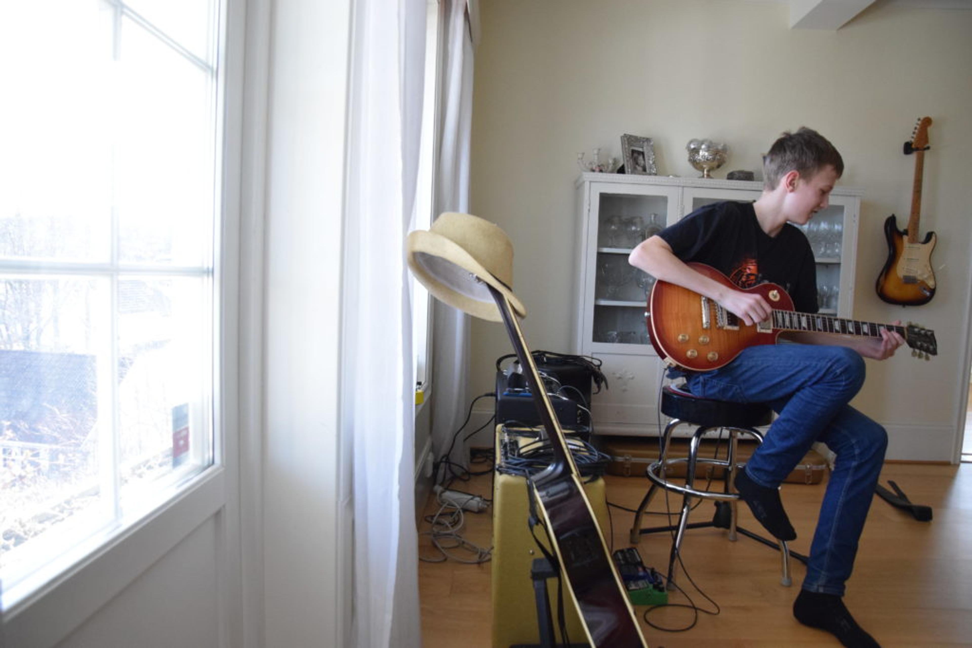 Gitarer virker som magneter på nevene hans, og han får lov å slenge seg med – og imponerer alle på sin vei.