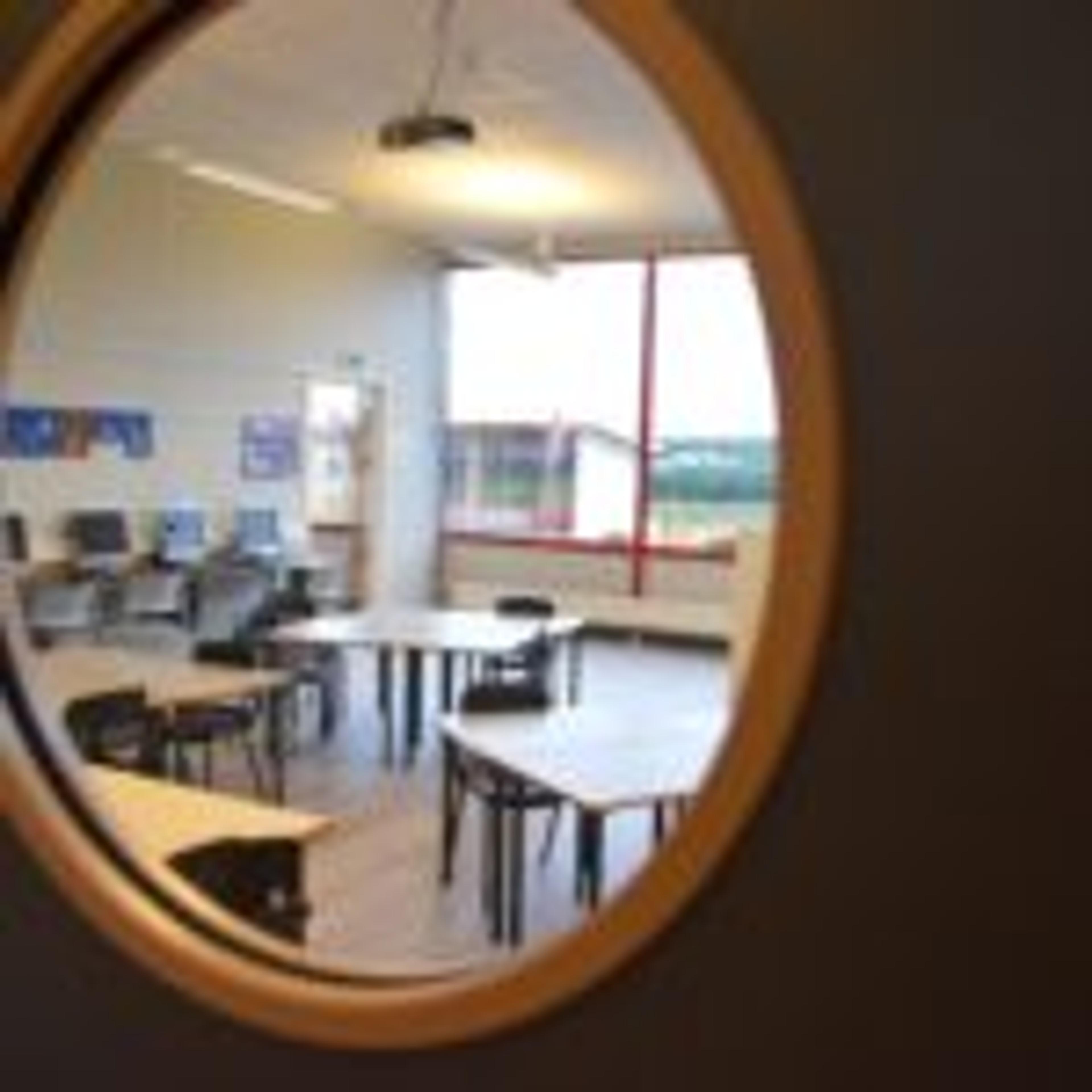 NY SKOLE: Alle klasserommene har et vindu i døra. Foto: Stian Ormestad.