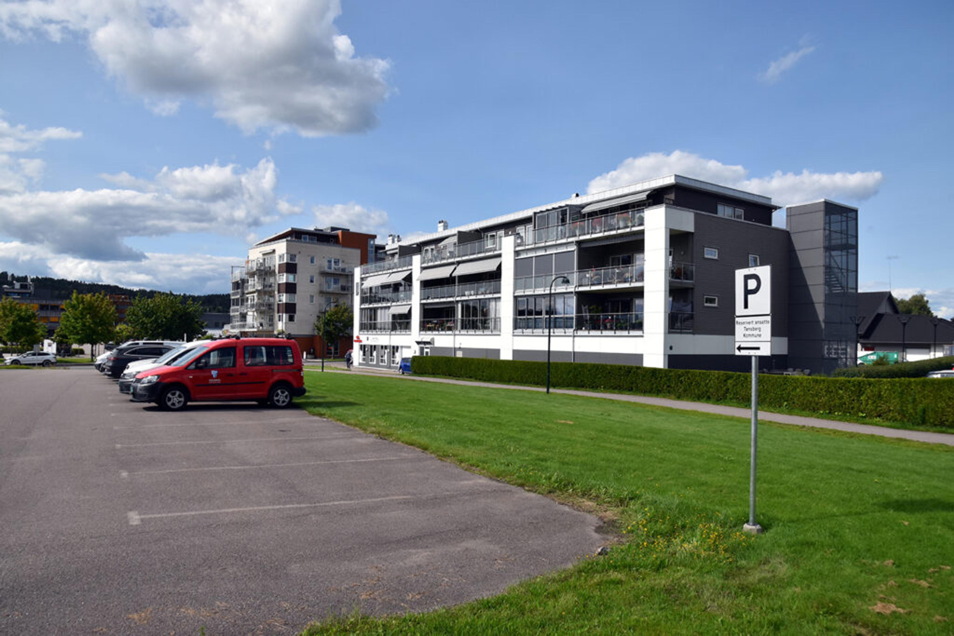 RESERVERT KOMMUNEN: Hele sida mot blokkene er reservert kommunens folk og biler, mens resten av plassen kan brukes fritt av alle – men ikke over 24 timer. Foto: Stian Ormestad, ReAvisa.