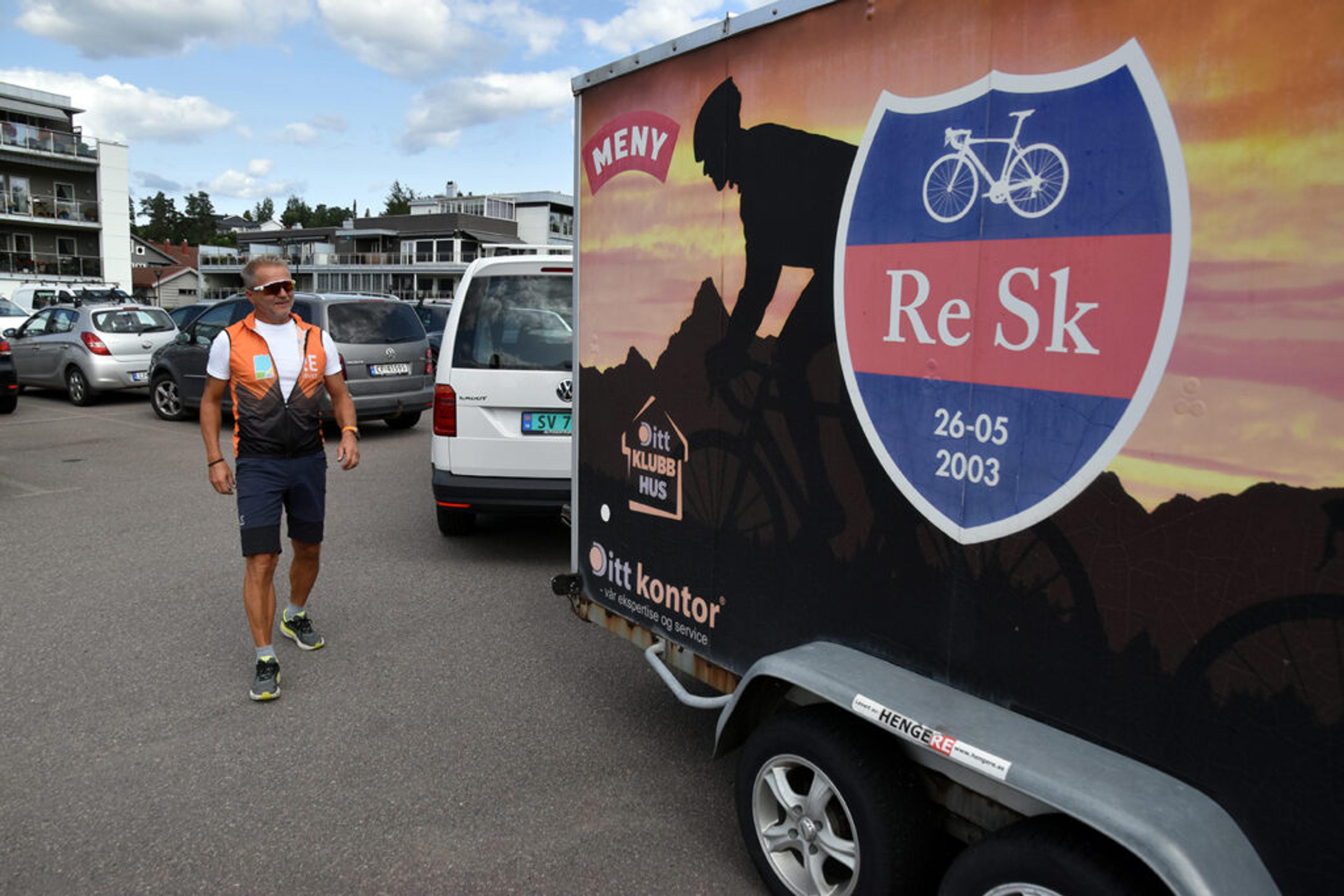 HJEMMEVÆRENDE: – Å ha hengeren på Revetal var god reklame, midt i glaninga, midt i bygdebyen. Det var også veldig kjekt med en sentral plassering for alle som skulle hente og levere den, da klubben og medlemmer brukte den, forteller Re SK-leder Terje Fekene om den gamle muntlige avtalen med gamle Re kommune. Som nå er historie, tydeligvis. Sykkelklubben kan også se langt etter et positivt svar på en søknad om reservert plass til hengeren her, etter det lokalavisa får til svar fra kommunalt hold. Foto: Stian Ormestad, ReAvisa.