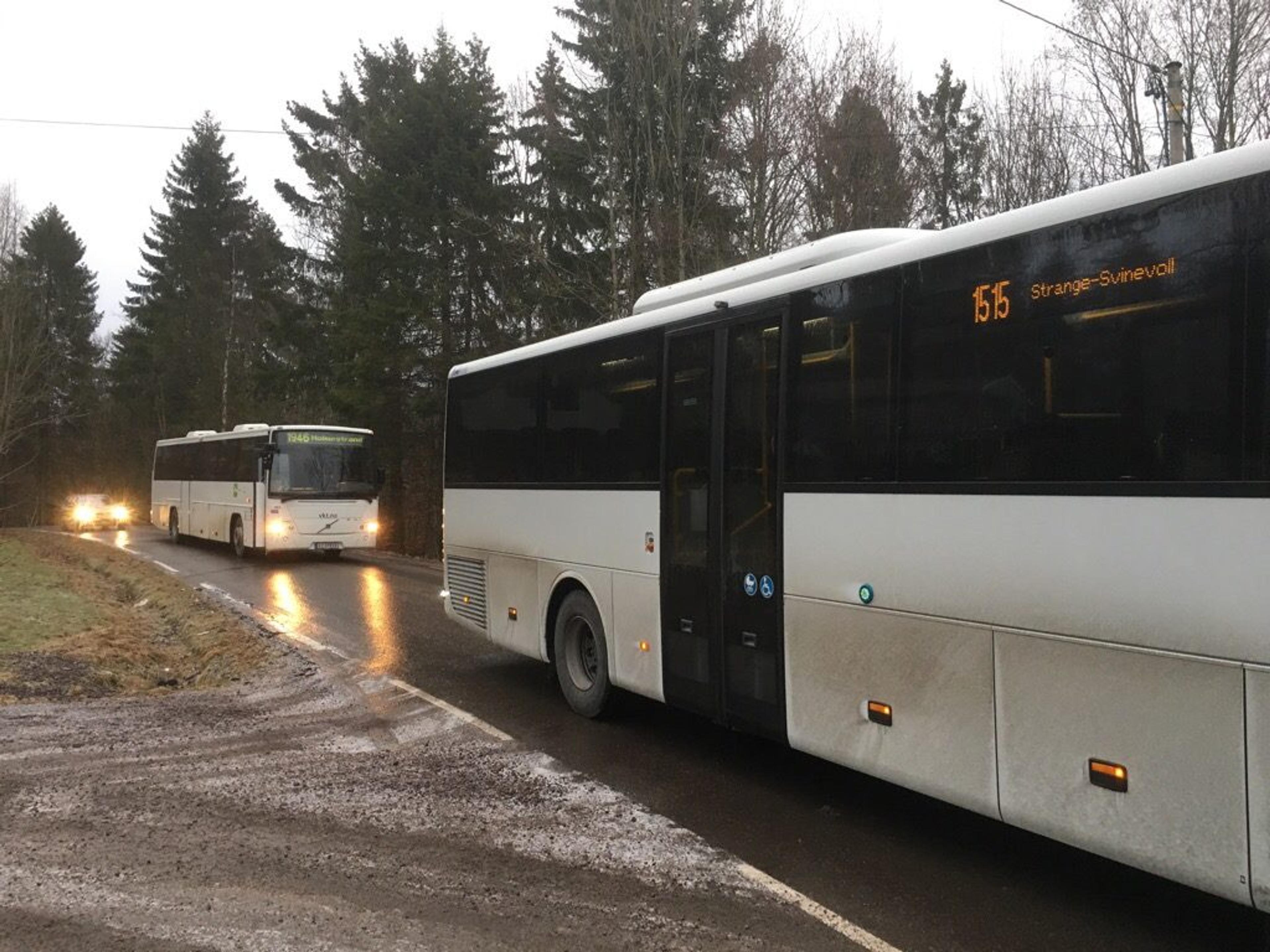 – Der det er så glatt at det legger seg is på veien har vi valgt å innstille rutene. Det gjelder også ruter der vi har piggdekk på bussene – vi har rett og slett ikke nok veigrep på glatta.