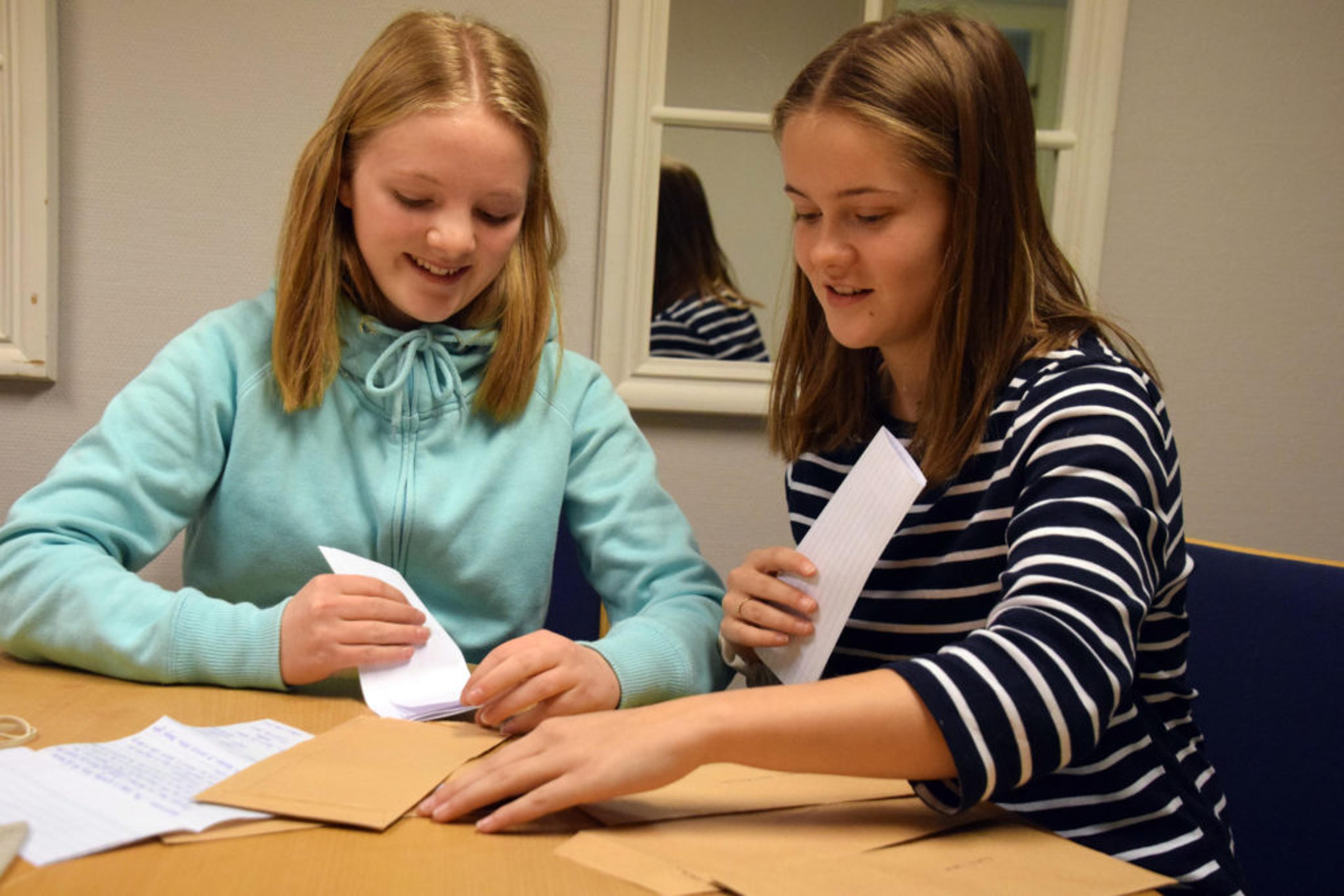 ØNSKER SEG PC-ER: Selma Eggum Myrvang (14) og Lene Sofie Engebretsen (14) håper å kunne ta med seg PC-er til ungdomsskolen i Katwe. Der har de bare fire PC-er fra før av. Foto: Stian Ormestad.