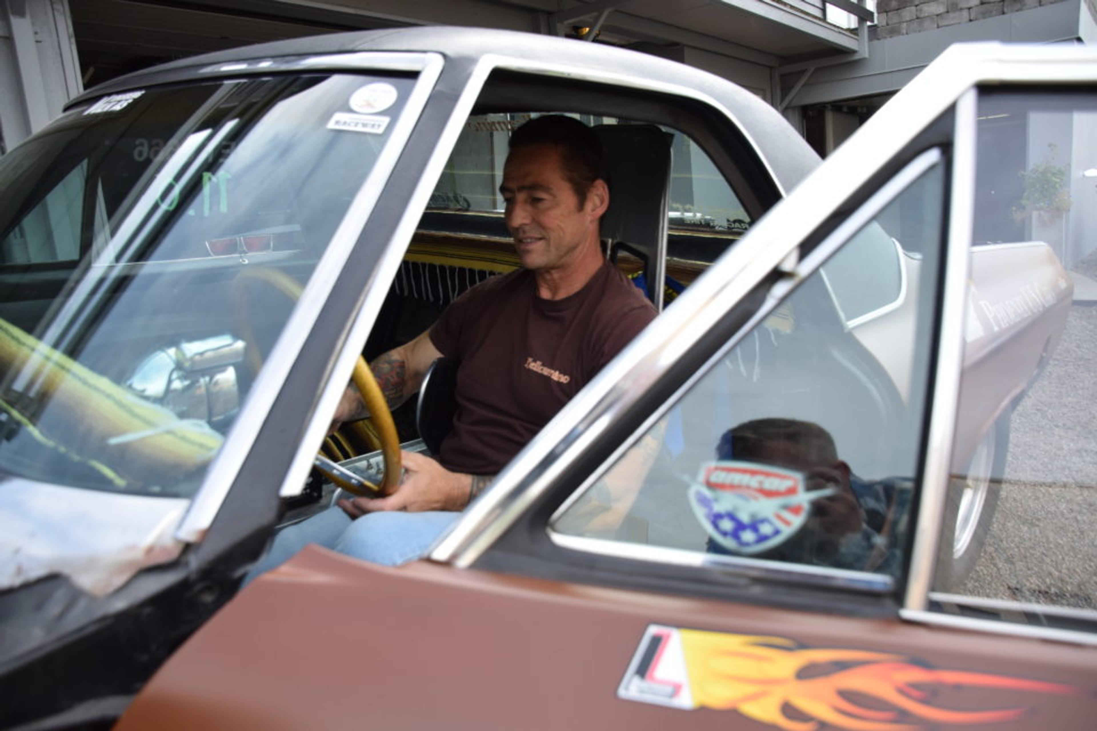 HJEMMEMEK OG GJENBRUK: Per Eilertsen (55) fra Revetal henger med i norgeseliten i dragrace på hobbybudsjett. Til neste år satser han enda hardere, med en ny og enda raskere bil. Da tar han gjerne i mot lokale sponsorer som vil bli med på den ville ferden videre. Foto: Stian Ormestad.