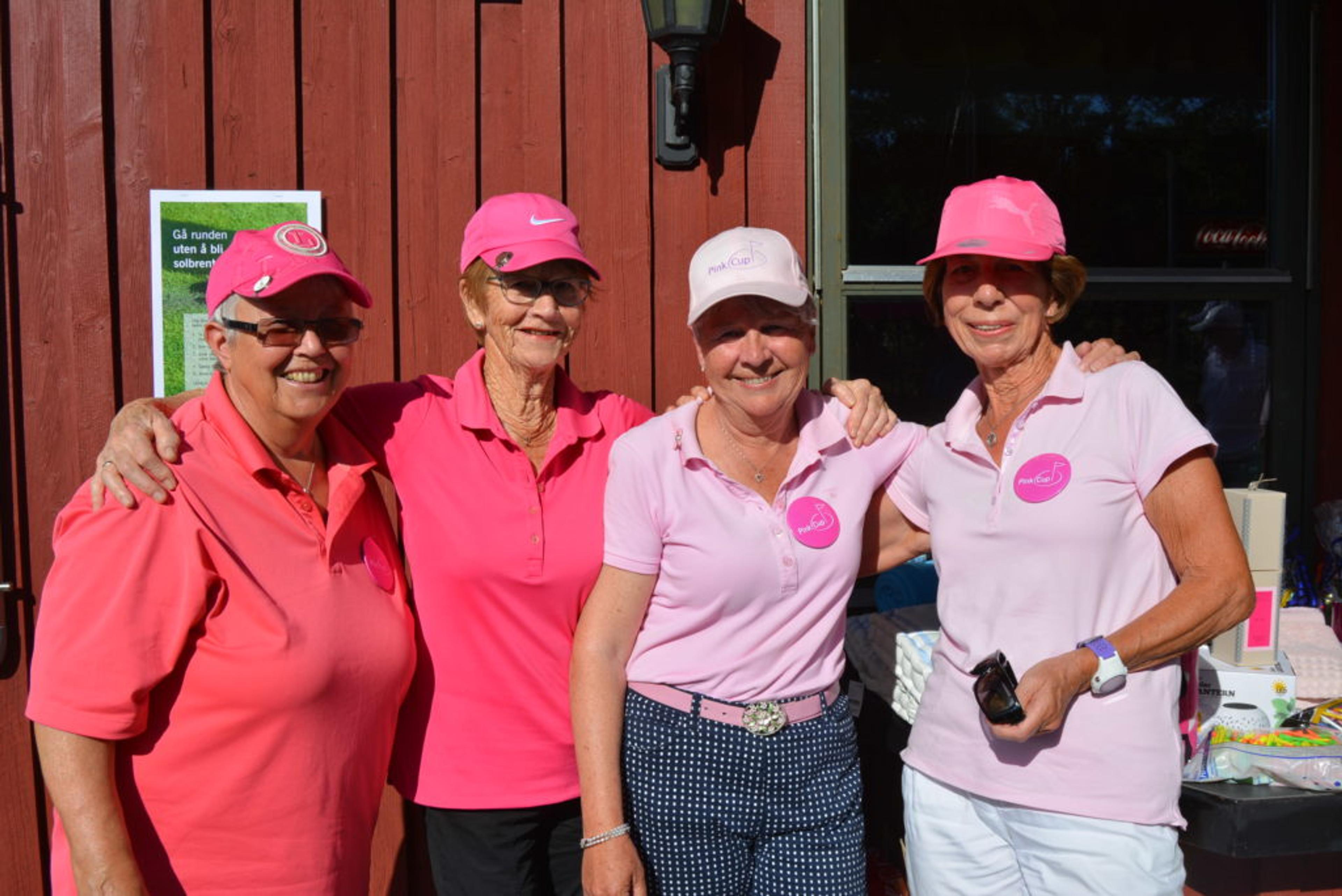 PINK CUP: Kristen Seeberg, Wenche Walmestad, Liv Hansen og Else Bergseth Jacobsen stilte alle opp i rosa under «Pink cup» på Re golfbane. Foto: Amalie Andersen.