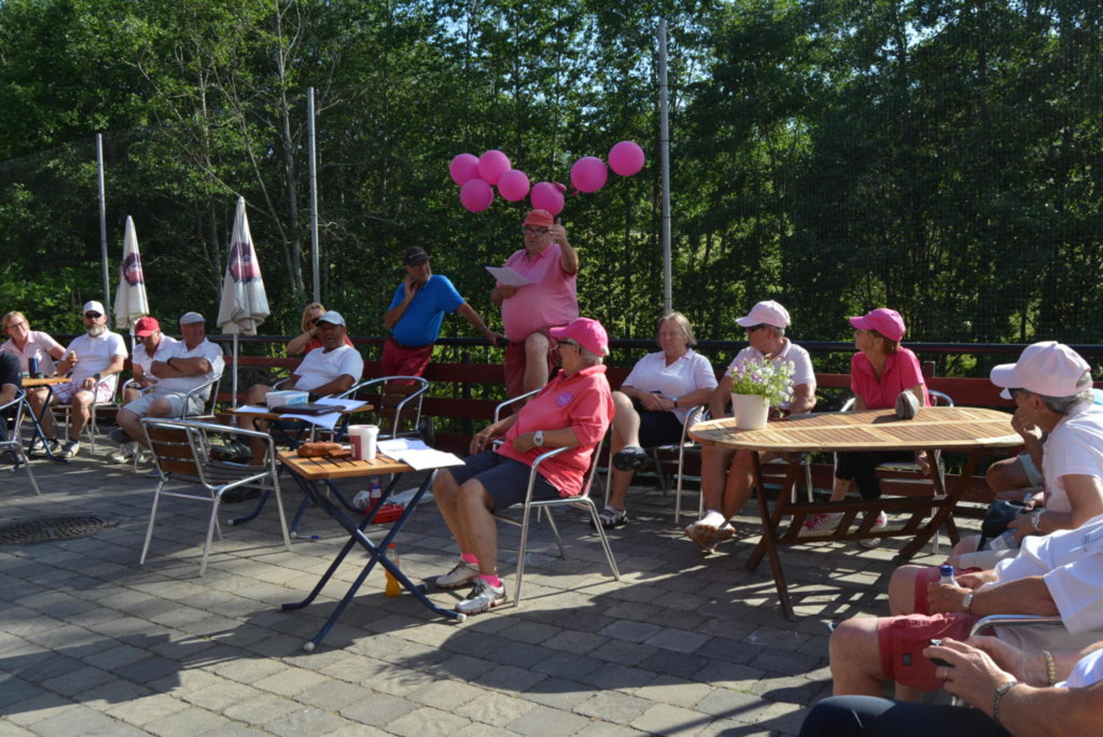 Sola skinte da lokalavisa kom innom Re golfklubb sist torsdag. Liv Hansen og flere av de andre damene i golfklubben gikk rundt med rosa T-skjorter, capser og pins hvor det sto «Pink cup».
