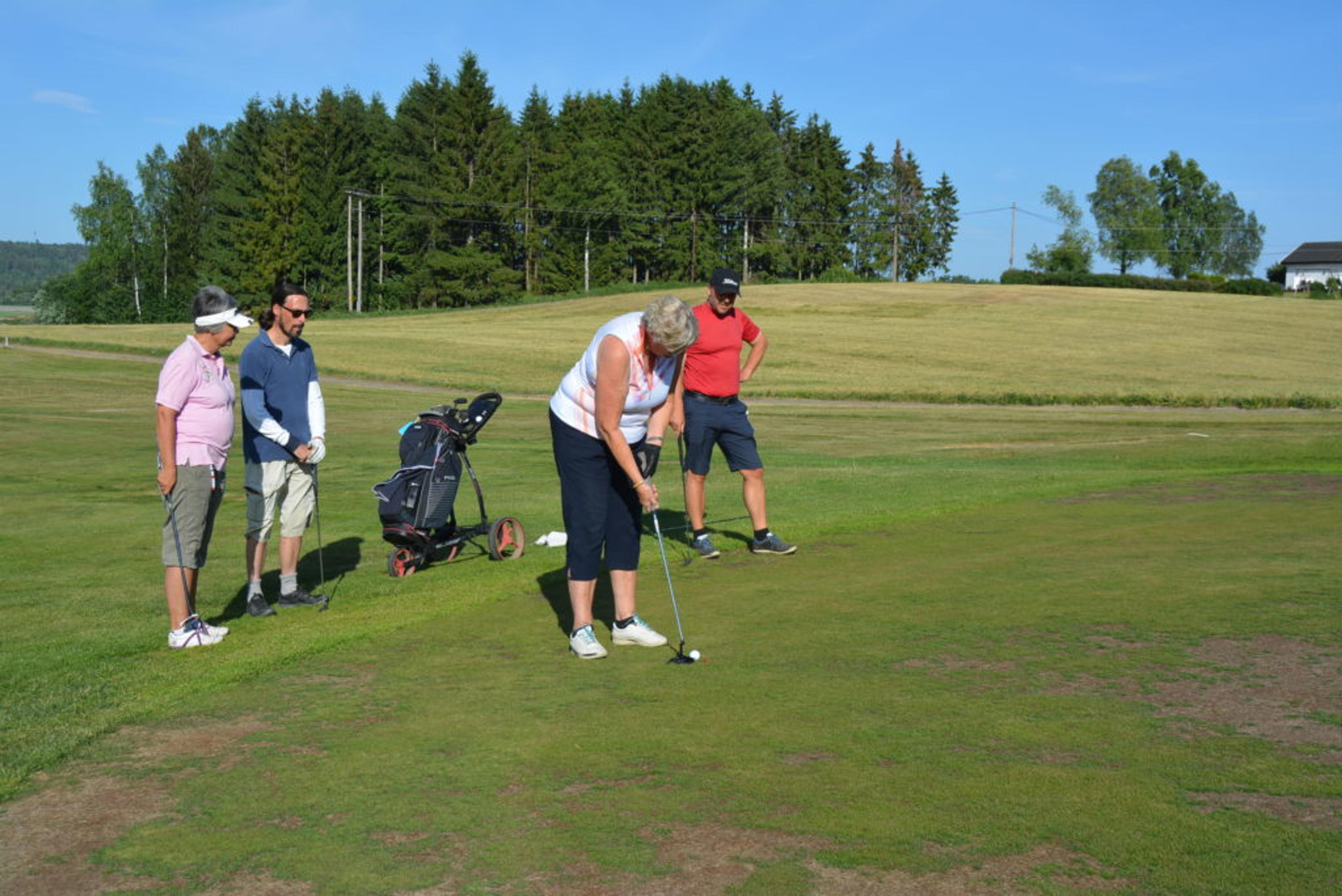 Og da turneringa var i gang i solsteika hang ReAvisa seg på golfspillerne Anita Krystad, Anne Karin Nielsen, Svein Holm og Truls Gran som sammen dannet ett av de åtte lagene som var med.