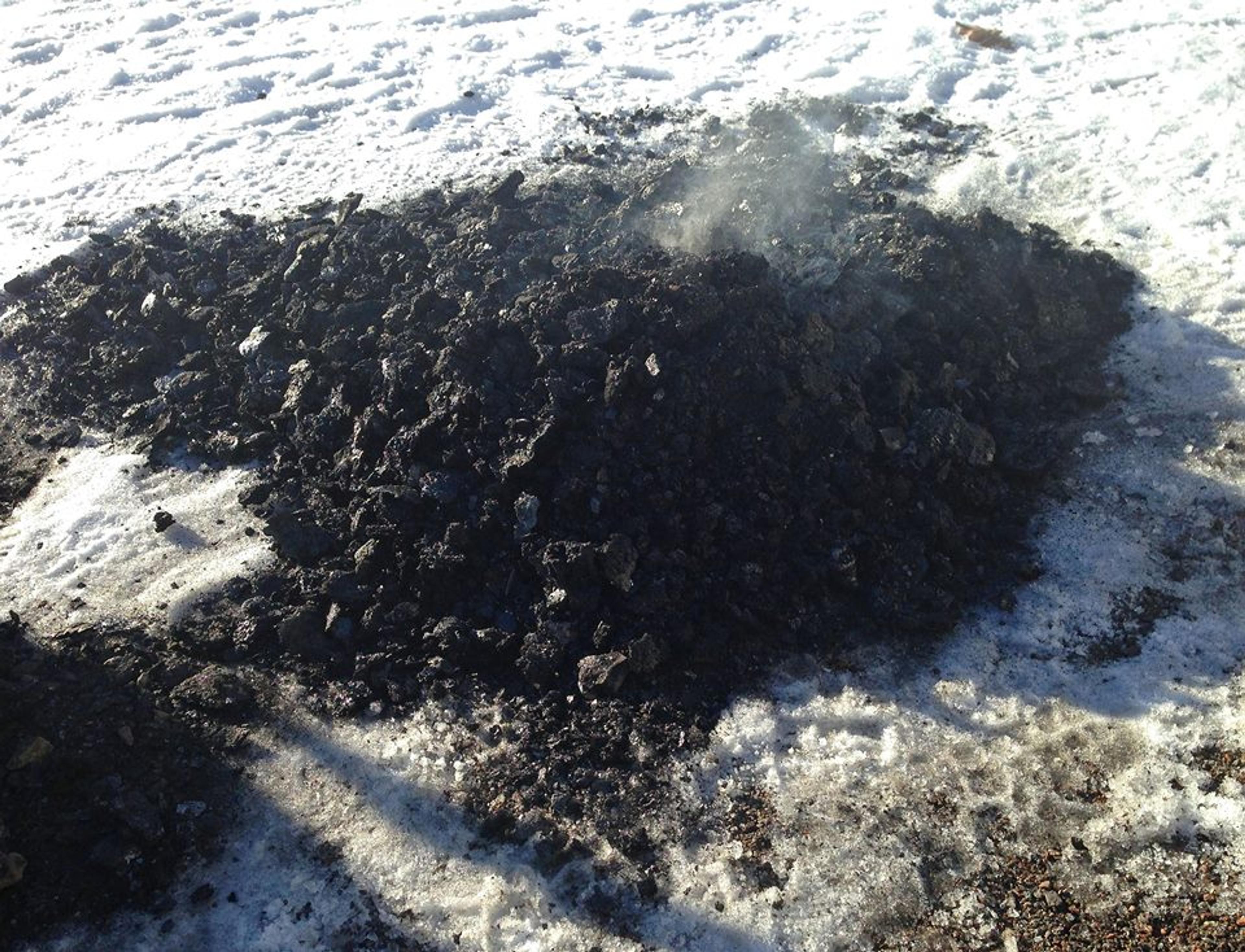 BEKSOT: Dette er haugen med beksot som ble tatt ut av pipa under slokkingen. Foto: VIB.