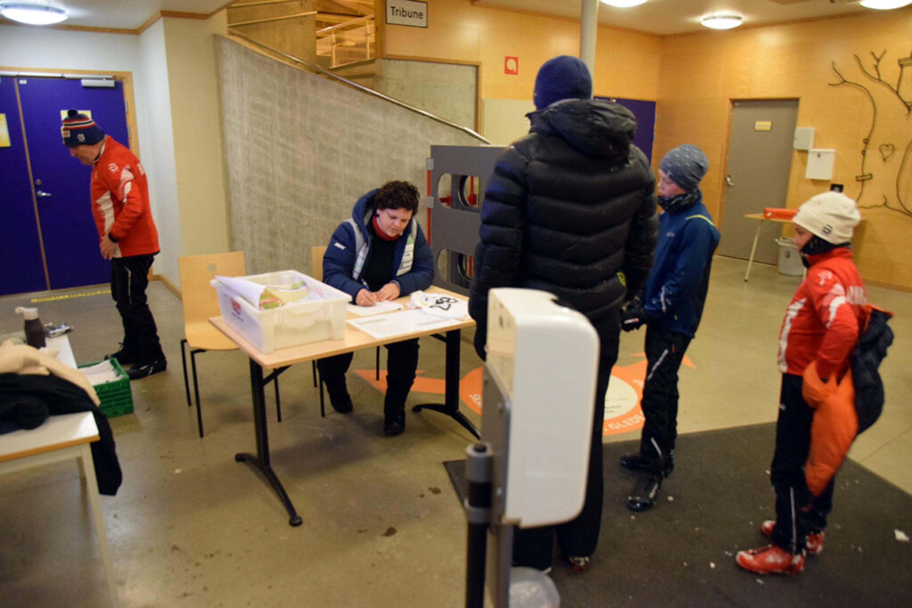 SEKRETÆRIAT: Margareth Horn noterer ned navn og nummer, og veteranen Svein Olsen holder orden på det praktiske. Foto: Stian Ormestad.
