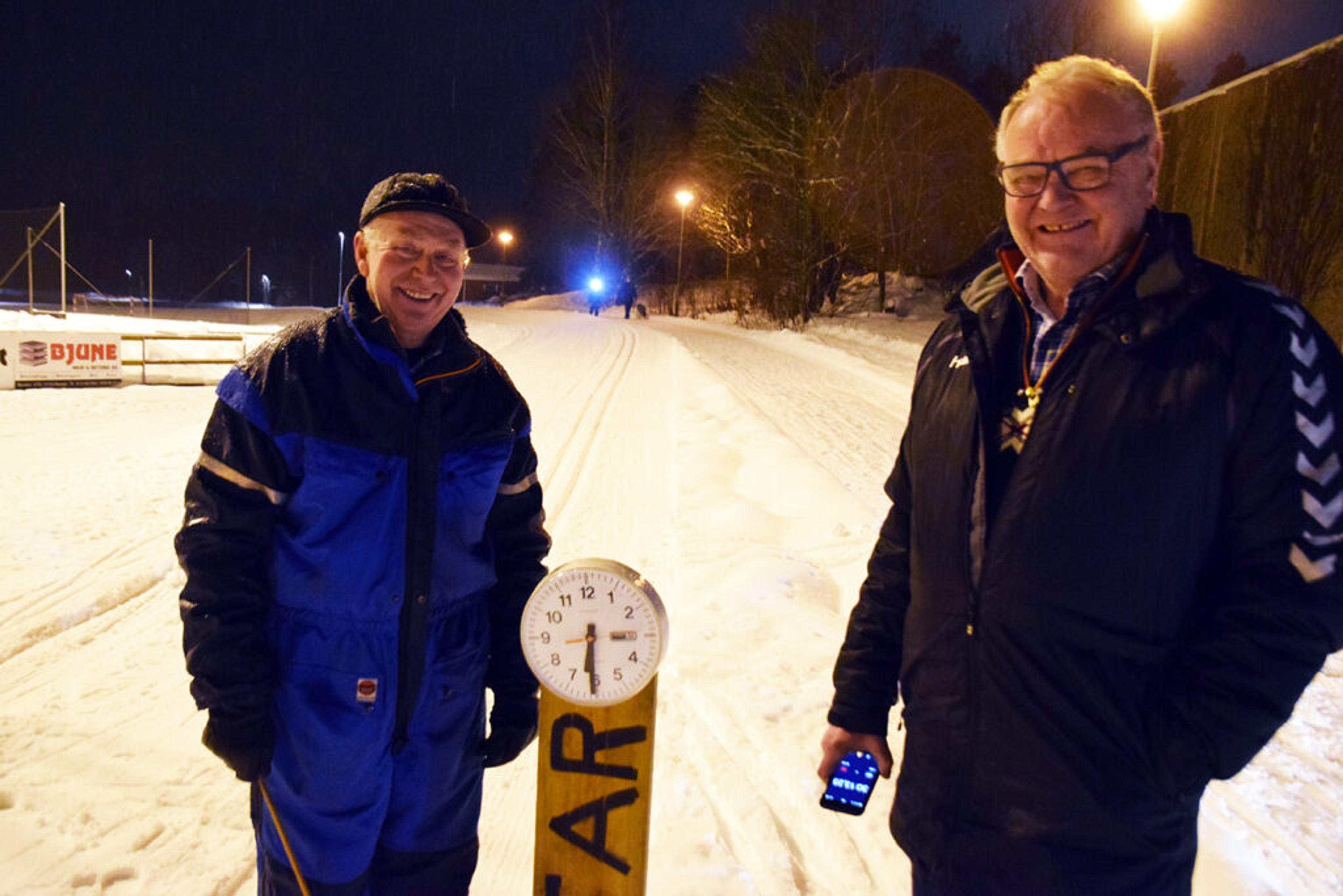 Ved start og mål for lysløypa i Bergsåsen finner vi veteranene Arvid Gran og Reidar Skjeggerød. De har stått for lysløyperenn i Ramnes gjennom mange barnekull i bygda.