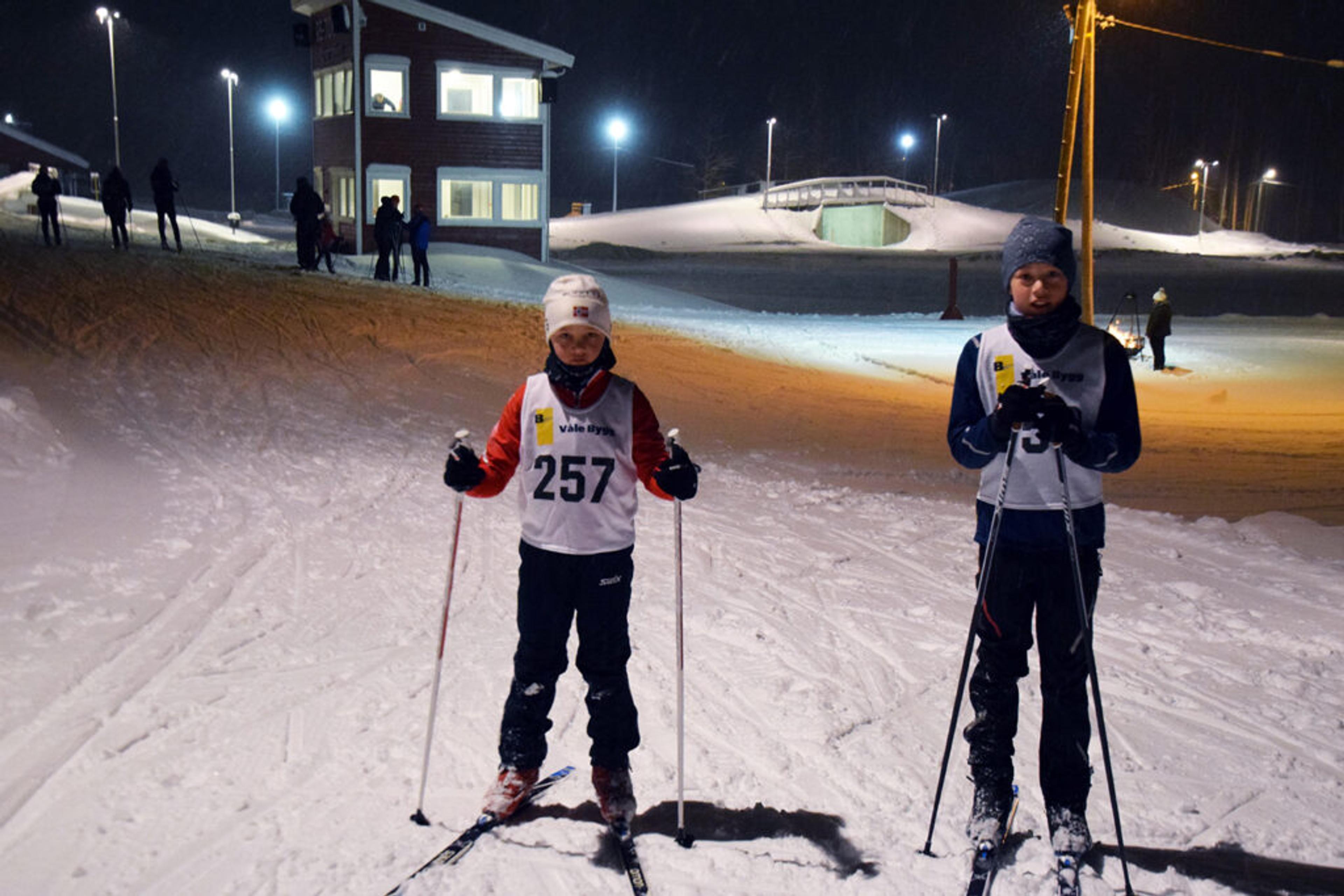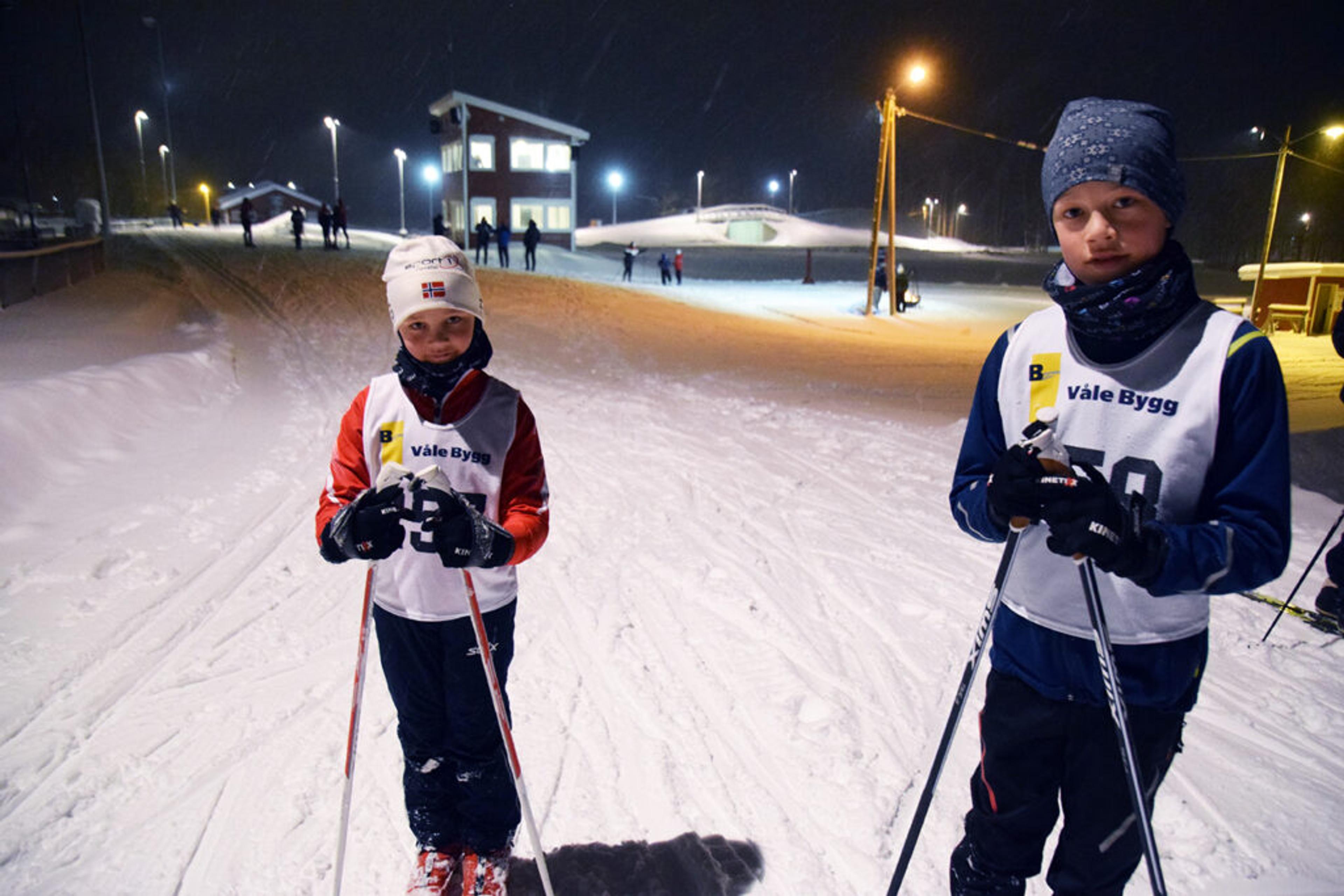 UTÅLMODIGE: Brødreparet Edvard Eia Linnestad (8 på fredag) og Theodor Eia Linnestad (10) fra Skjeggestadåsen hadde nesten ikke tid til å prate med ReAvisa, ivrige på å komme i gang med poenglangrenn-sesongen på Bibo. Foto: Stian Ormestad.