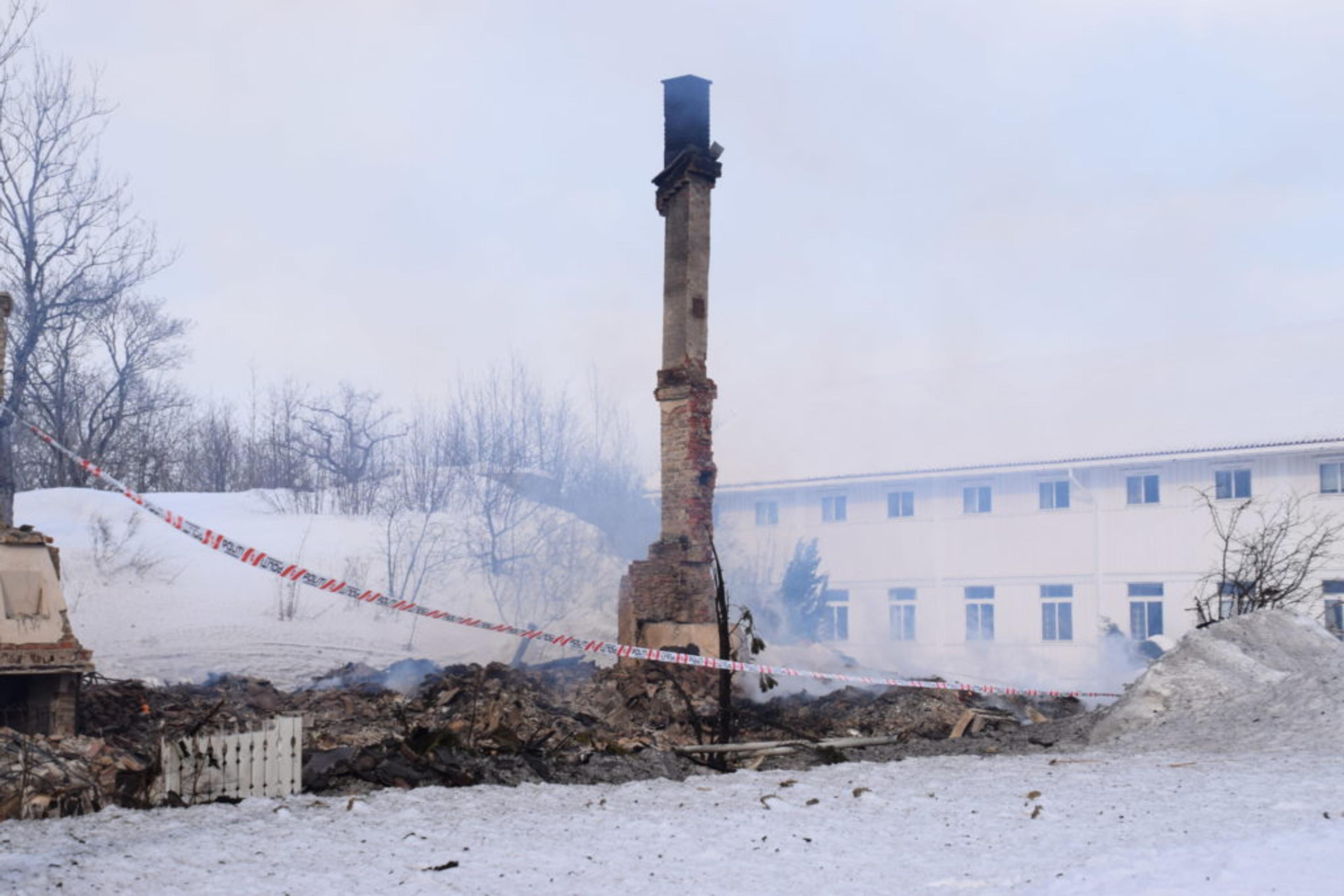 BARE PIPA STÅR IGJEN: Det eldste huset på Solvoll brant helt ned til grunnen i vinter. Nå er saken henlagt, uten at noe tyder på annet enn at brannen starta ved et uhell uten at noen var tilstede. Foto: Stian Ormestad.