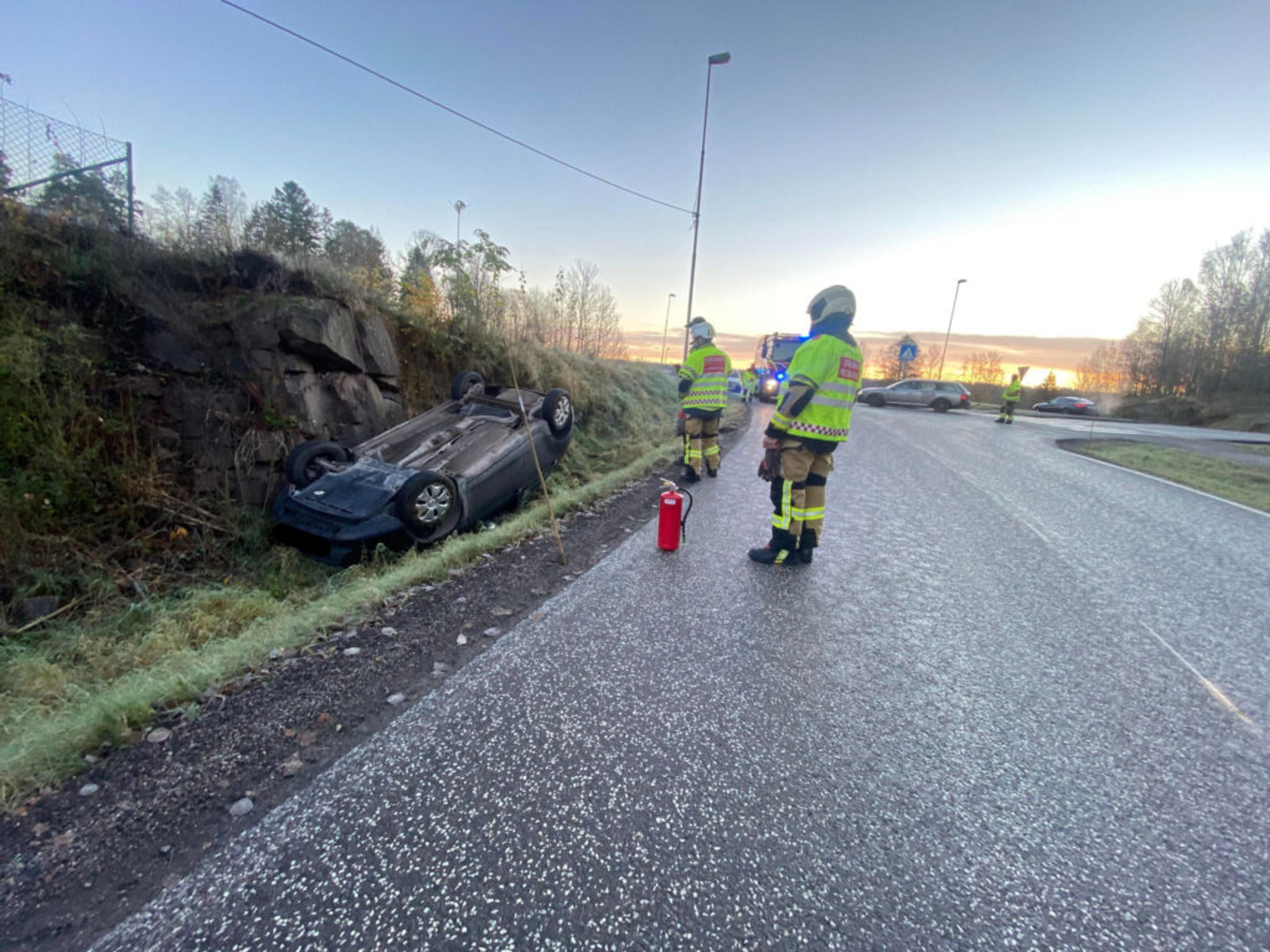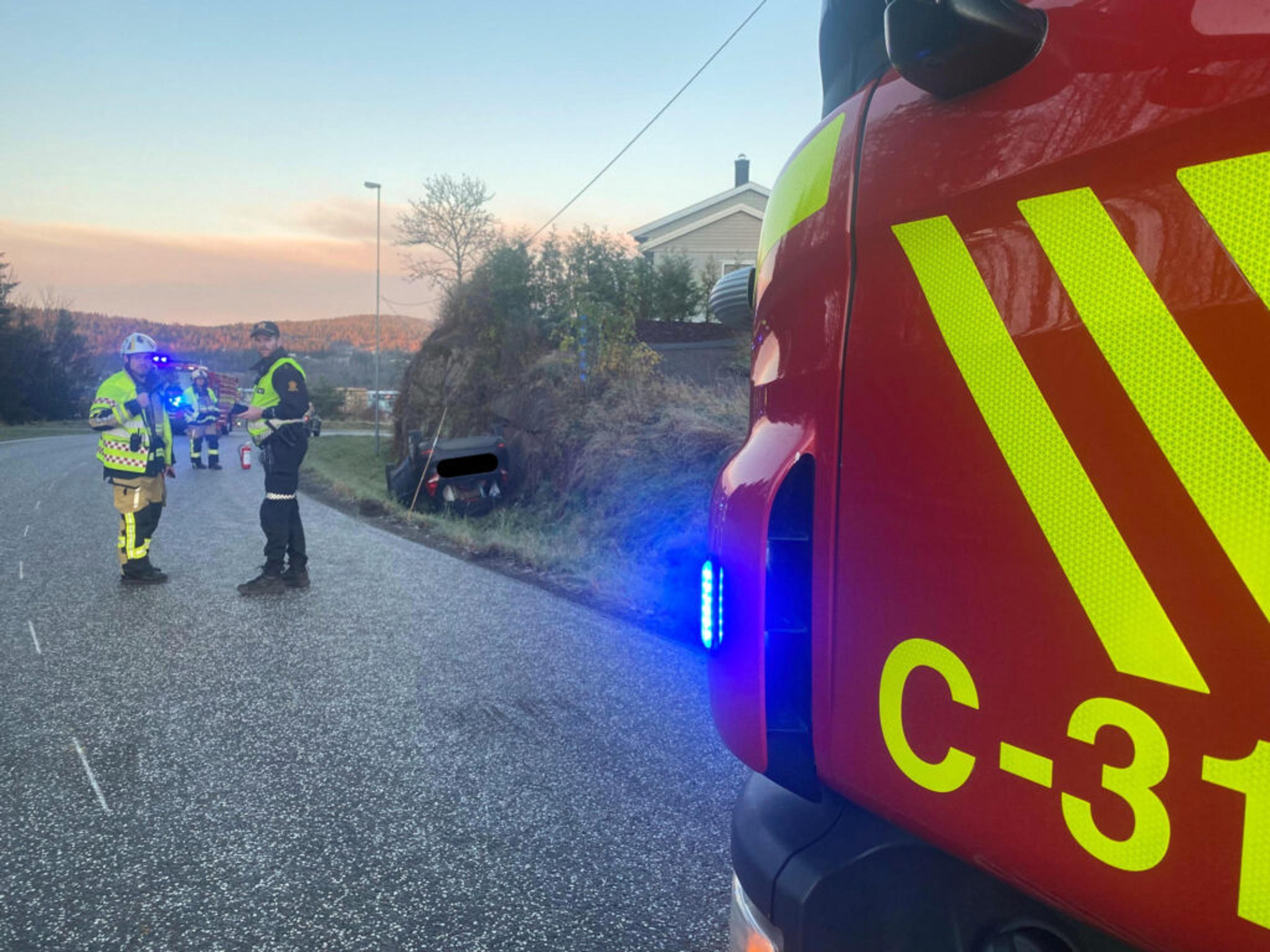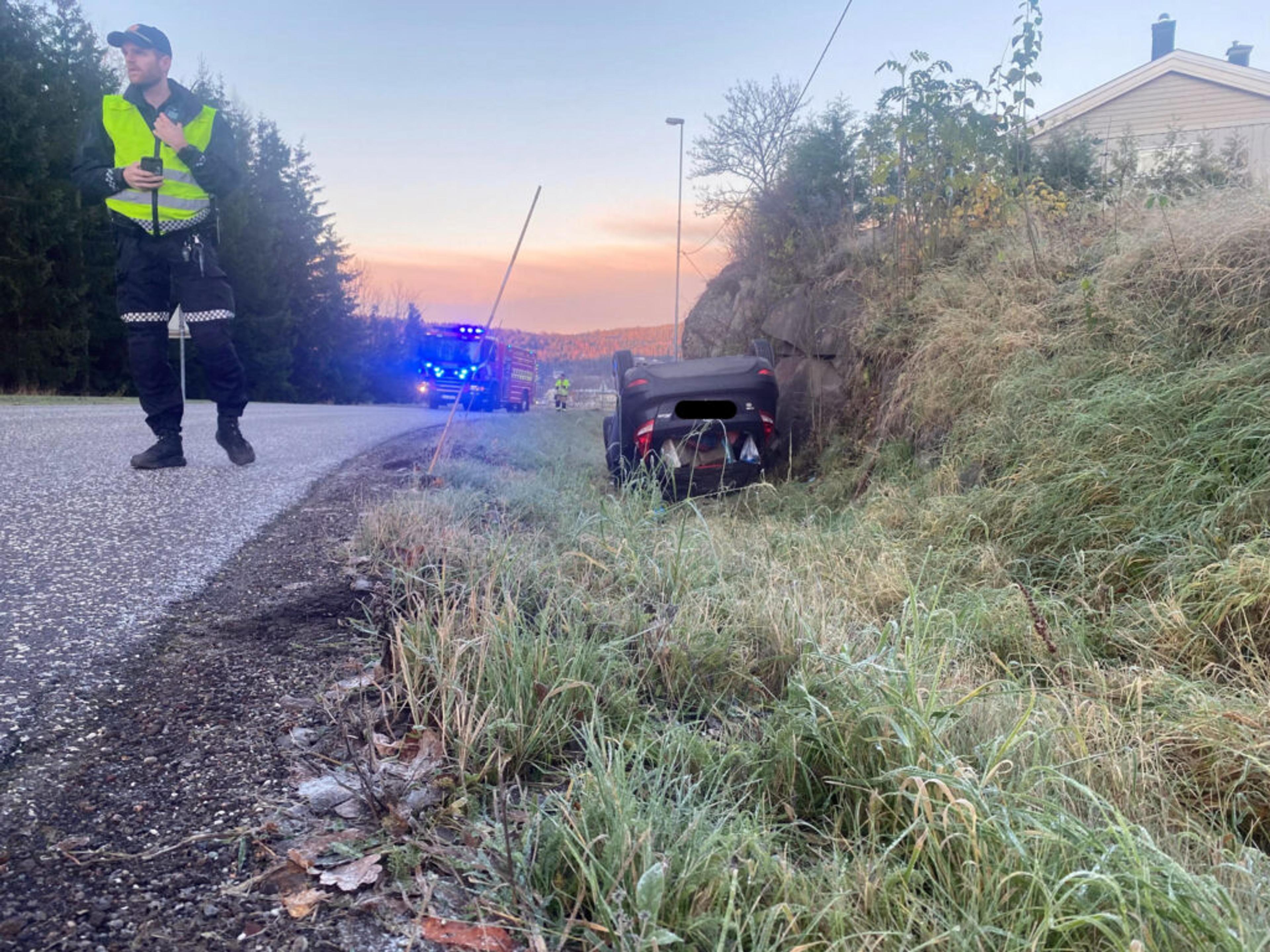 Rett over klokka 07.30 på fredag morgenen 5. november 2021 rulla en bil på taket ned i grøfta på Røråstoppen, rett på andre sida av krysset inn til Revetal 3: