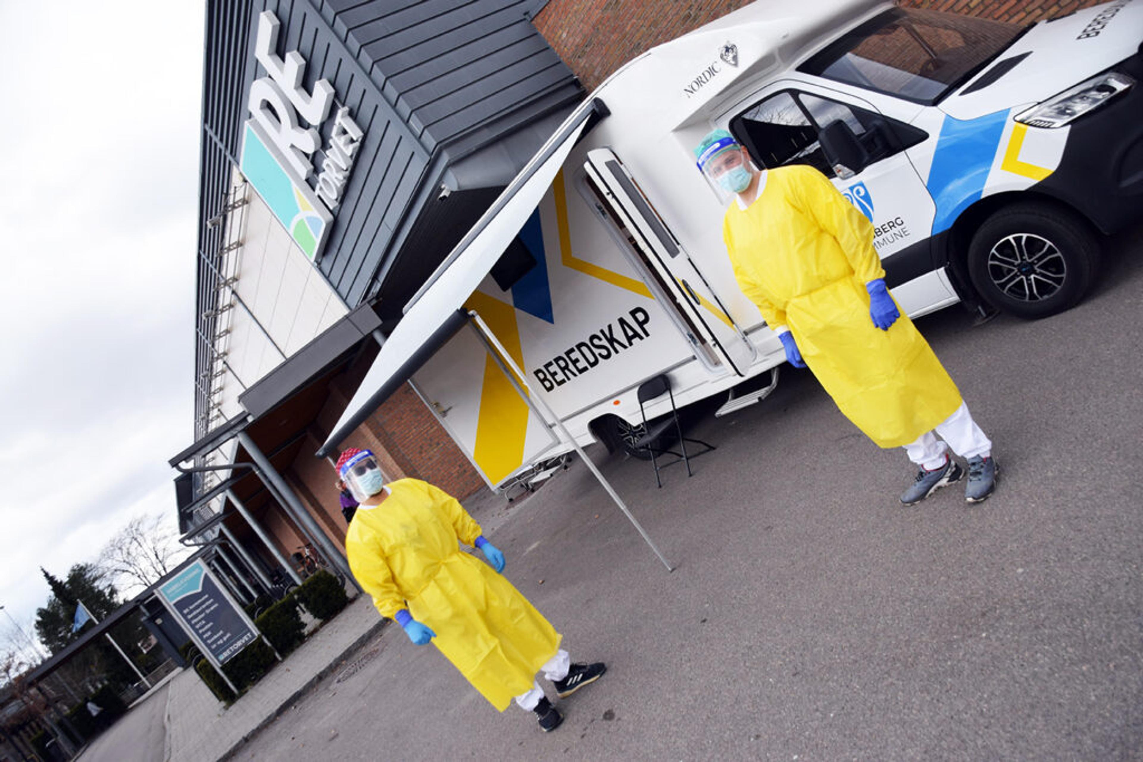 KLARE FOR TEST-TESTING: Valdir Benitez Insfran og Emver Zujo, leger ved beredskapskontoret i Tønsberg. Foto: Stian Ormestad.
