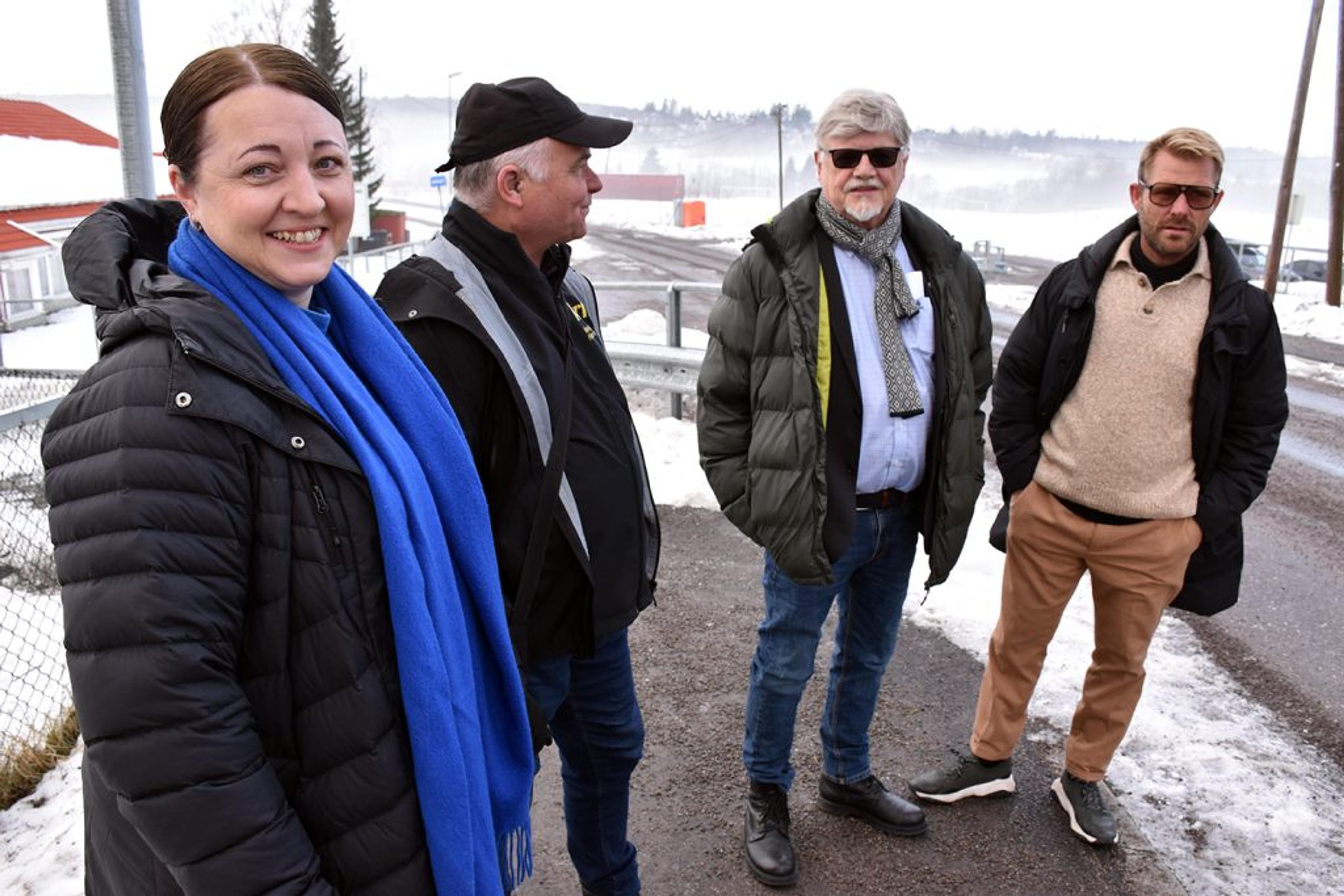 POSISJONEN I TØNSBERG: Jill Eirin Undem (H), Ole Døvik (KrF), Bent Molvær (FrP) og Håvar Bettum (V) har flertallet i ryggen når de nå har bestemt seg. Her møter de lokalavisa utafor Solerød skole. Foto: Stian Ormestad, ReAvisa.