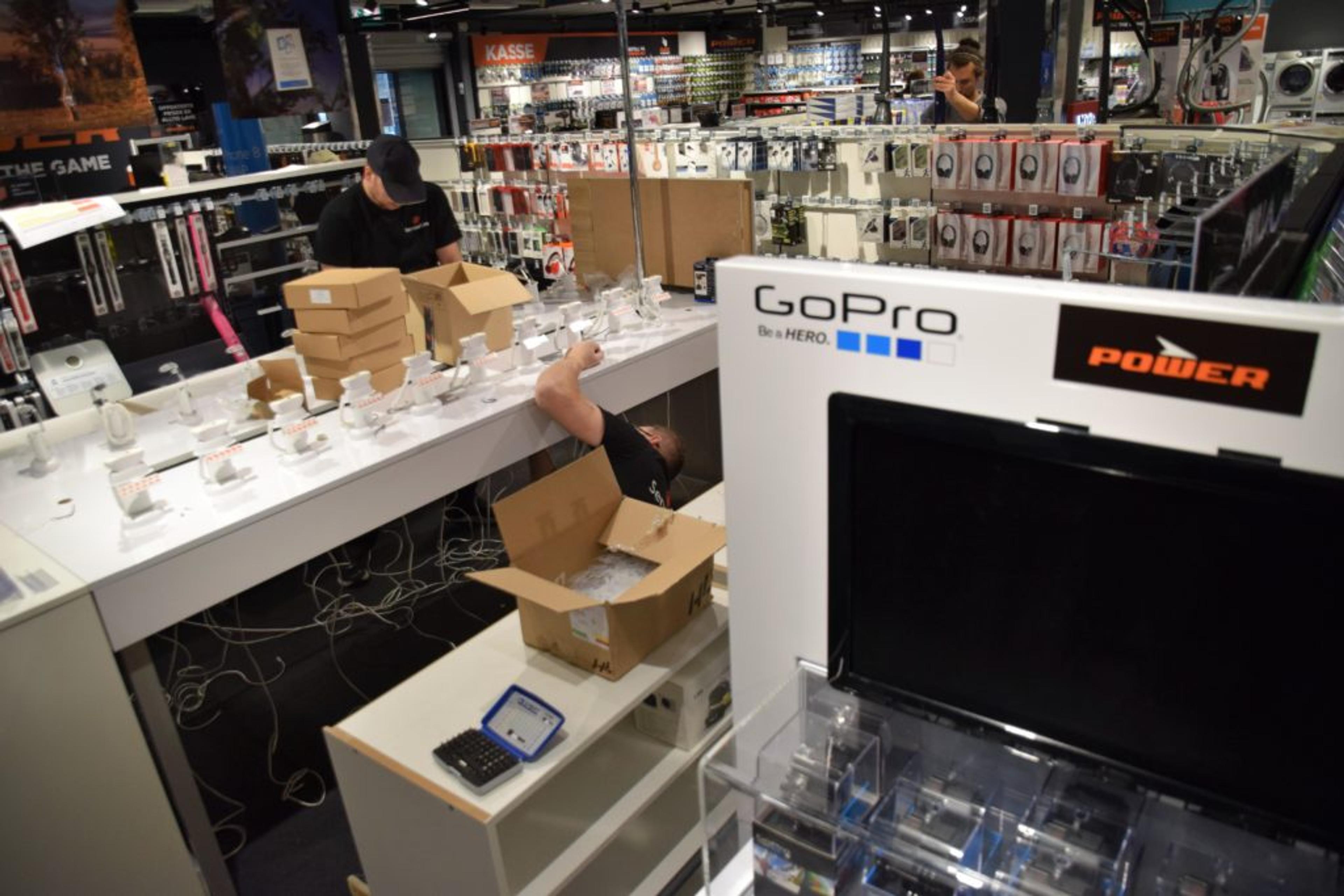 HØYT OG LAVT: Mye skal på plass, og Power-kledde folk er høyt og lavt for å få alt klart før nyåpning. Hvor mange finner du på bildet? Foto: Stian Ormestad.
