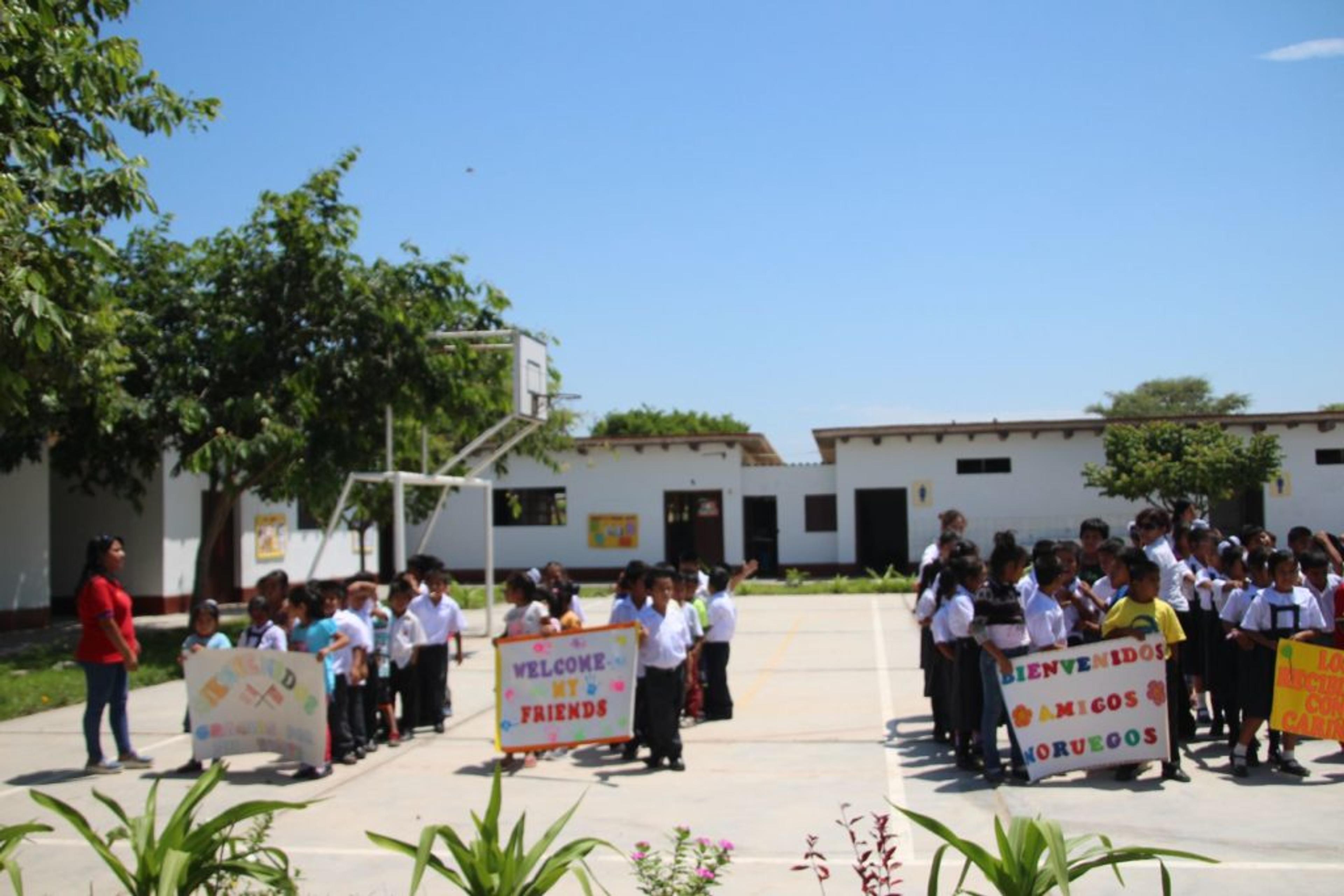 PROSJEKT PERU: Skolebarna i Peru, som har tett kontakt med elever ved Re VGS. Foto: Privat.