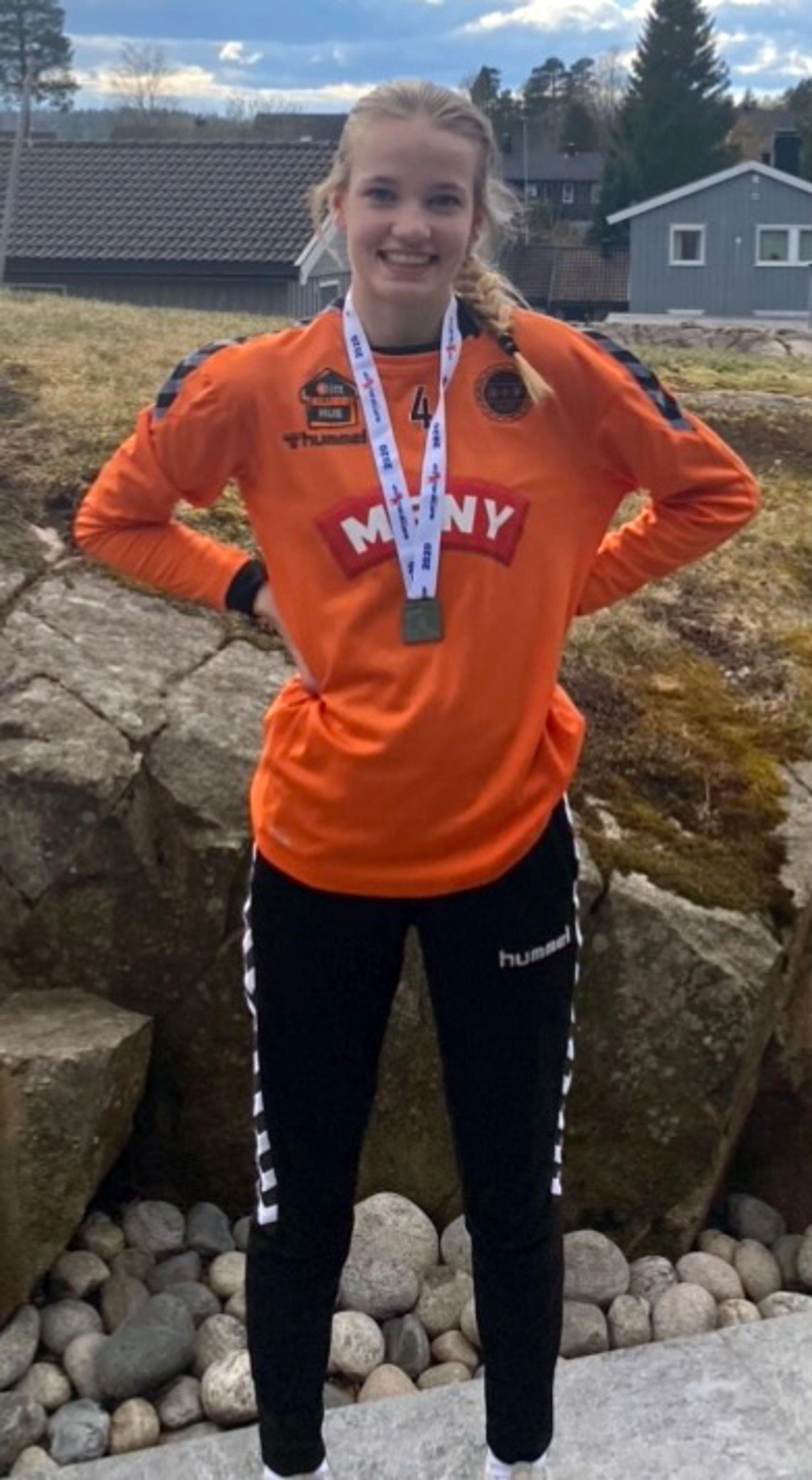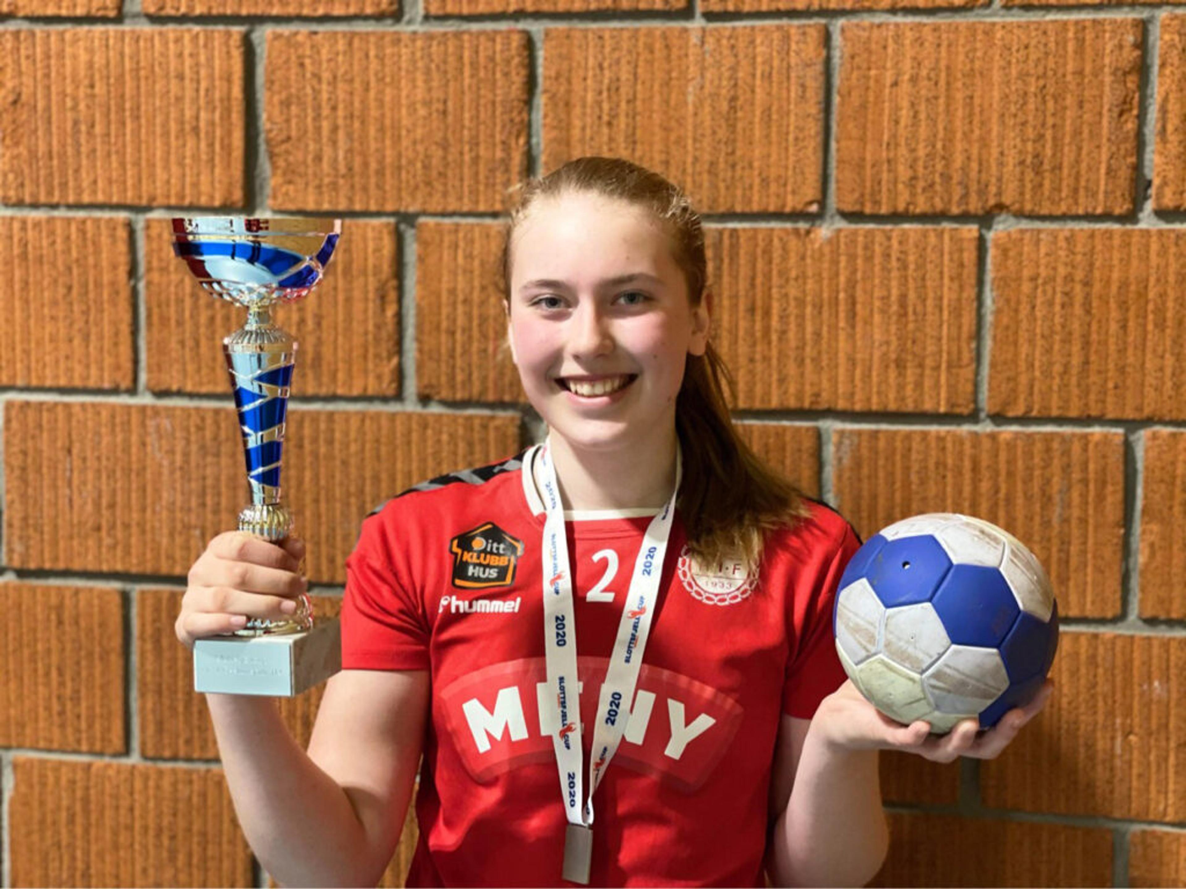 KAPTEIN: Nora S. Flaatten med førstepremien fra Slottsfjellcup 2022. Foto: Privat.