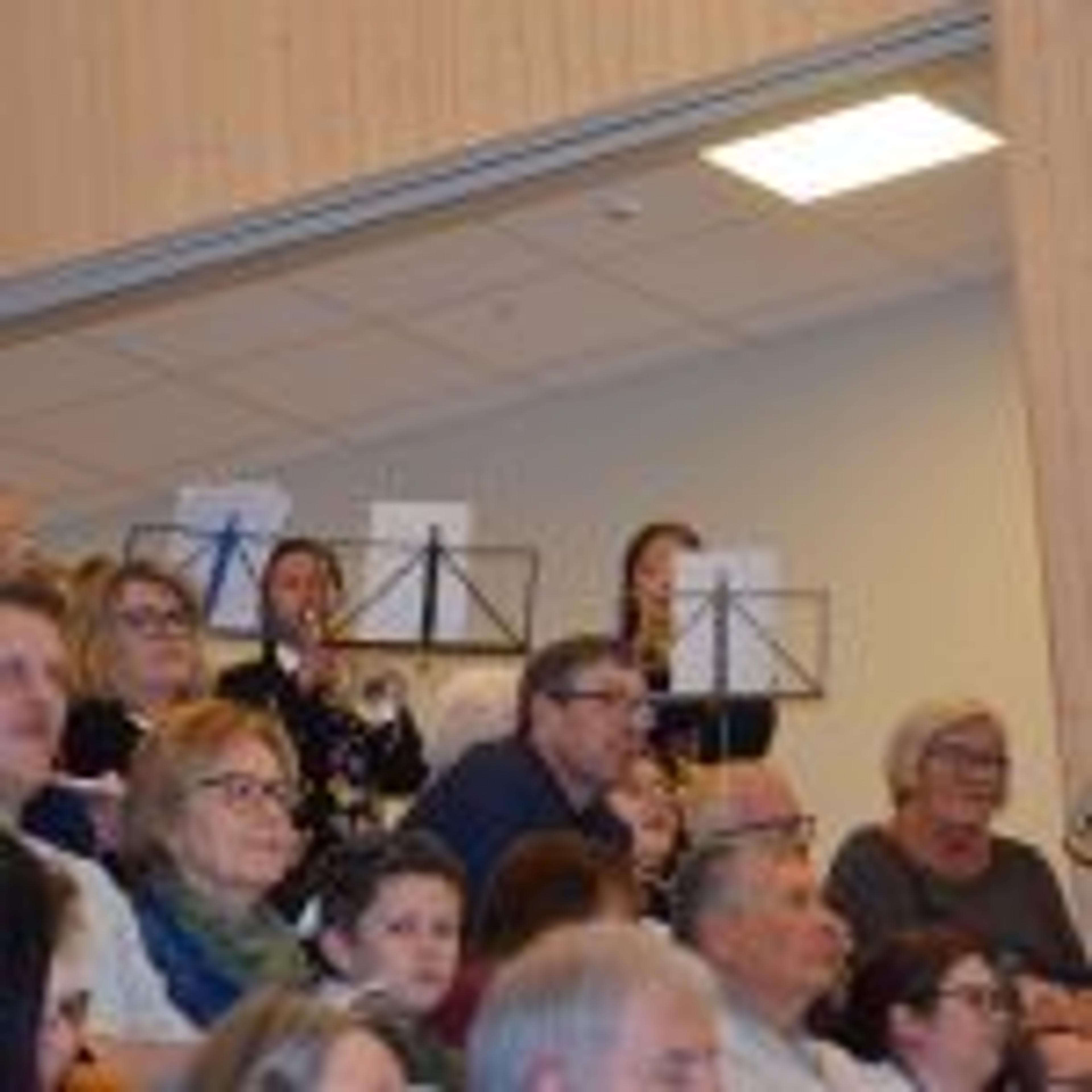 Bursdagssangen ble syngi for jubilanten. Den nye dirigenten fra og med i høst, Johanne Mølgaard Gustavsen, leda så korpsets musikalske program.