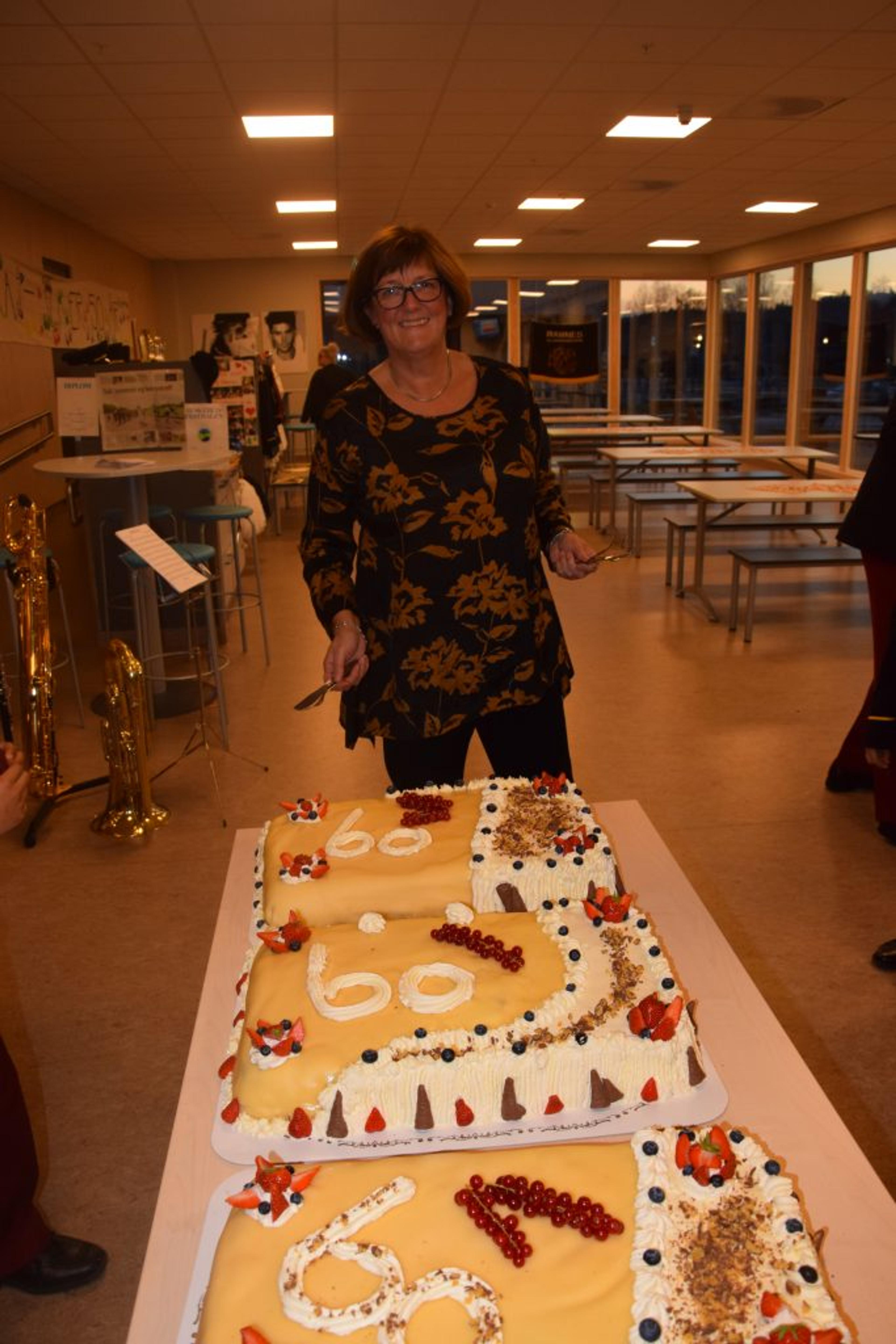 BURSDAGSKAKER TIL ALLE: Leder i korpset i jubileumsåret, Anne Sofie Rønningen, med bursdagskakene. Foto: Håkon Westby.