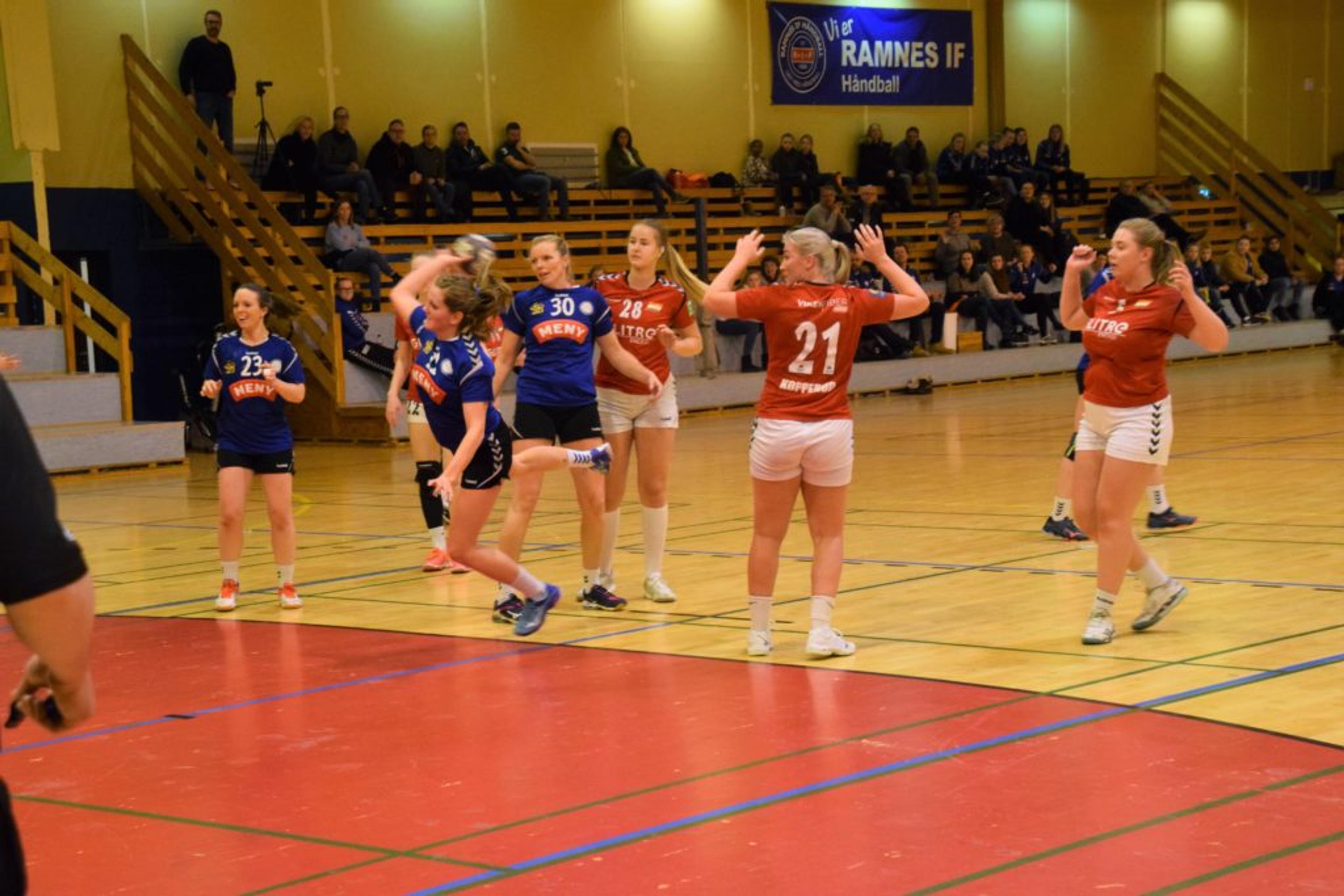 KJEMPER: Ramnes-jentene slåss tappert, men har tapt i siste sekund de to siste hjemmekampene. Neste hjemmekamp i Ramneshallen er lørdag 23. mars. Foto: Stian Ormestad.