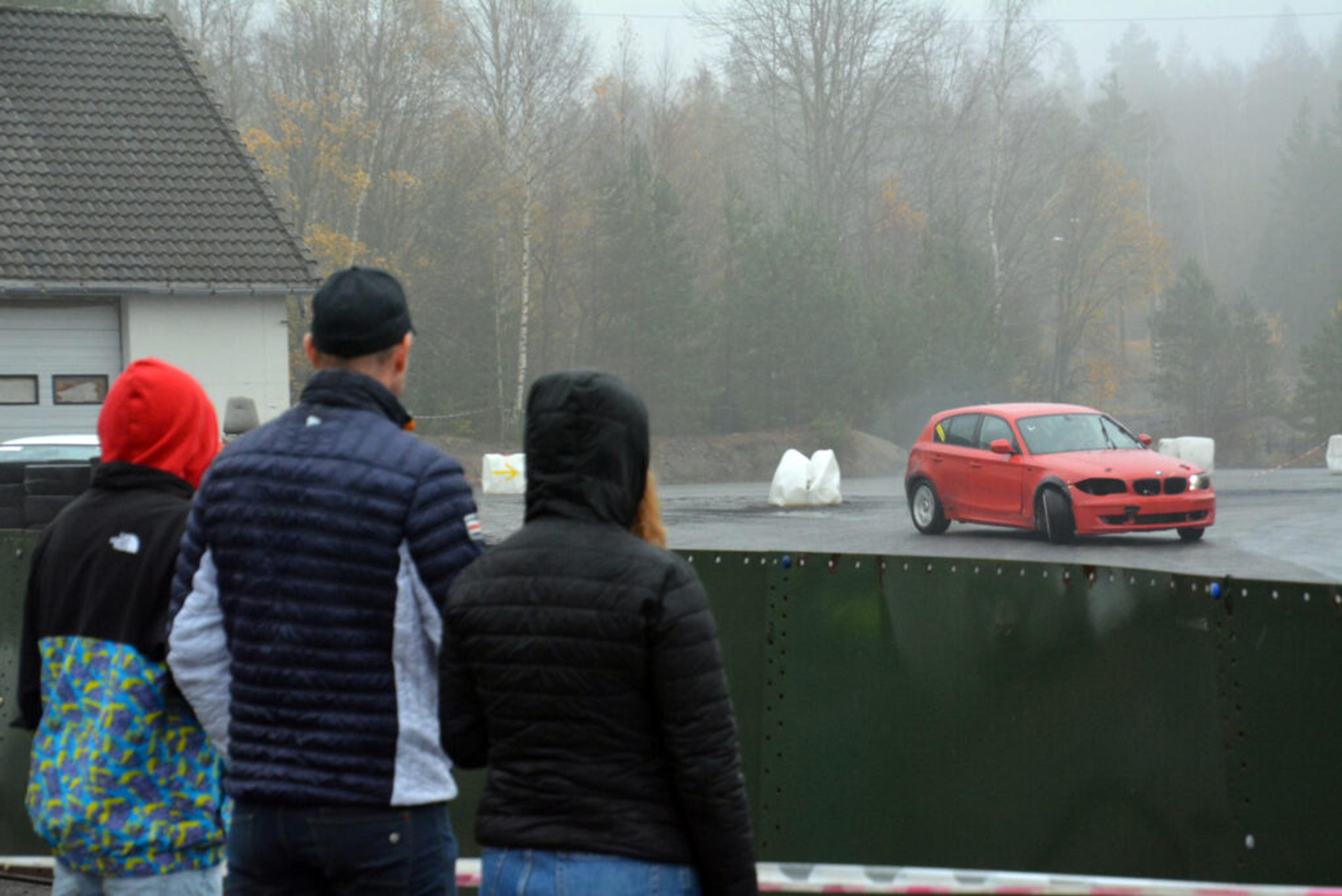 FIKK SITTE PÅ: Noen heldige ungdommer fikk lov til å sitte på i bilene utpå banen – som testa føret en og en.