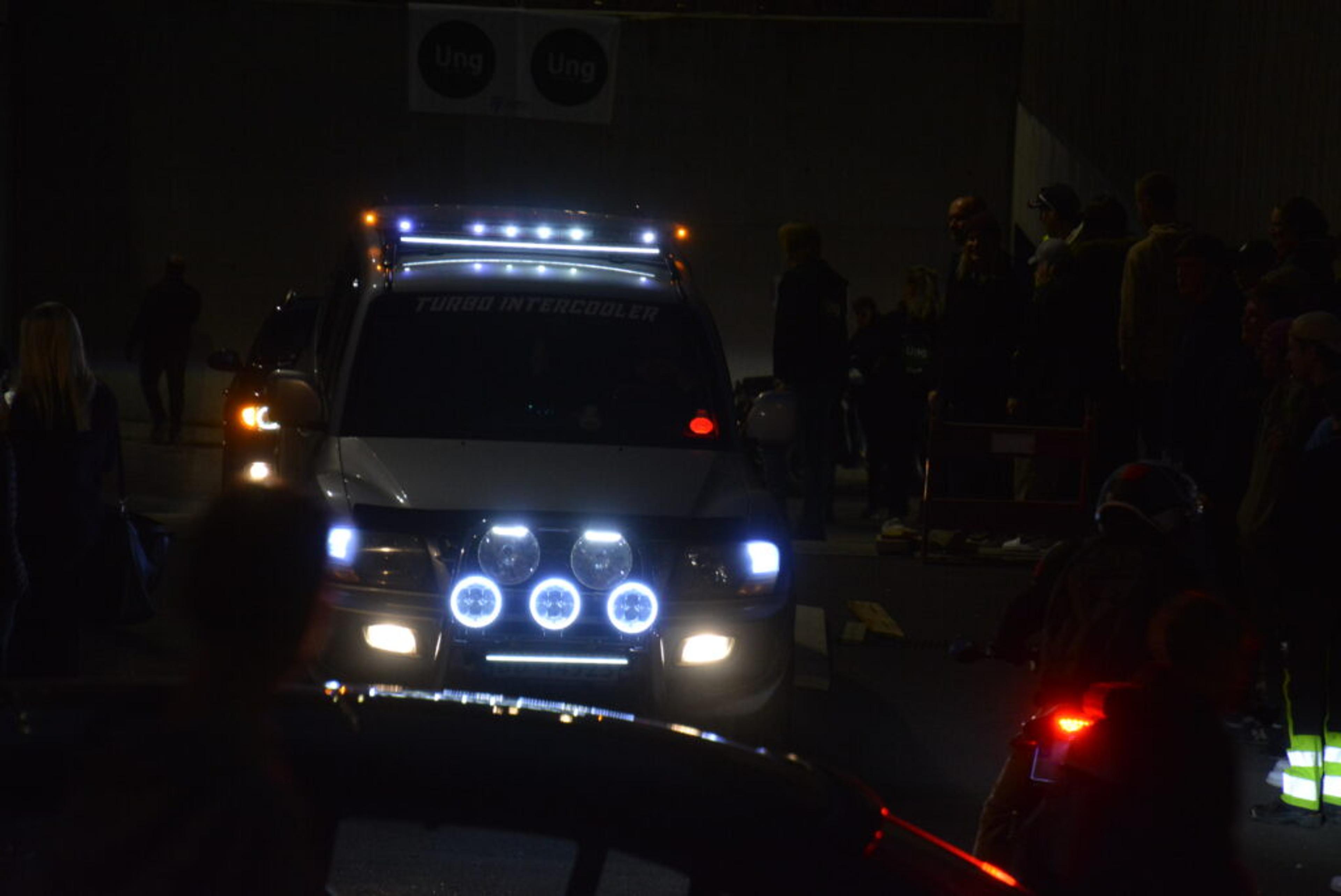 LYSPRAKT: Flere fikk vist fram lys og lamper på bilene sine, da mørket falt på. Foto: Stian Ormestad.