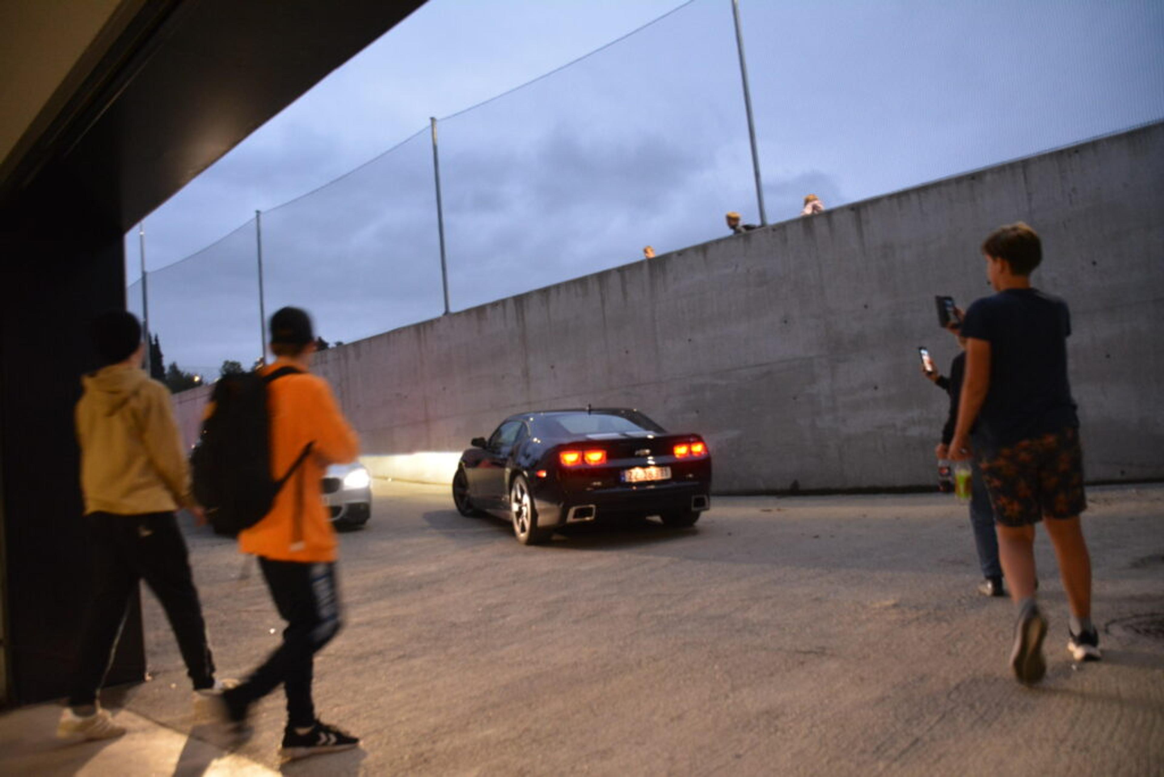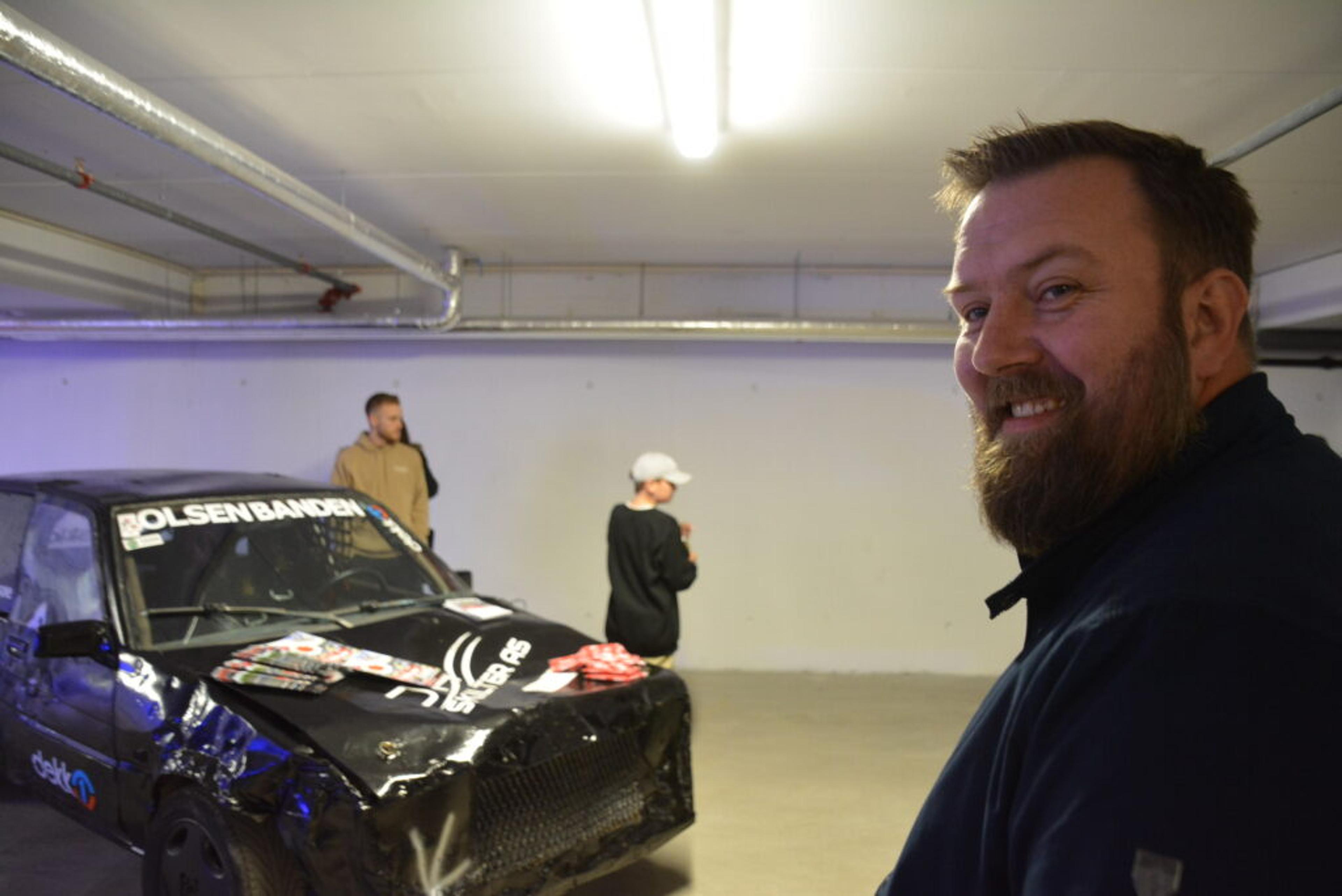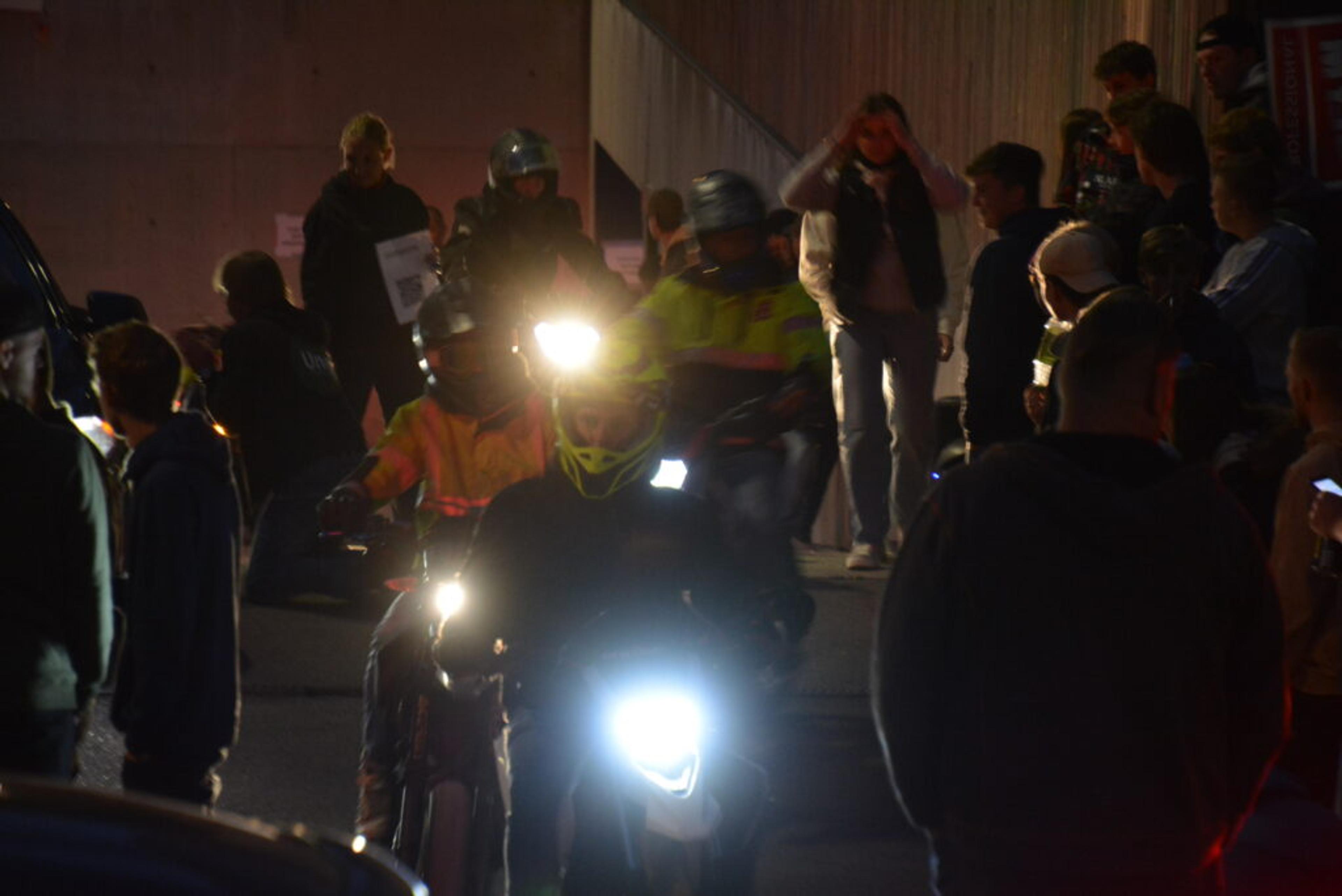 KORTESJE: Ut av parkeringskjelleren ble det en lang kortesje med forskjellige kjøretøy, som ungdommen flokka seg sammen for å se på. Foto: Stian Ormestad.
