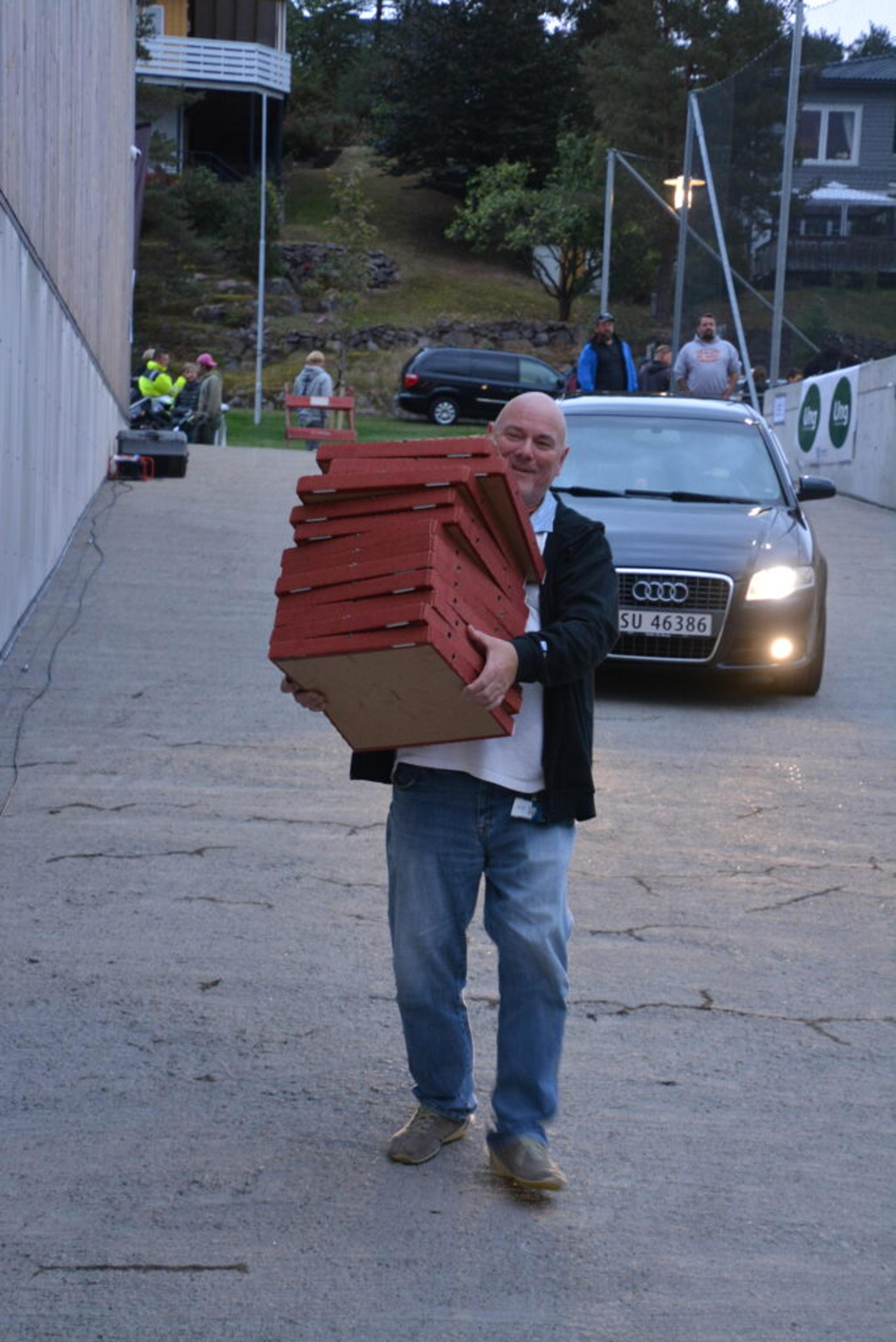 MER PIZZA! Gunnar Knutsen, lærer ved Revetal ungdomsskole og ansatt i Ung i Tønsberg – og bilentusiast sjøl – fikser mer pizza til motorungdommen. Foto: Stian Ormestad.