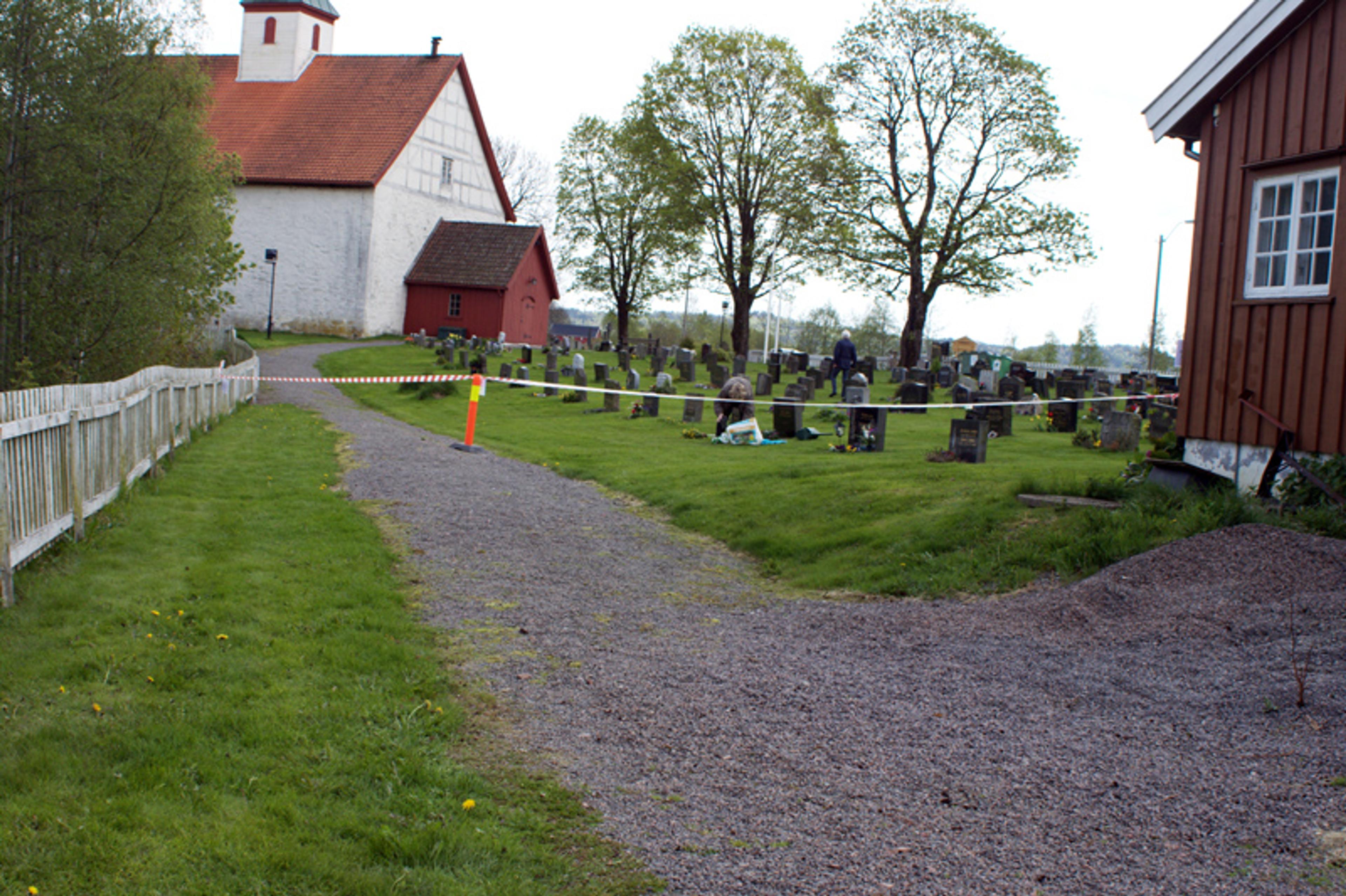 SPERRA AV KIRKEGÅRDEN: Dagen før 17. mai-feiringa i 2012 ble kirkegården i Ramnes sperra av på grunn av leirras. Arkivfoto: Stian Ormestad.