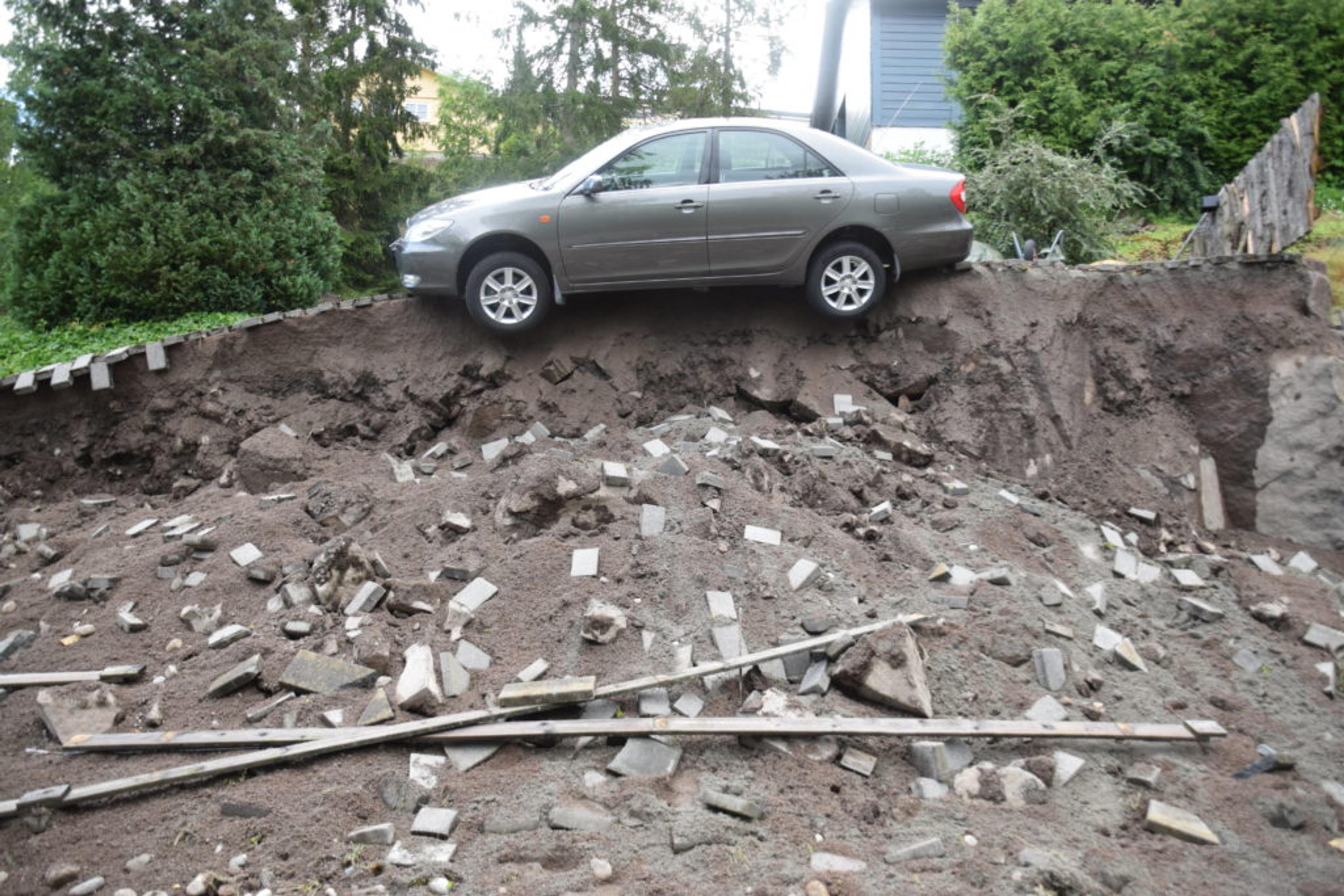 RAS I BYGGEFELTET: Familiens bil ble stående igjen på vippen etter raset i Valleåsen i sommer. Arkivfoto: Stian Ormestad.
