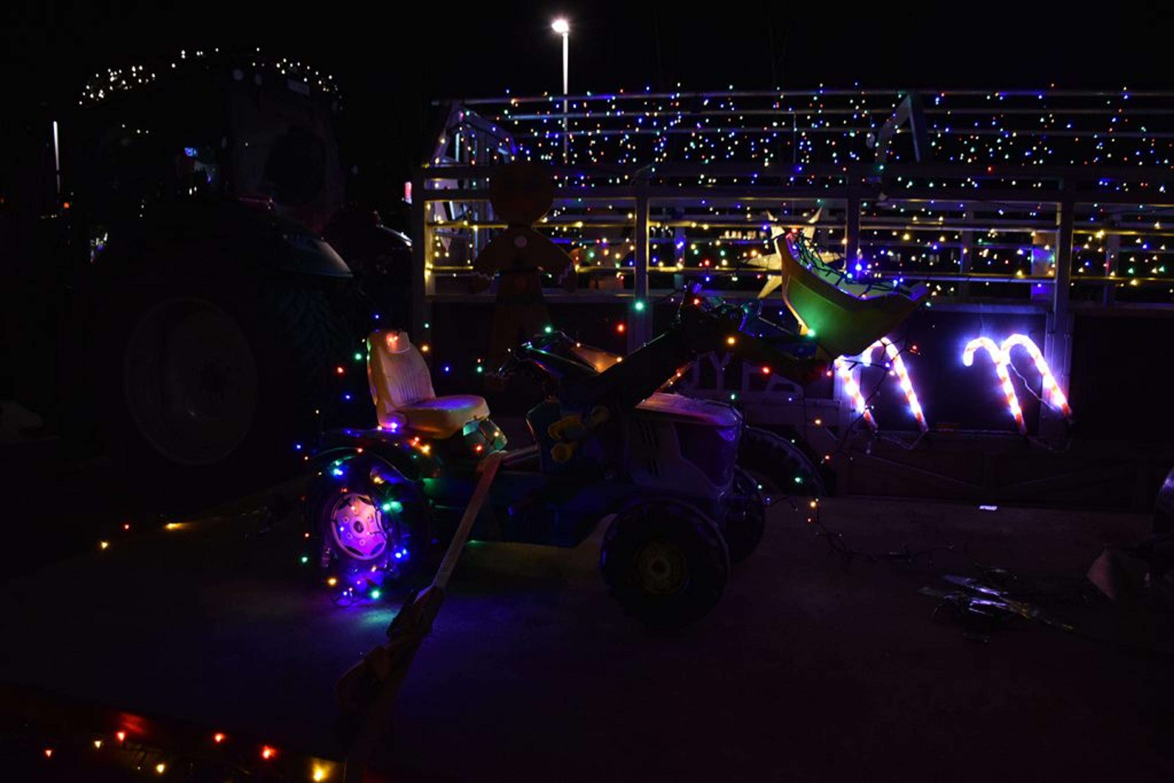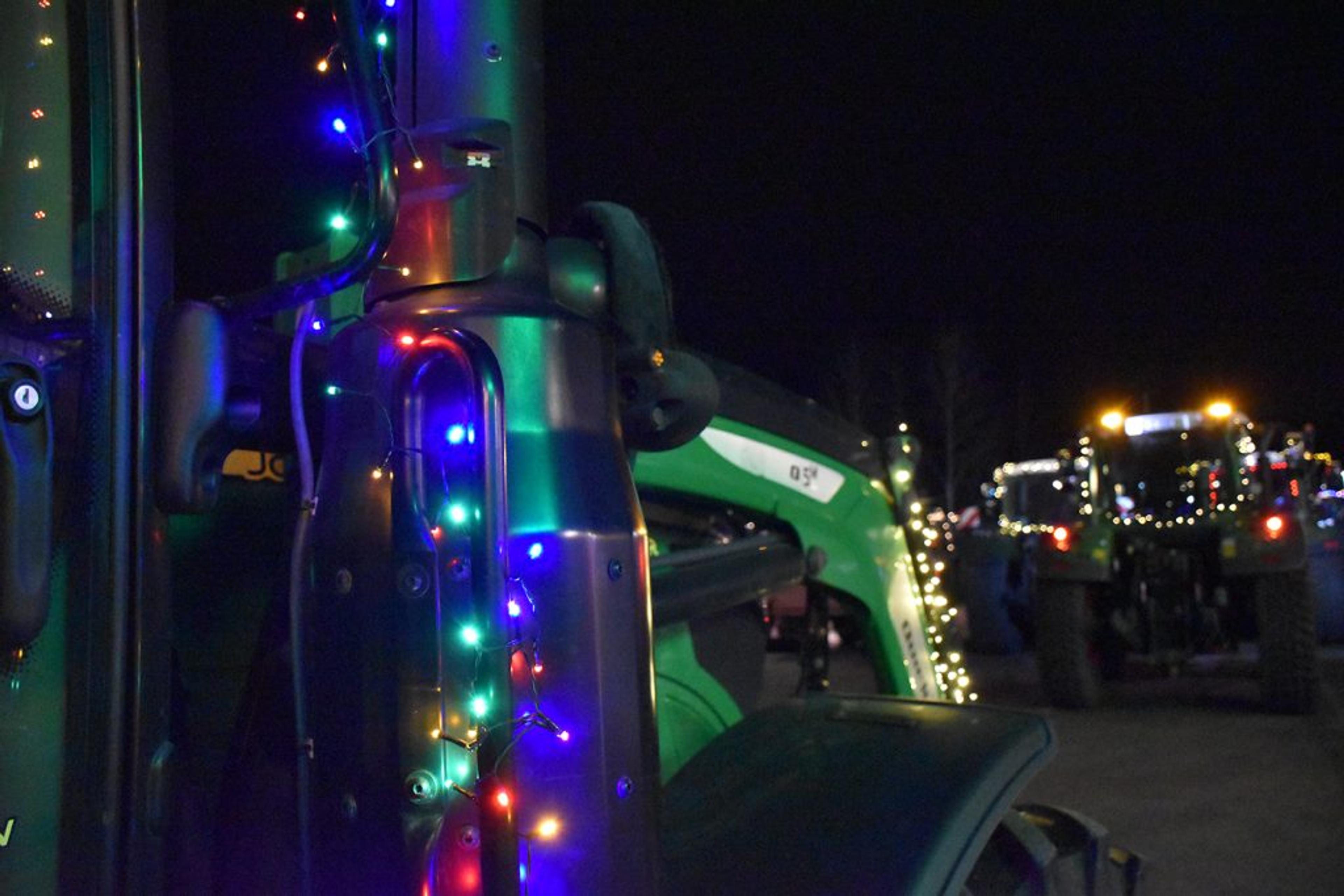 Det ligger mange timer med pynting bak for å få til de vakreste lyssettinger på landbruksredskap av mange slag. Foto: Stian Ormestad, ReAvisa.