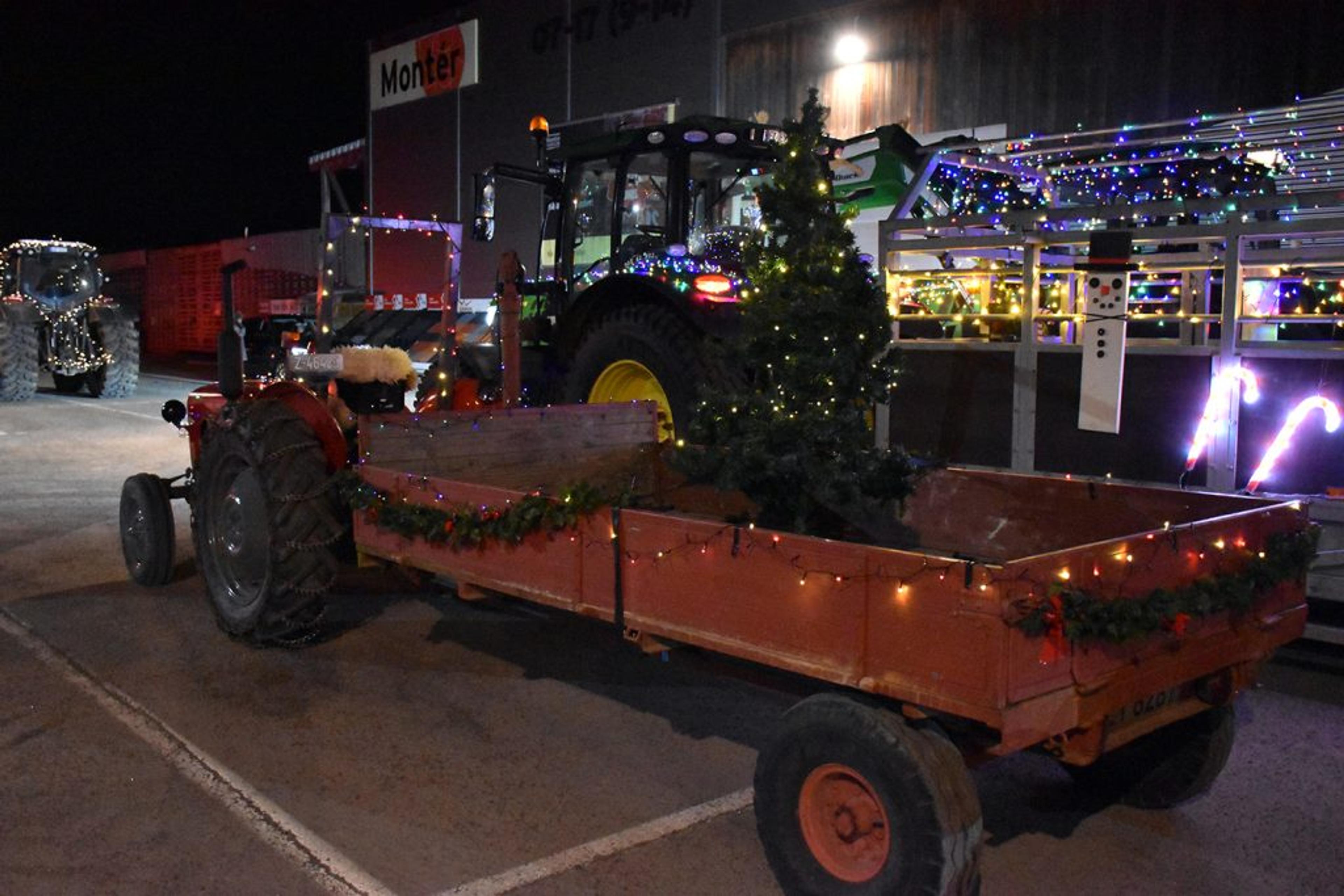 Traktor med henger, med et lite juletre på. Foto: Stian Ormestad, ReAvisa.