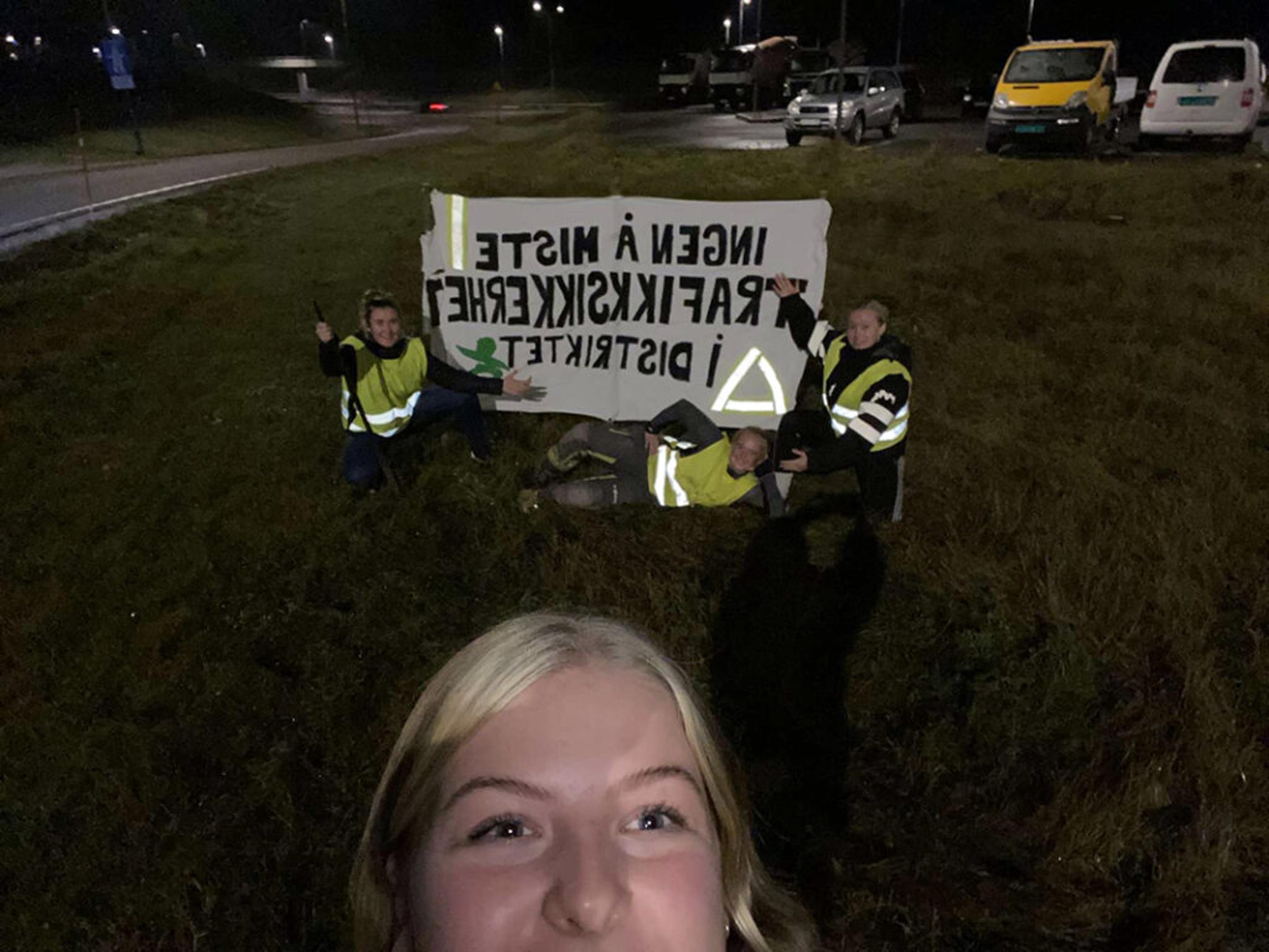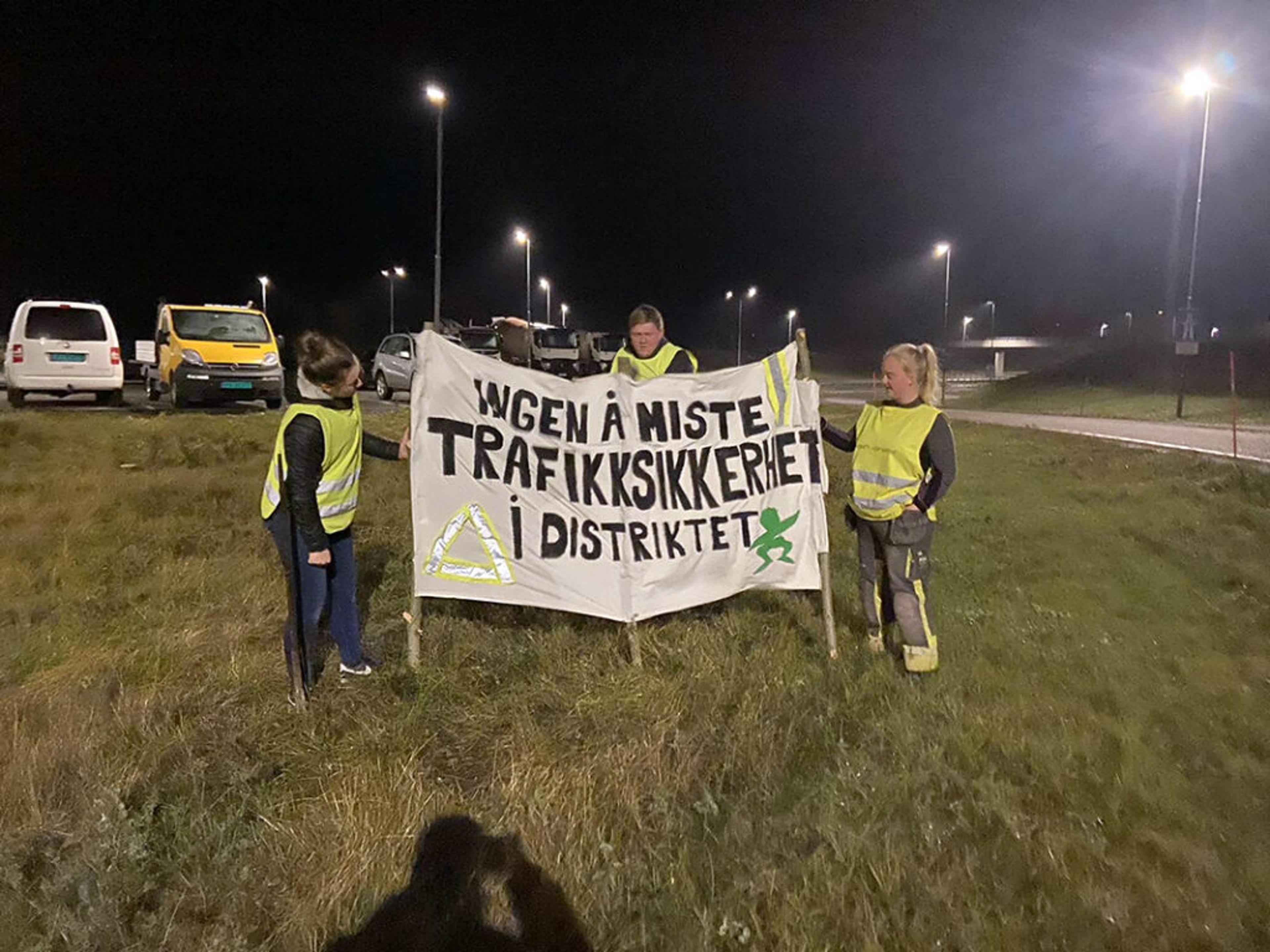 I AKSJON: I nattemørket aksjonerte Re bygdeungdomslag med et ønske om bedre veier på bygda. Foto: Privat.