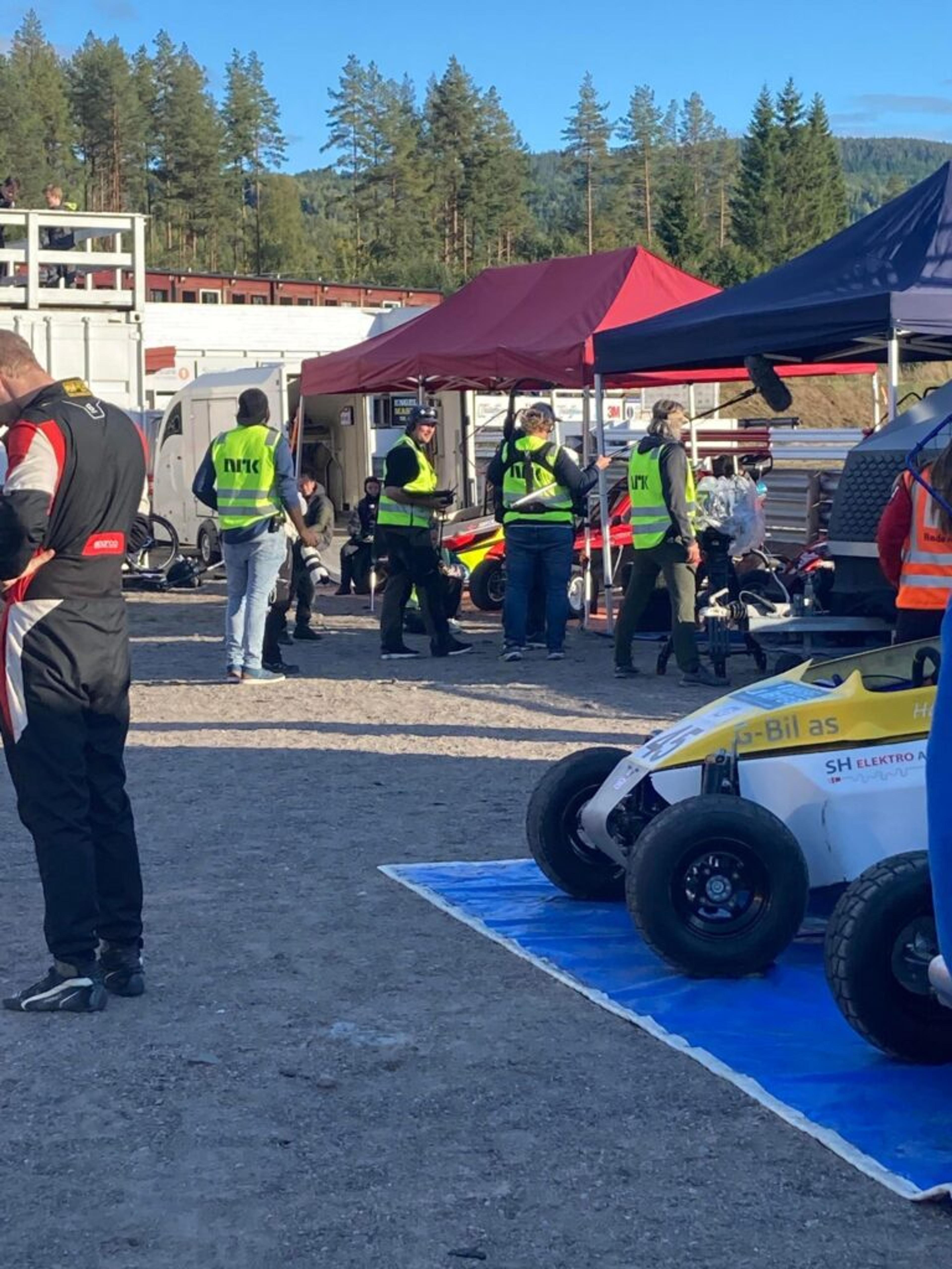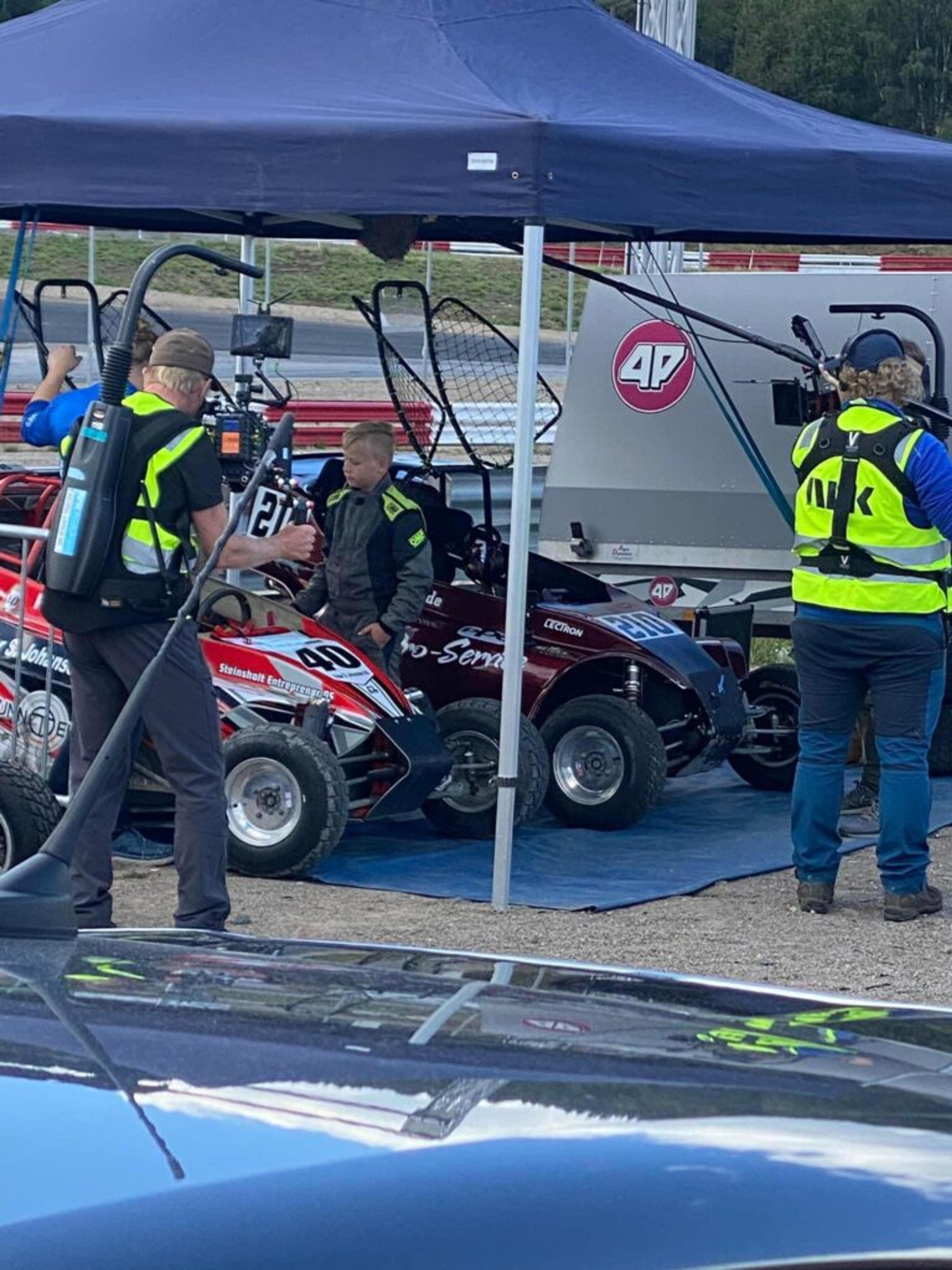 KLART FOR OPPTAK: To dager ble det filma på Grenland motorsportsenter, dit crosskartkjørerne fra Re reiser for å trene. Foto: Privat.