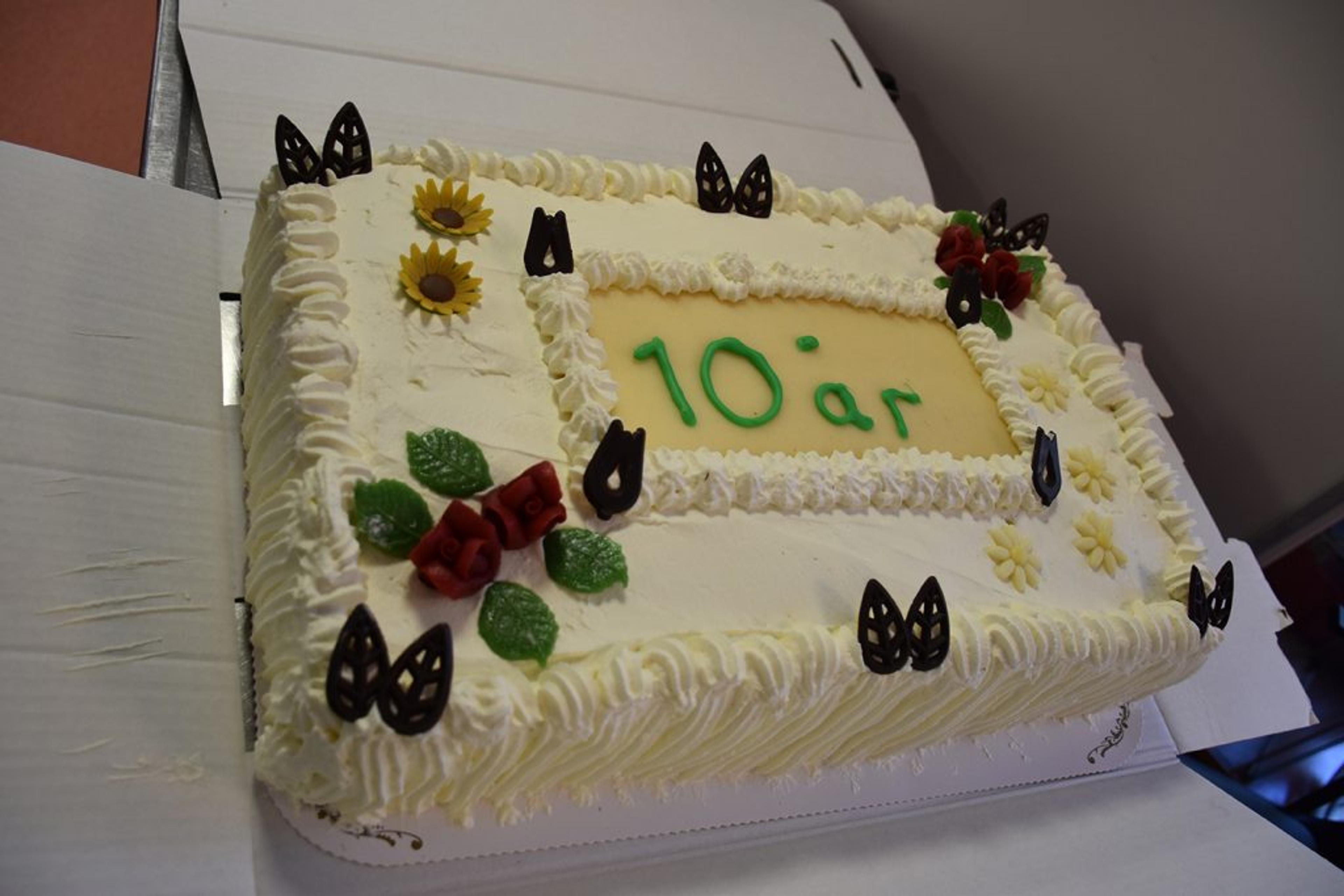 En svært så innbydende kake til 10-årsmarkeringa, og ikke bare en – men to slike kaker var bakt. Foto: Stian Ormestad, ReAvisa.