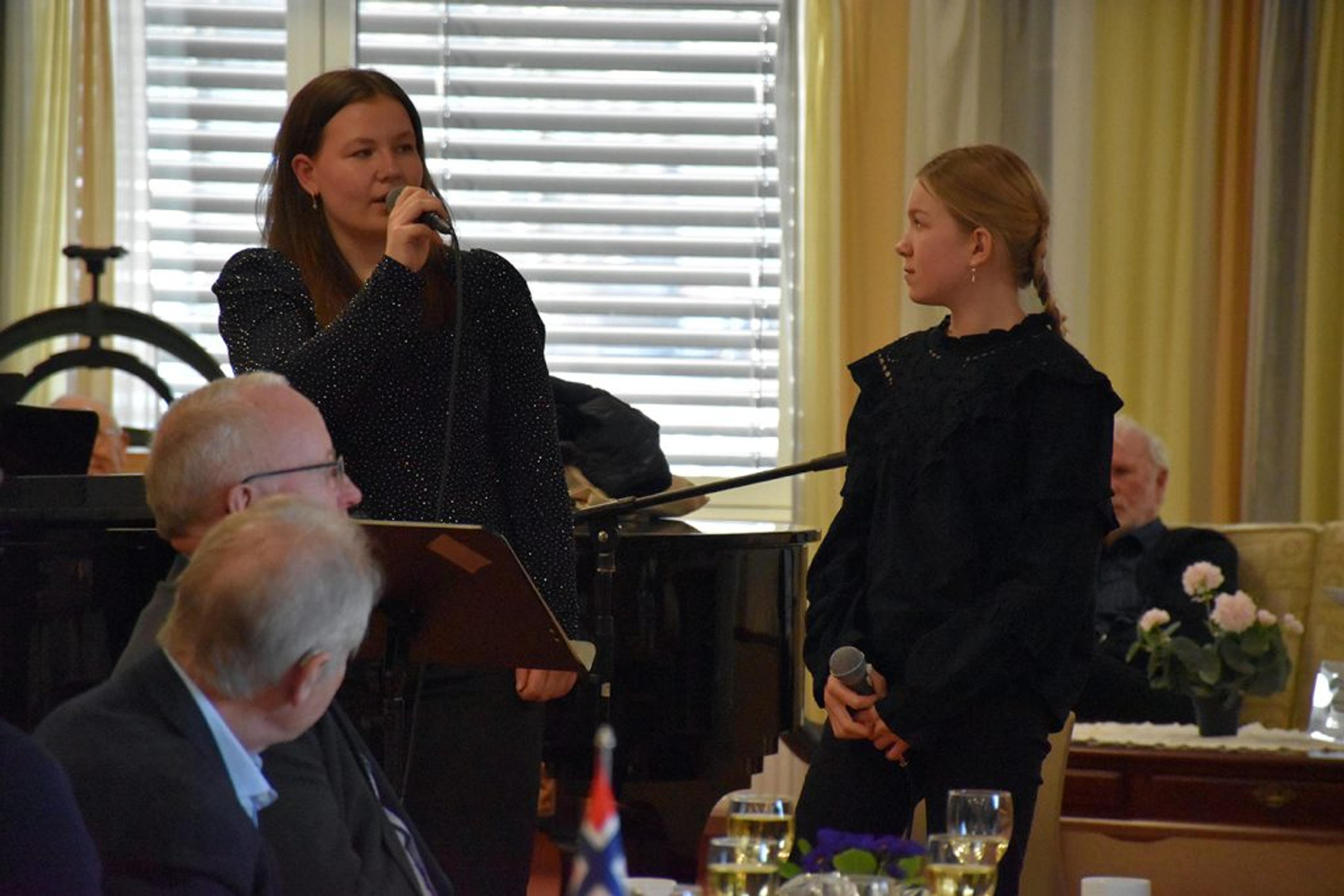 Det var flere musikalske innslag, blant de på «scenen» var tidligere kulturkoordinator Gro A. Hansen. To jenter sang nydelig: Vilde Joberg Horn og Olivia Grytnes Thornquist (begge 15).