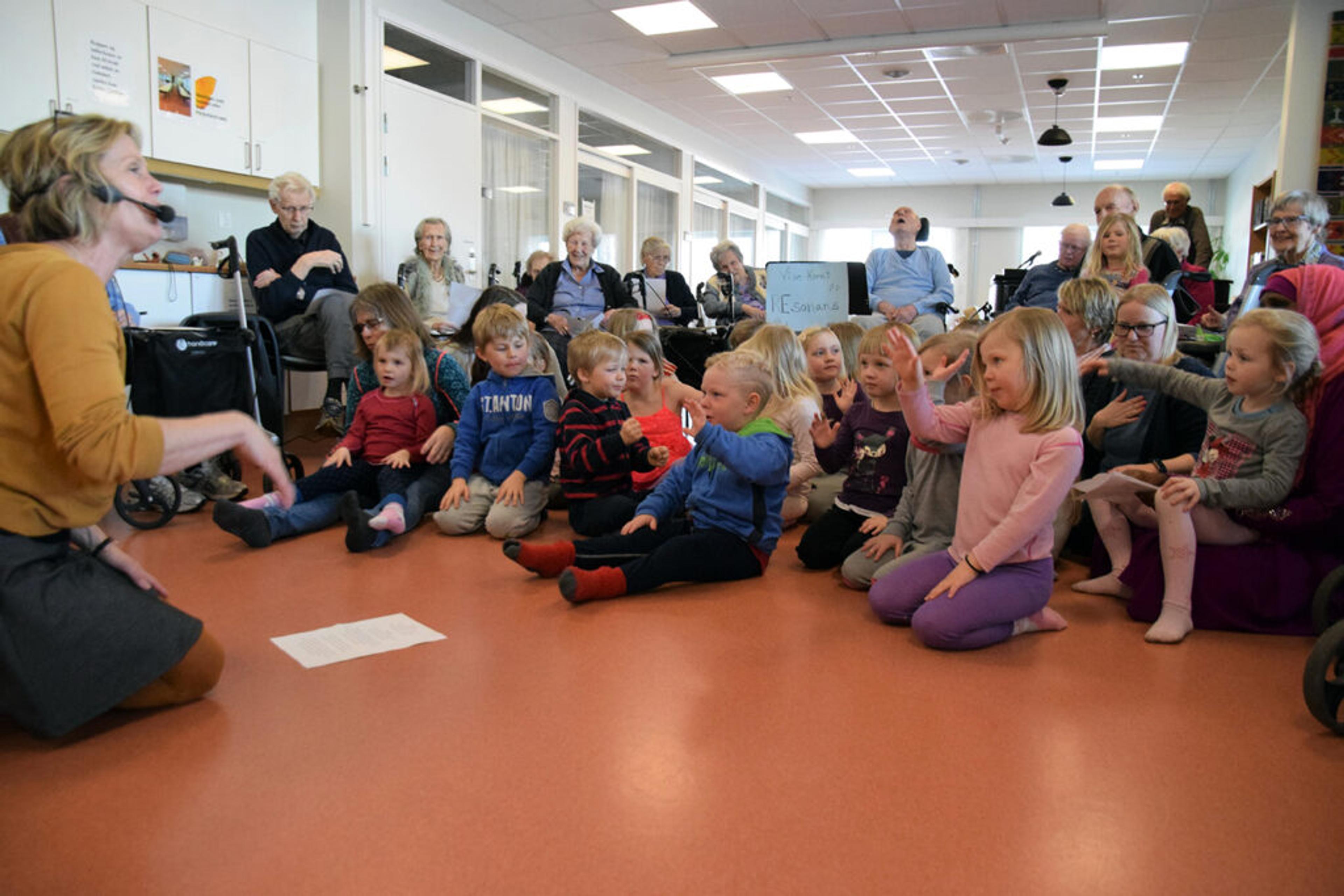 Helsehuset ble fort fylt med sang, musikk, dans og moro. Kulturkoordinator Gro sørger for det. Bildet er fra nyåret 2015. Foto: Stian Ormestad, ReAvisa.