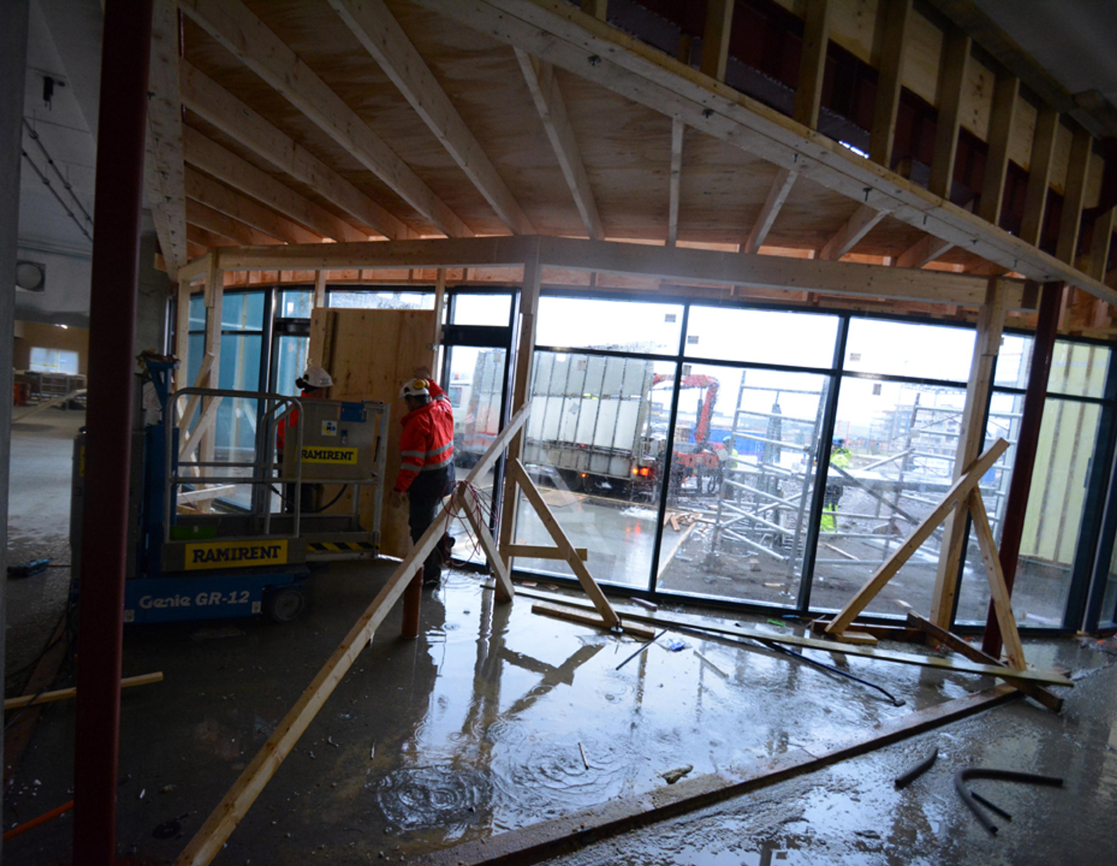 Inngangspartiet var fortsatt en byggeplass da dette bildet ble tatt. Foto: Stian Ormestad, ReAvisa.