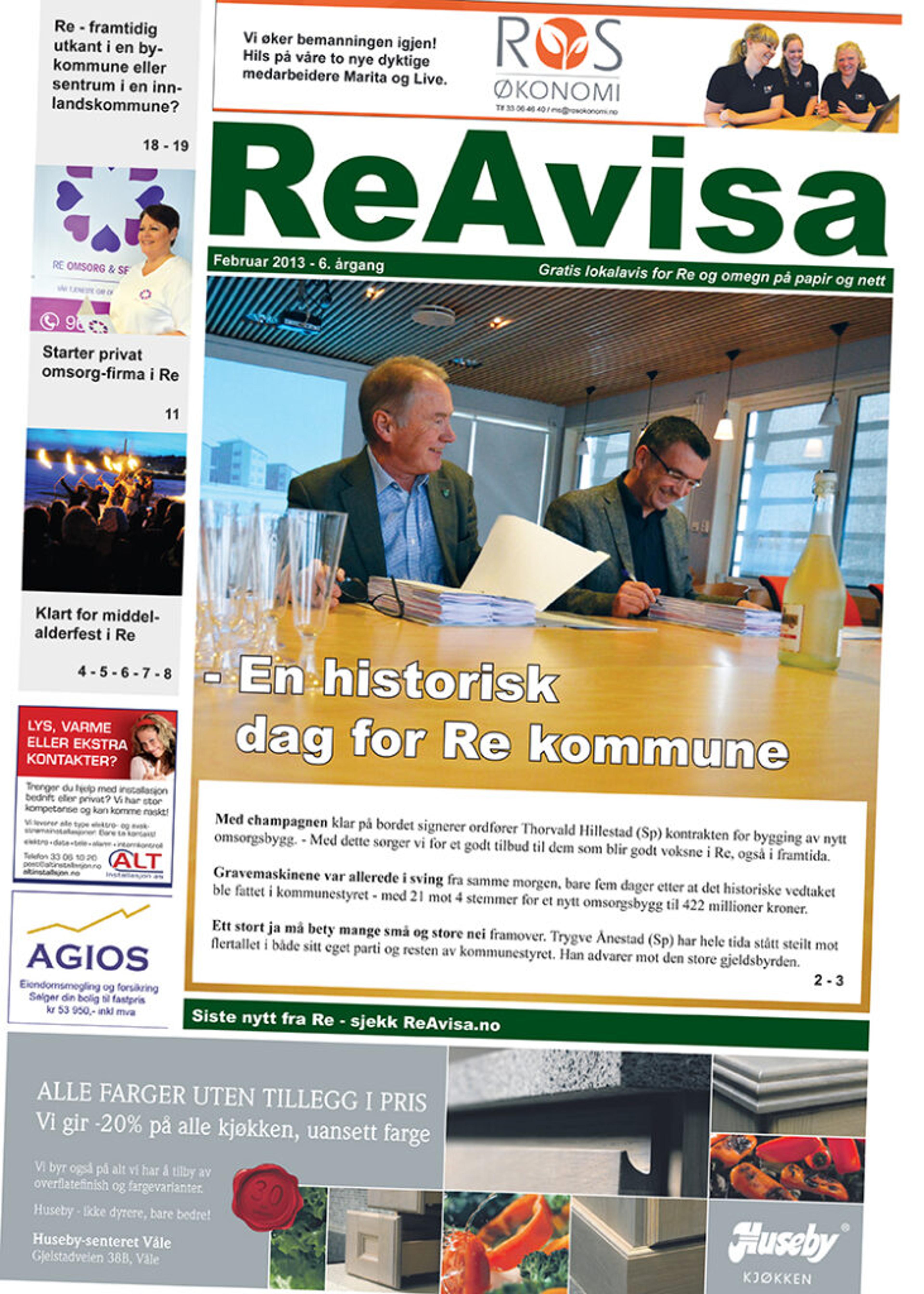 Forsida på ReAvisa for ti år siden. Nå tar vi en runde på eldreomsorg i Re – igjen. Les om det i den neste papiravisa som står i avishyllene torsdag 16. februar 2023. Faksimile: ReAvisa februar 2023.